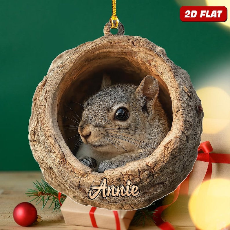 Personalized Name Woodland Squirrel Ornament, 2d Flat Rustic Animal Christmas Home Decor, Forest Wildlife Gift, Nature Rustic Tree Hanging