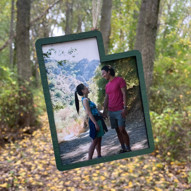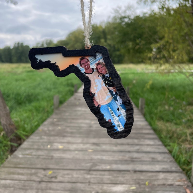 Personalized Picture Ornament wood photo frame Wooden State Christmas Ornament