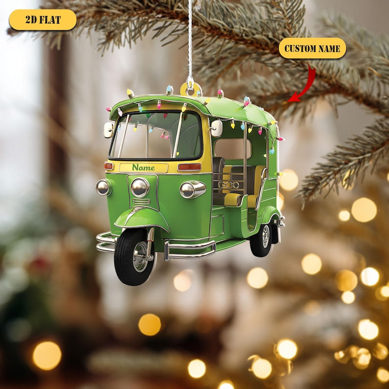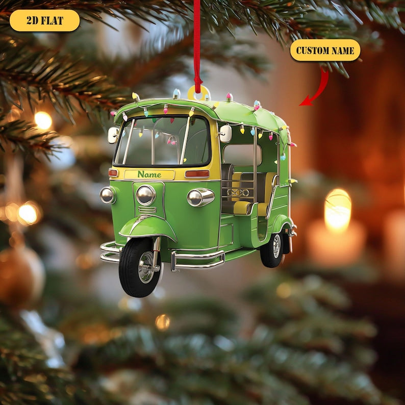 Personalized Tuk Tuk Acrylic Ornament, Custom Name Thai Auto Rickshaw Christmas Decoration, 2D Flat Holiday Gift for Travelers & Asia Lovers