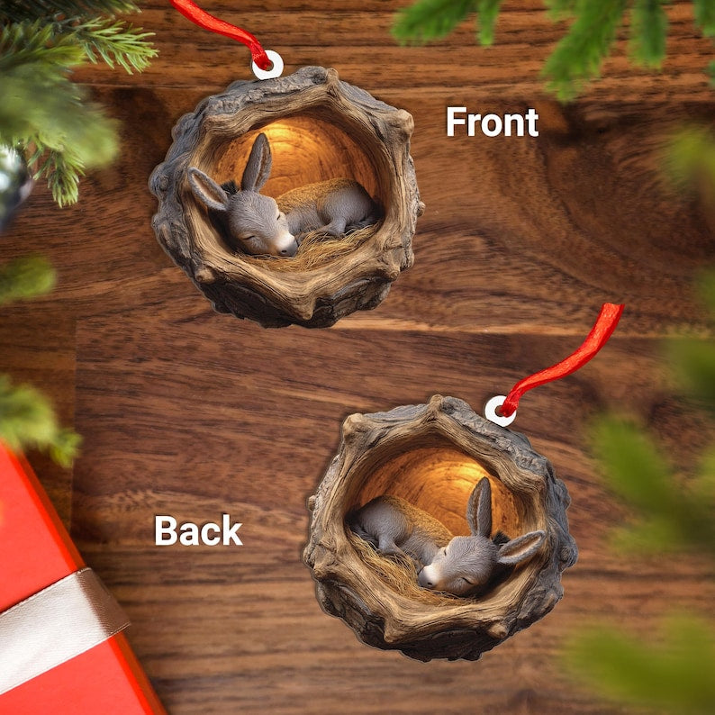 Sleeping Donkey Christmas 2D Flat Wood Ornament Peaceful Animal Ash Plywood Cutout | Cute Holiday Tree Decor Gift for Donkey Lovers