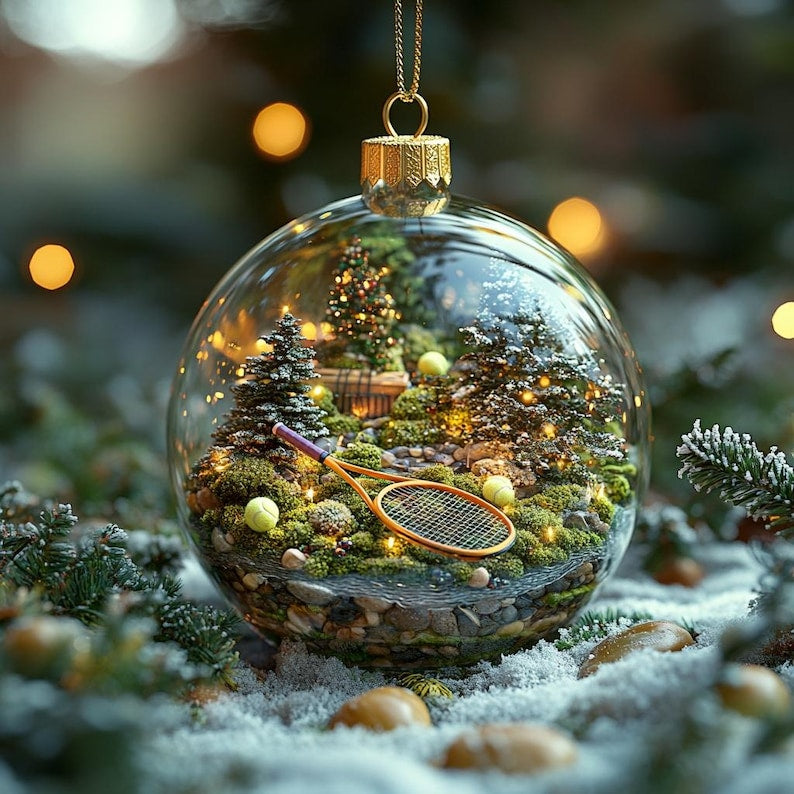Tennis Ball 2D FLAT Christmas Ornament Nature Scene With Rackets In Glass Globe Gift For Tennis Lovers