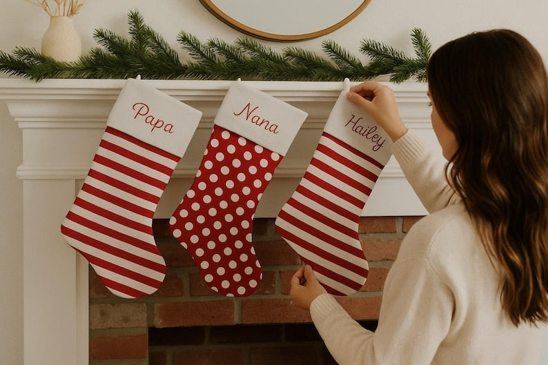 Many choices: Each Stocking is custom printed, cut and sewn just for you when you place your order. These stockings will come in three colors for you to choose from; Green, White, Red.