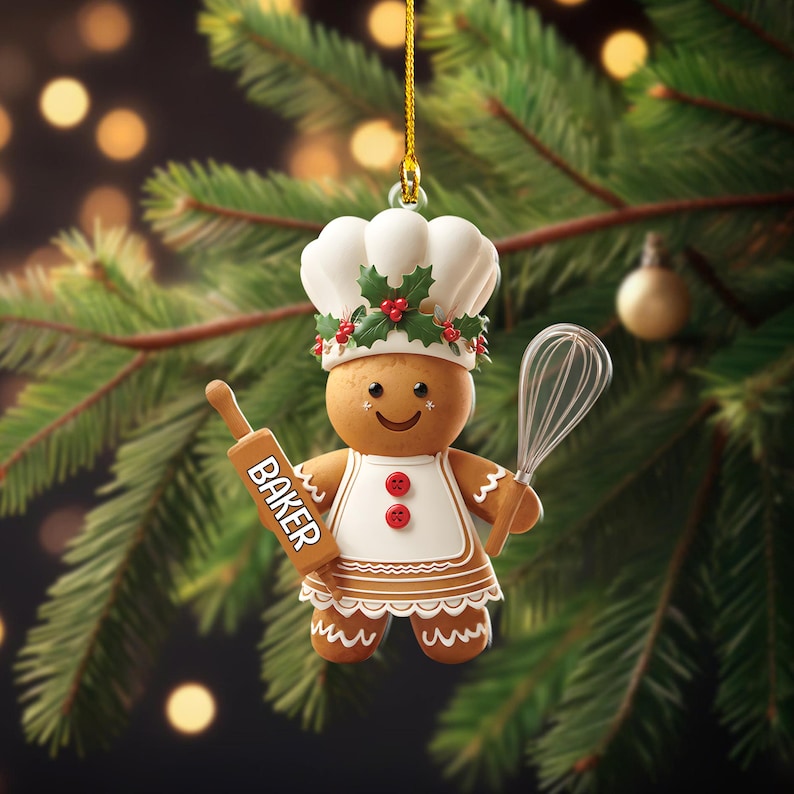 Cute Gingerbread Chef Ornament, Baking Spirits Bright Christmas Ornament, Holiday Gingerbread Man Decor, Christmas Tree Decoration