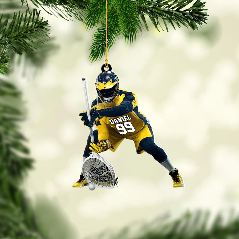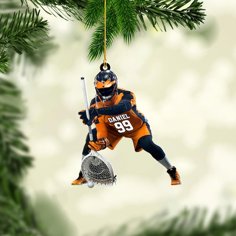 Personalized Lacrosse Goalie Acrylic Ornament, 2D Flat Ornament, Not 3D, Custom Name & Number Sports Christmas Tree Decoration