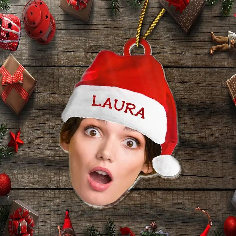 Custom Photo Funny Family Face With Santa s Hat Acrylic Christmas Ornament, Personalized Ornament For Families And Friends, Holiday Keepsa