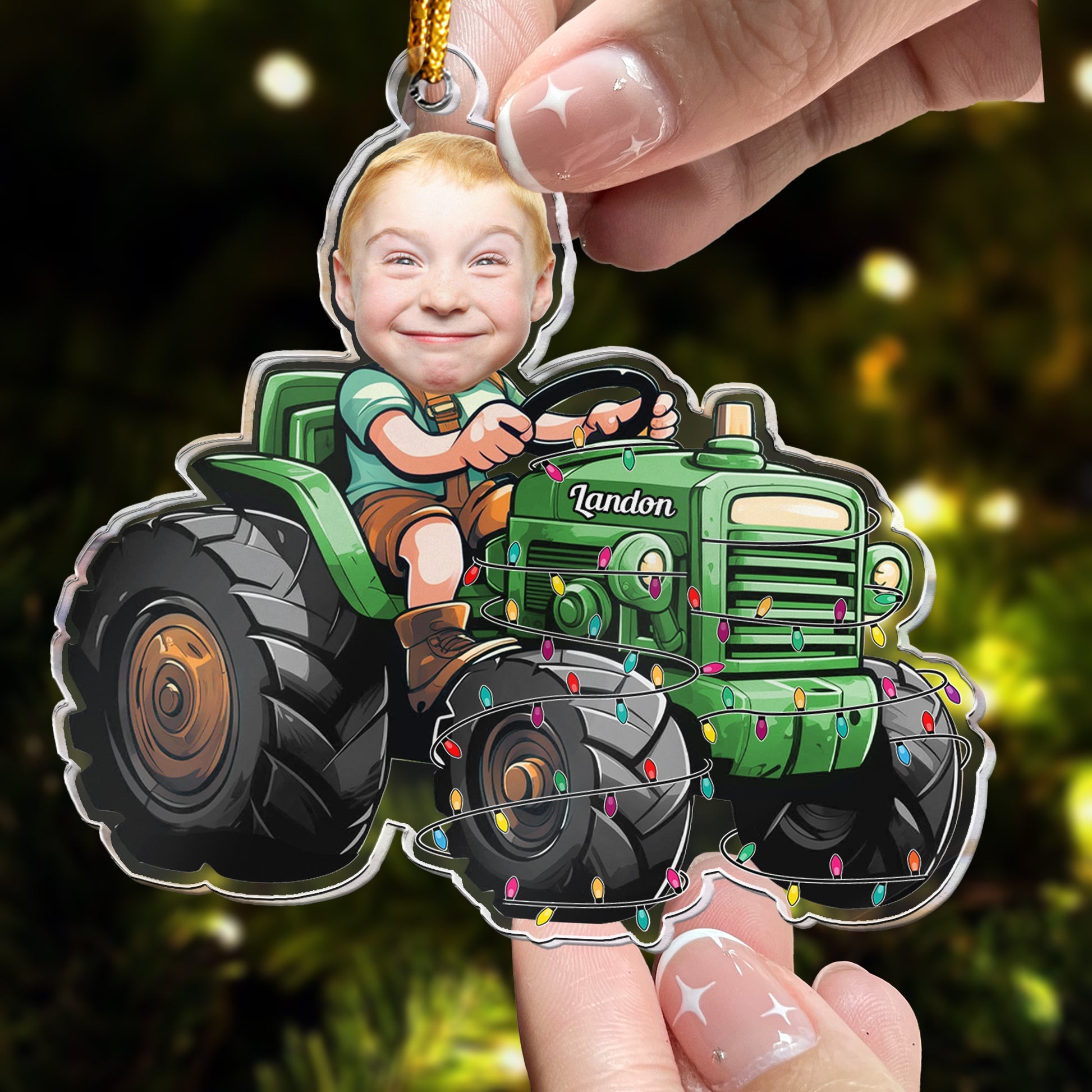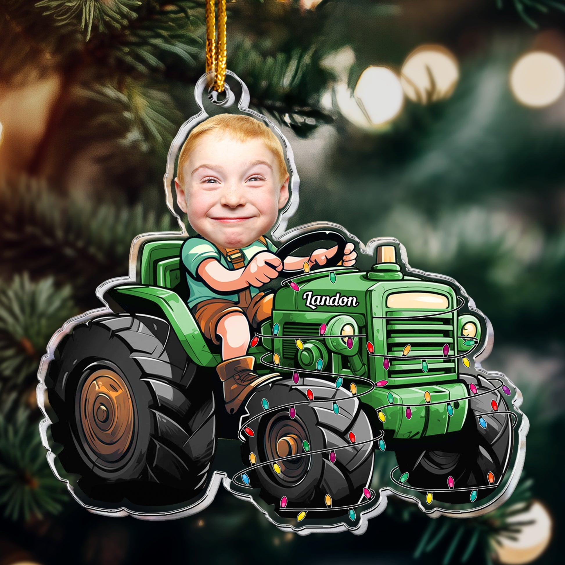 Just A Boy Who Loves Tractor Custom Kid Face - Personalized Acrylic Photo Ornament