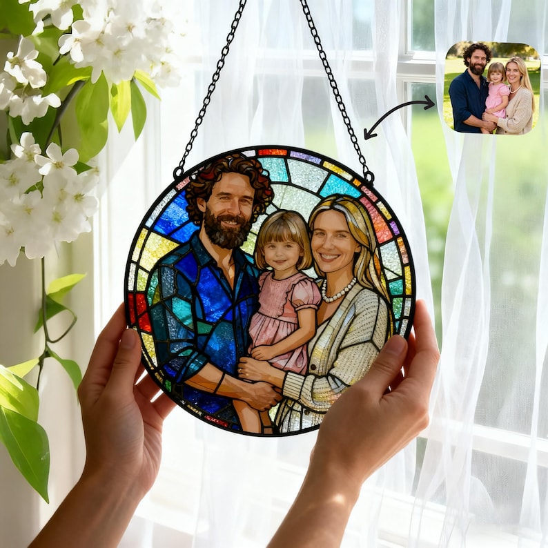 Stained Glass Portrait Ornament, Personalized Christmas Suncatcher, Couple or Family Photo Gift, Holiday Keepsake