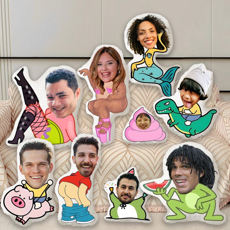 Custom Face Pillow : Personalized Photo Throw Pillow Funny Couple Gift.