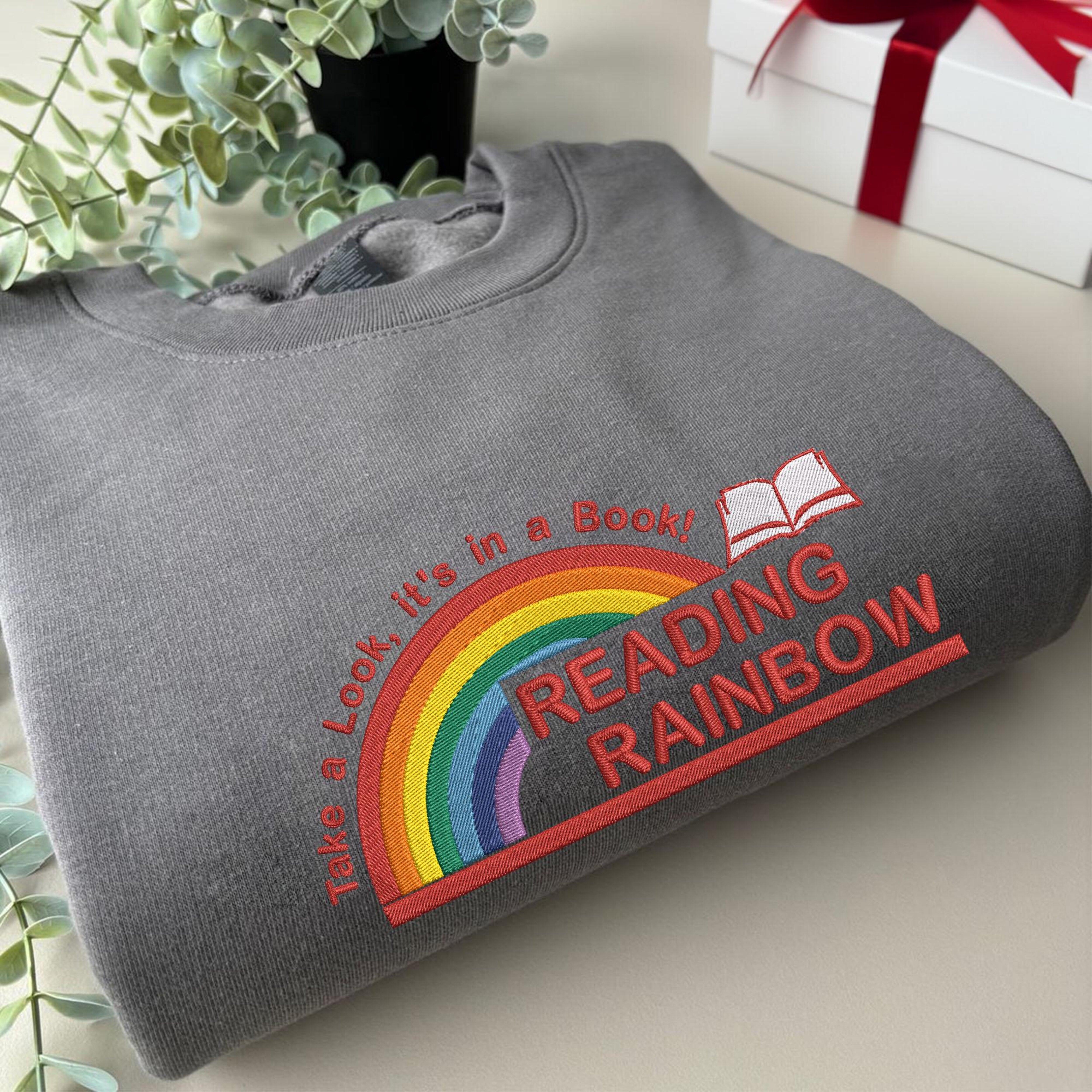 Reading Rainbow Hoodie, Custom Embroidered Book Lover Sweatshirt, Librarian Hoodie, Teacher Appreciation Shirt, Gift For Teacher
