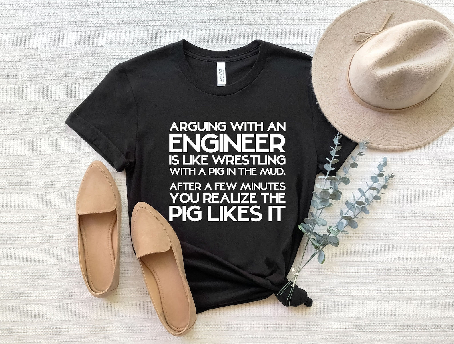 Arguing With An Engineer Is Like Wrestling With A Pig In The Mud Shirt Gift For Dad Father