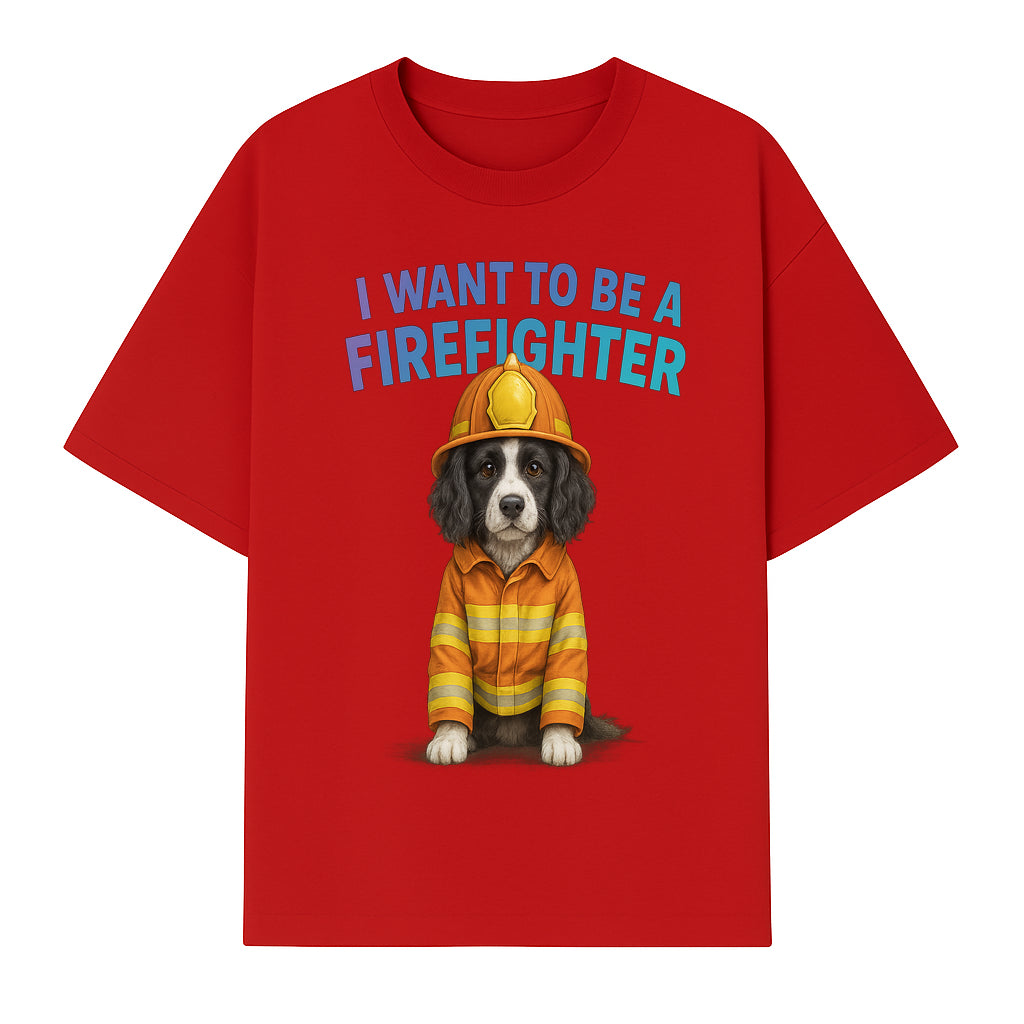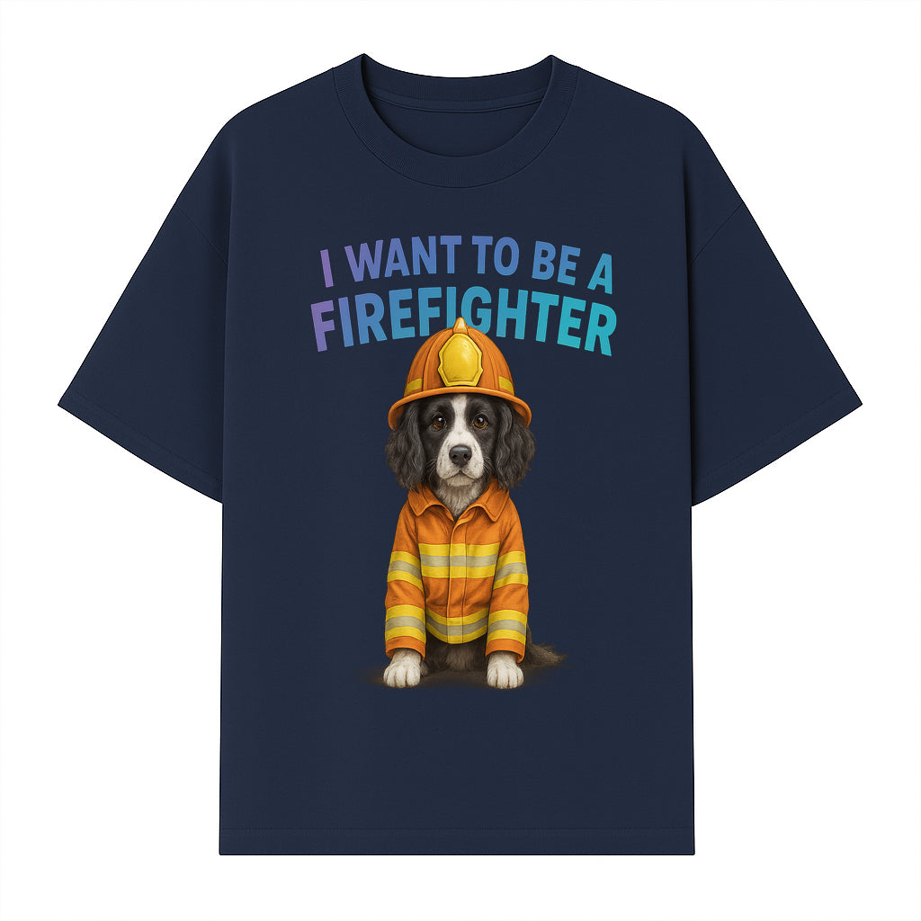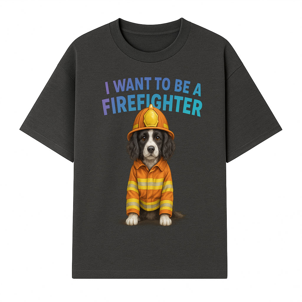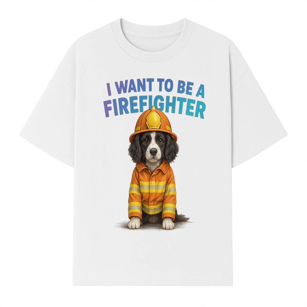 Custom I Want to Be a Firefighter Dog Art Print | Cute Firefighter Dog Illustration | Kids Room Decor | Animal Wall Art - T-shirt