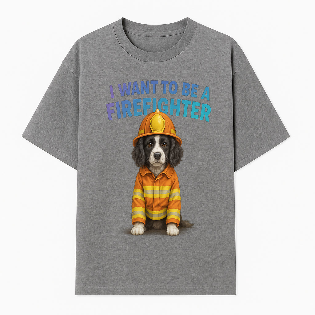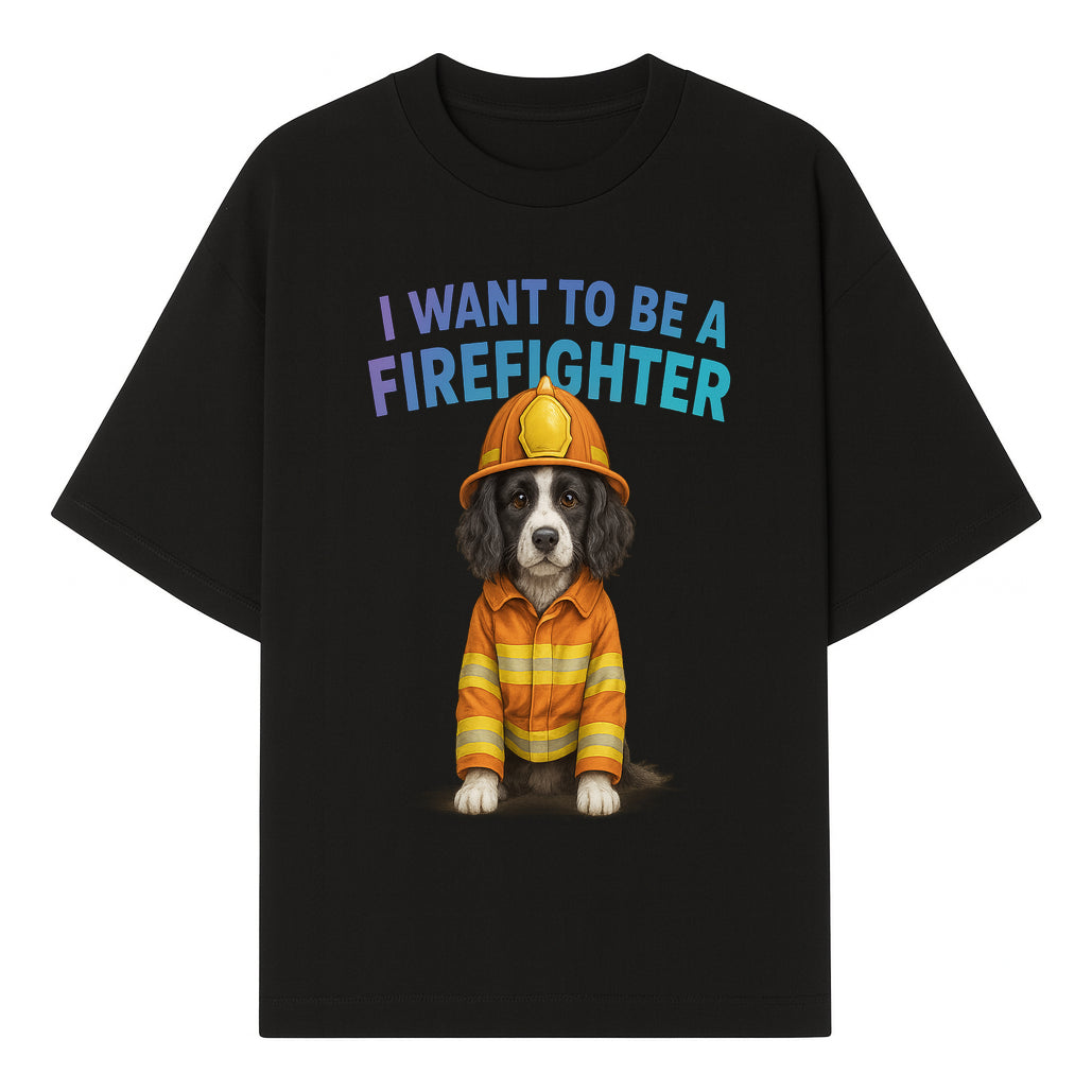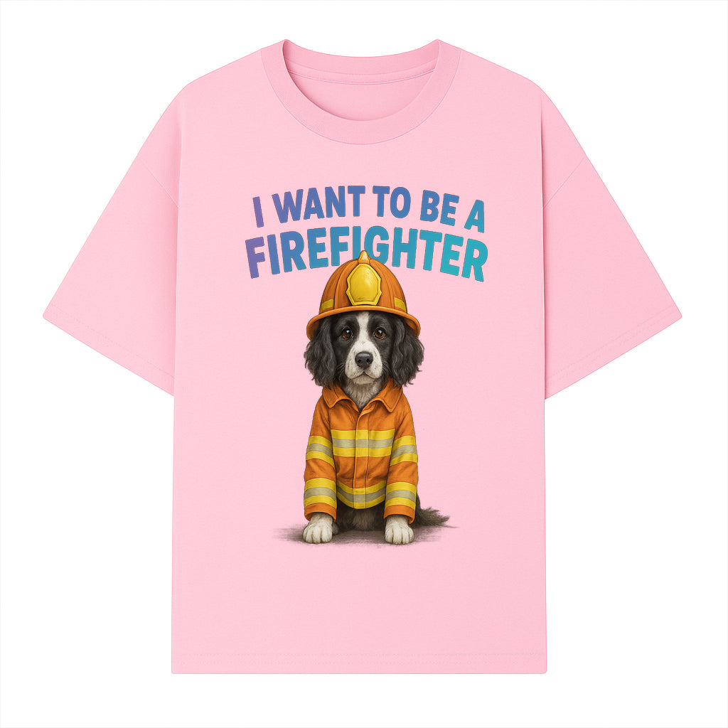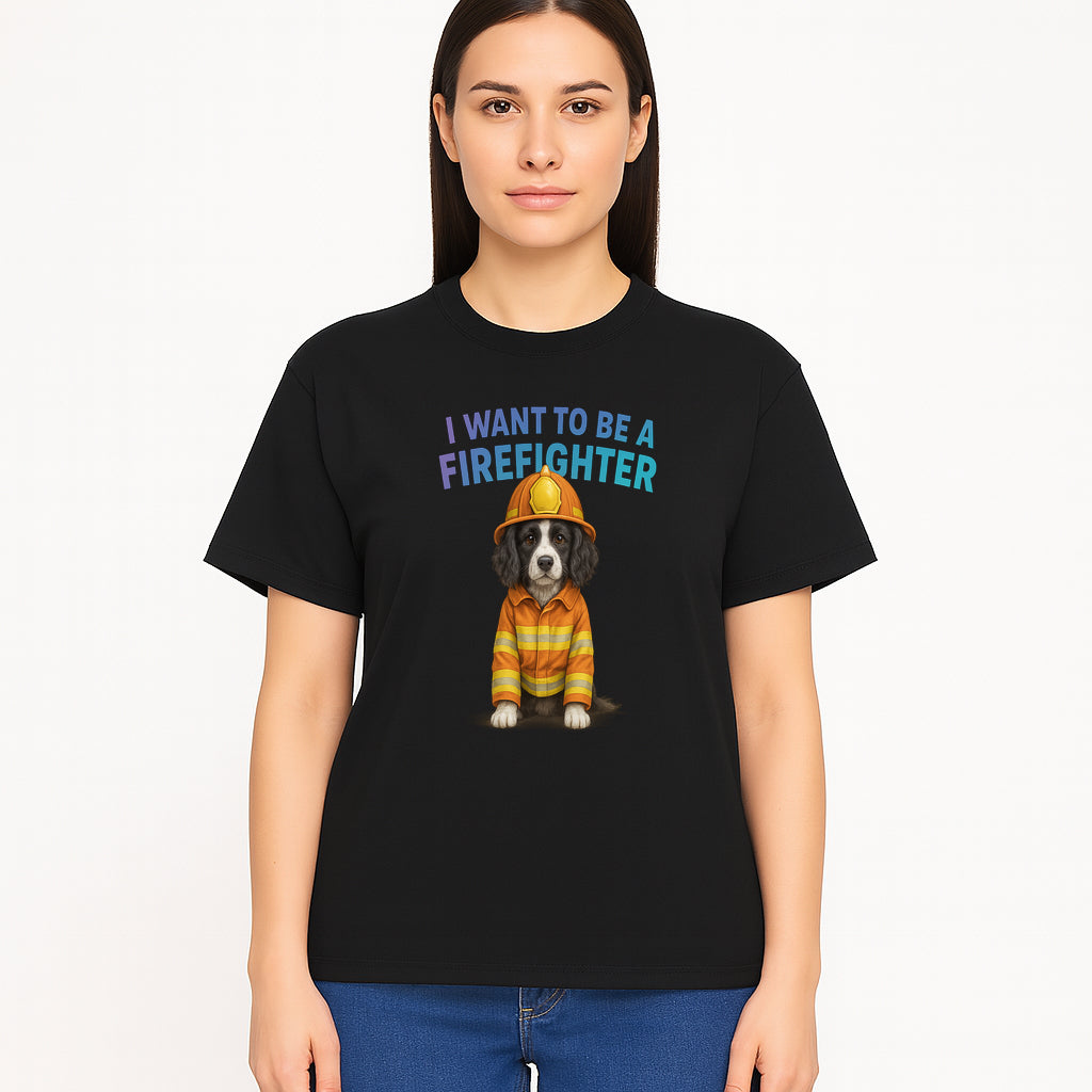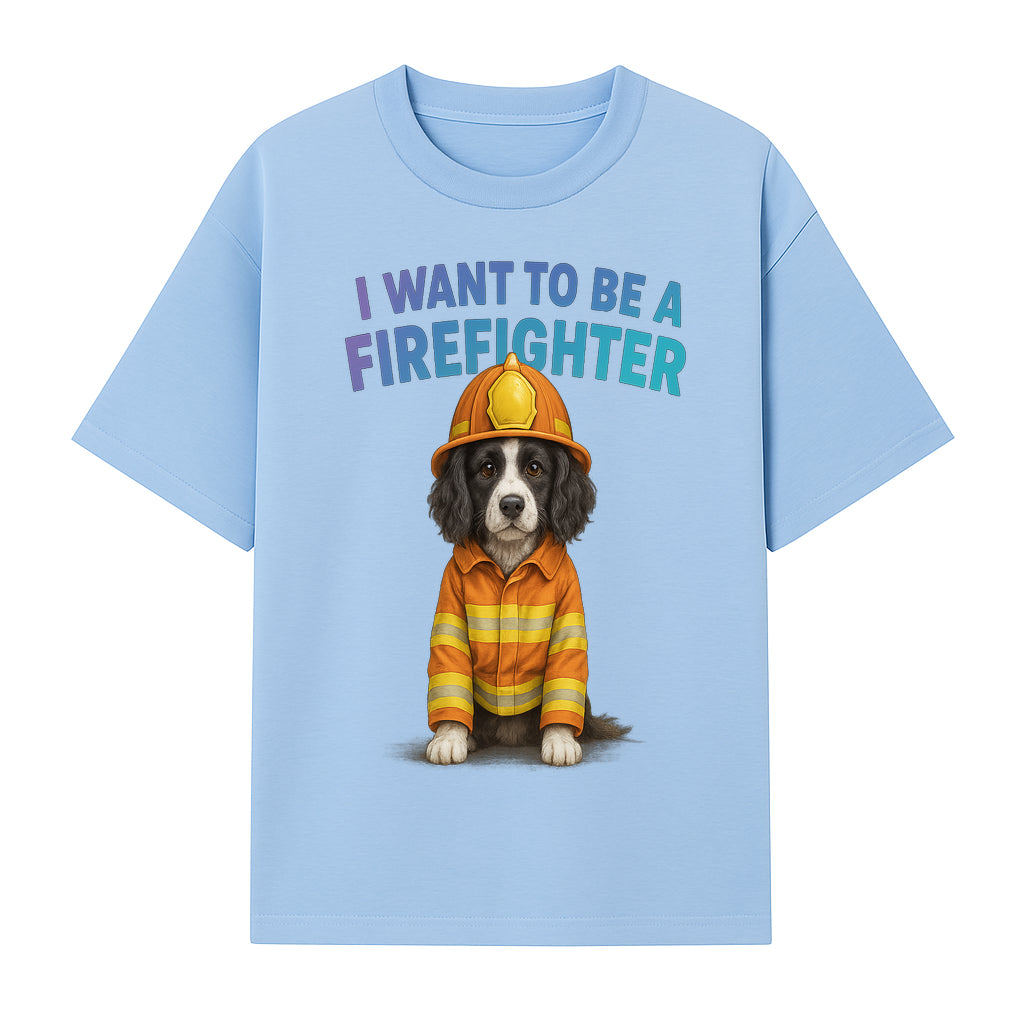 Custom I Want to Be a Firefighter Dog Art Print | Cute Firefighter Dog Illustration | Kids Room Decor | Animal Wall Art - T-shirt