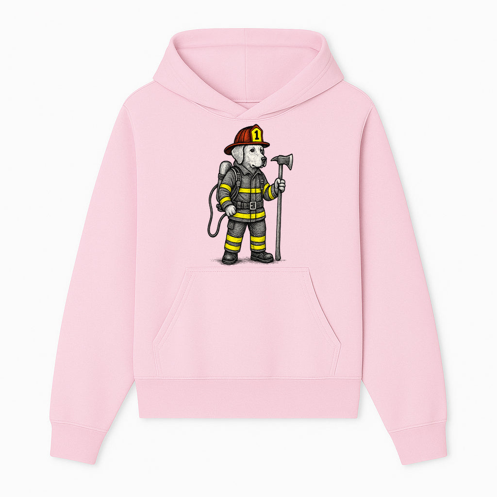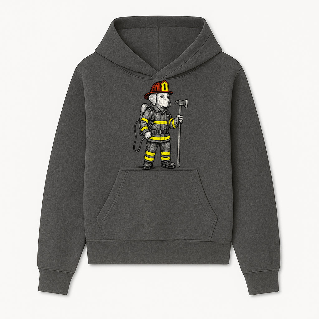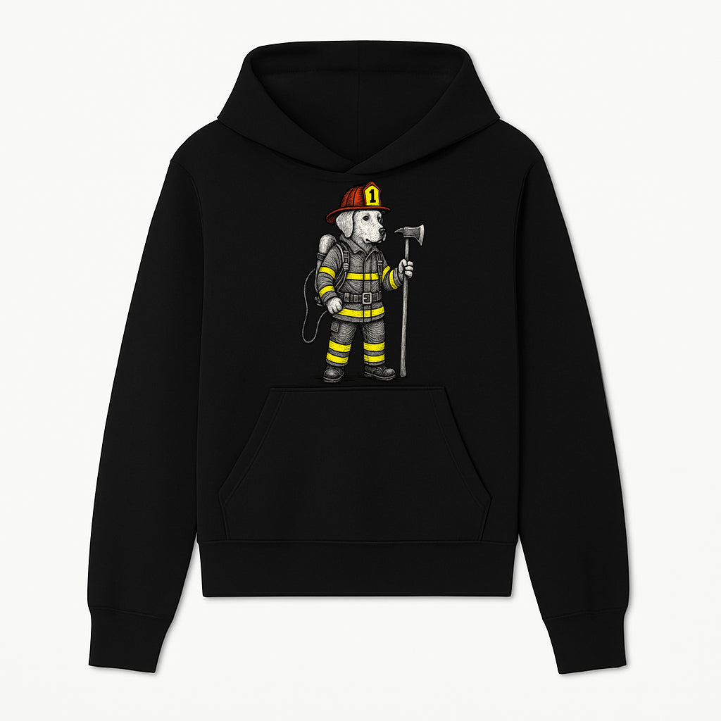 Cute Firefighter Dog Art Print | Funny Pet Decor | Gift for Dog Lovers | Cute Animal Illustration in Firefighter Uniform - Hoodie