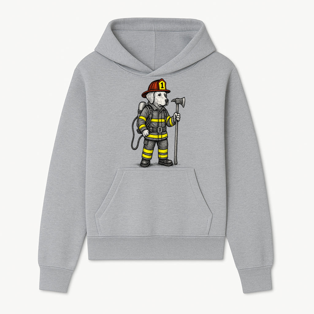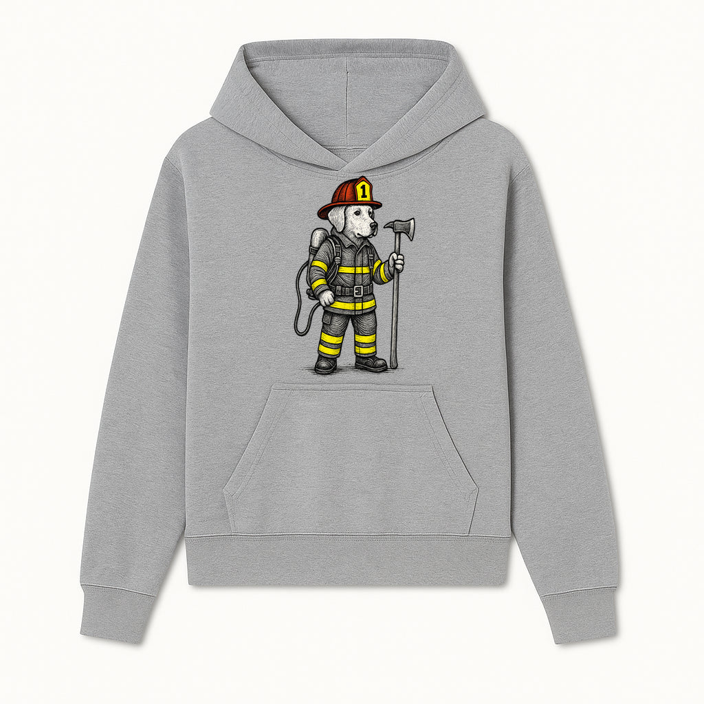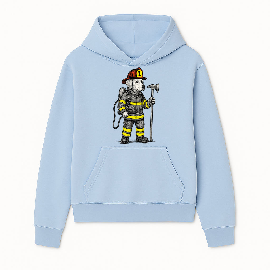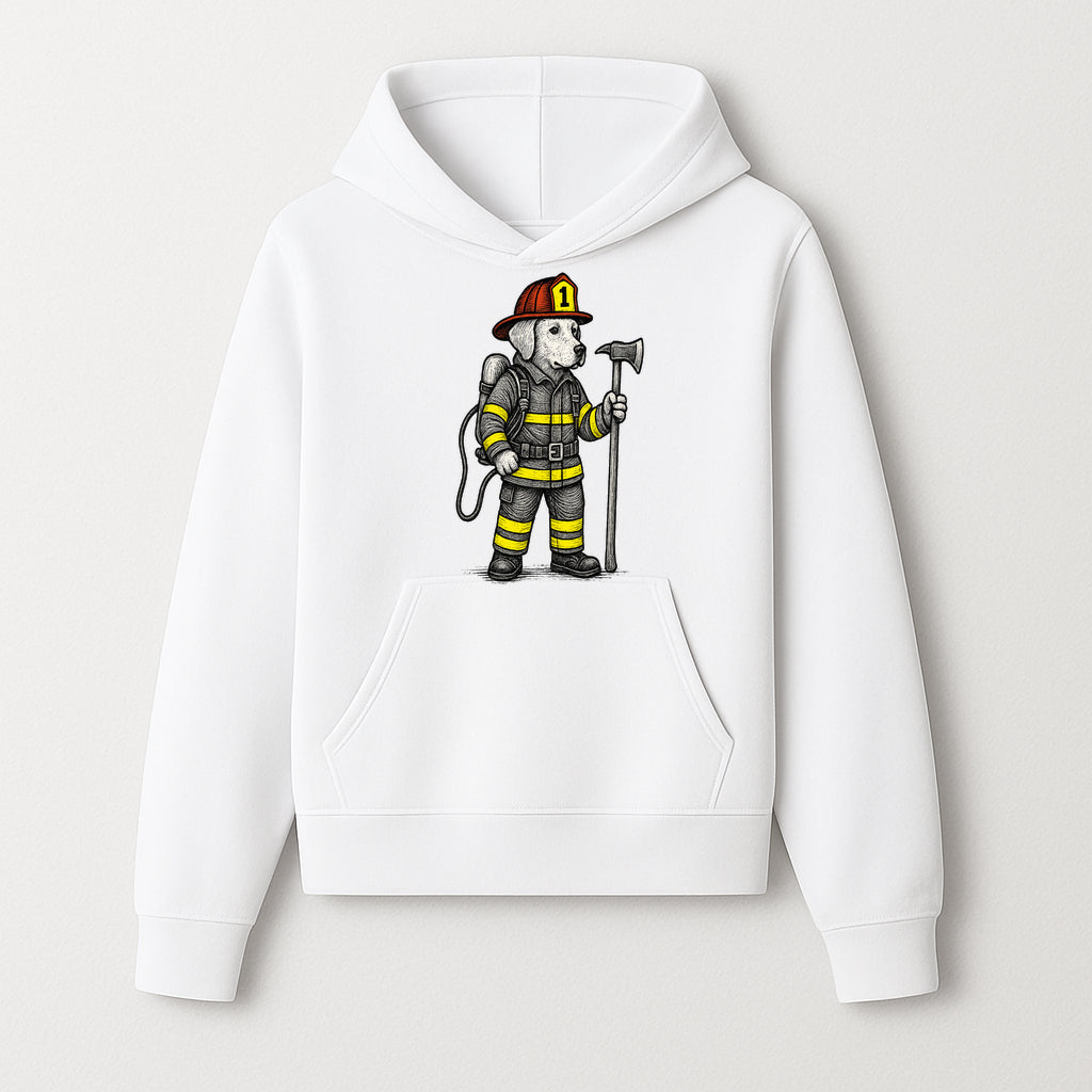 Cute Firefighter Dog Art Print | Funny Pet Decor | Gift for Dog Lovers | Cute Animal Illustration in Firefighter Uniform - Hoodie