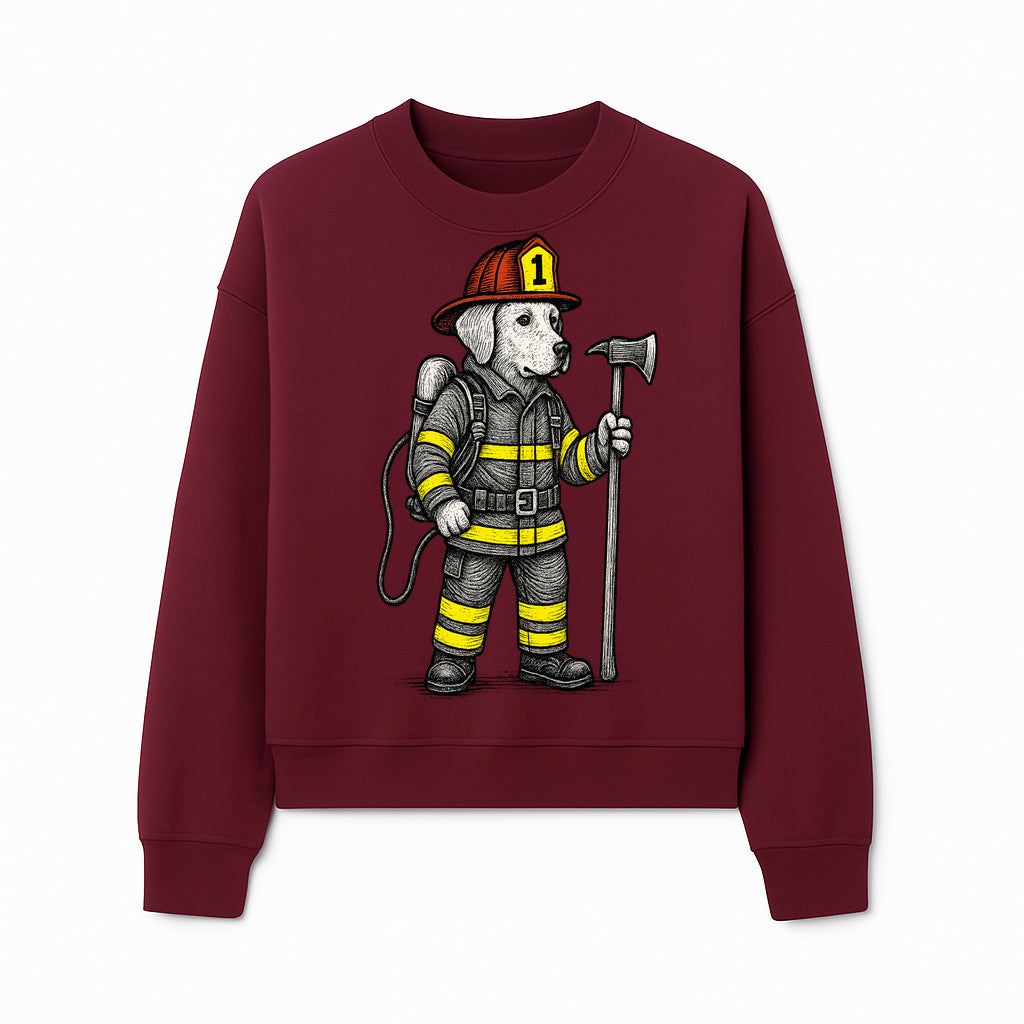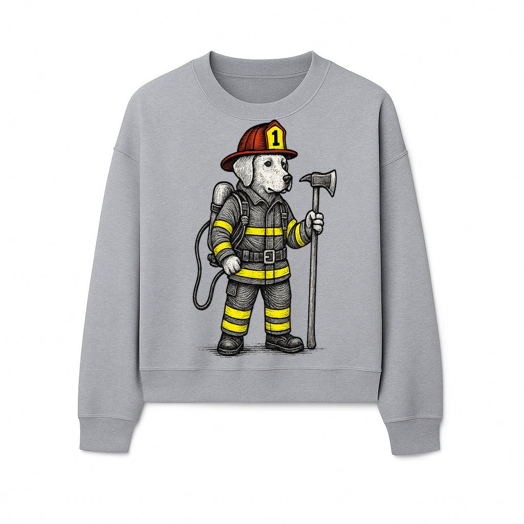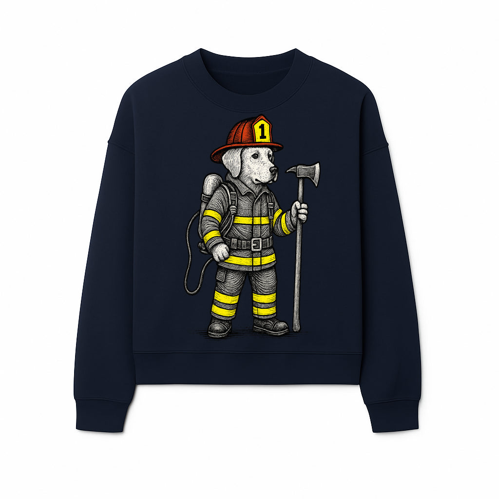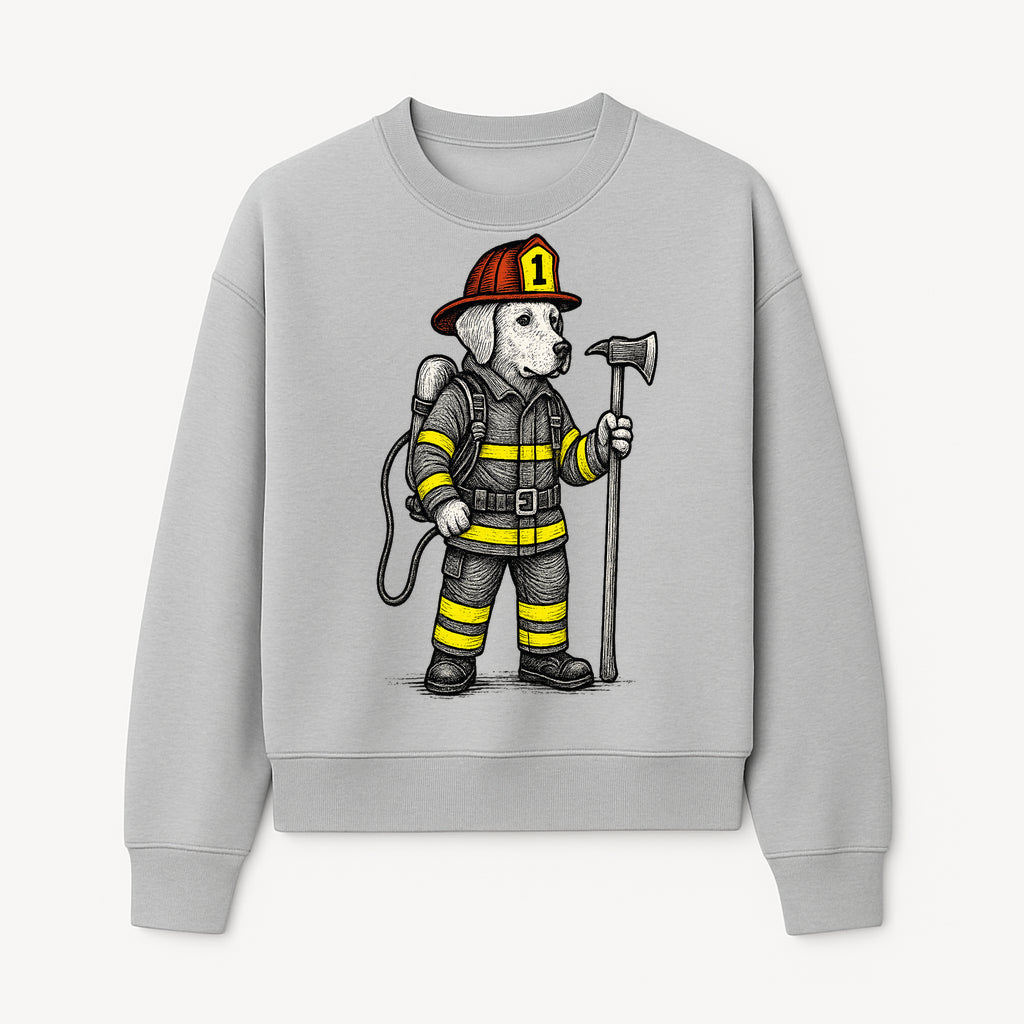Cute Firefighter Dog Art Print | Funny Pet Decor | Gift for Dog Lovers | Cute Animal Illustration in Firefighter Uniform - Sweatshirt