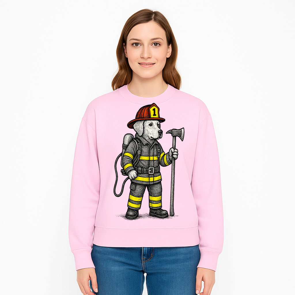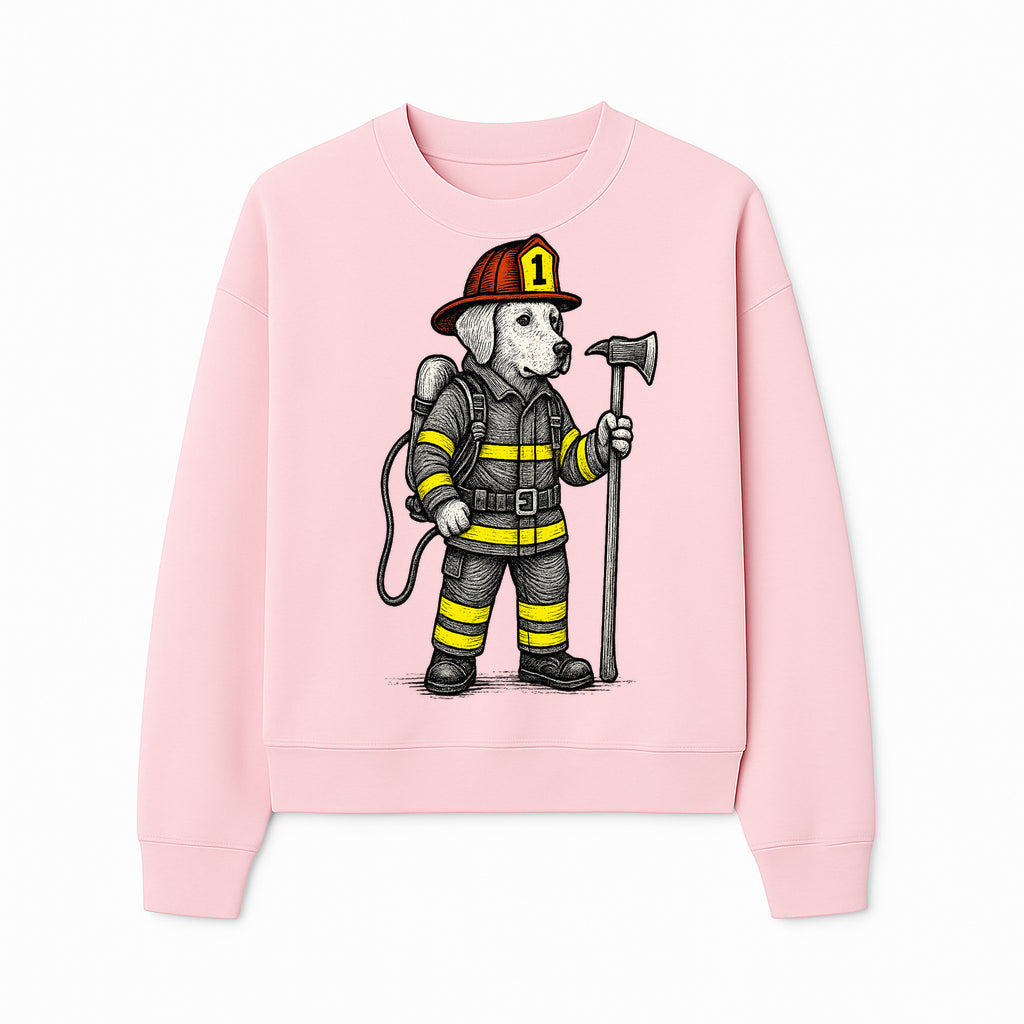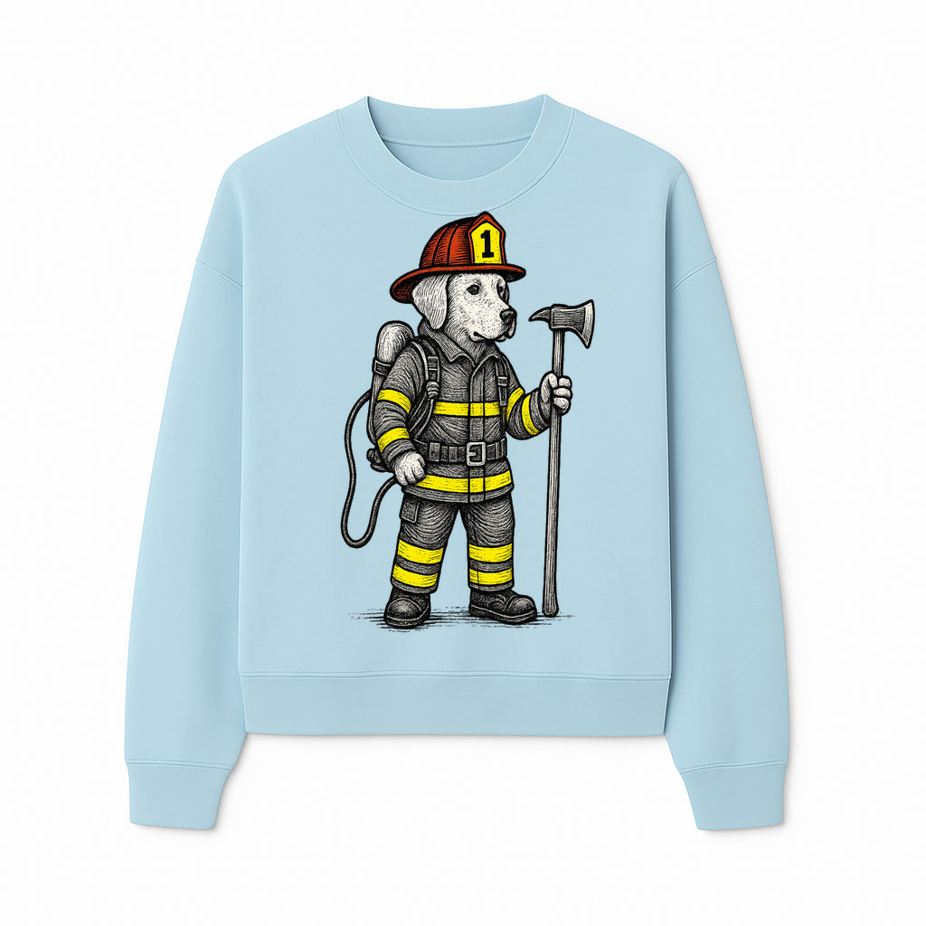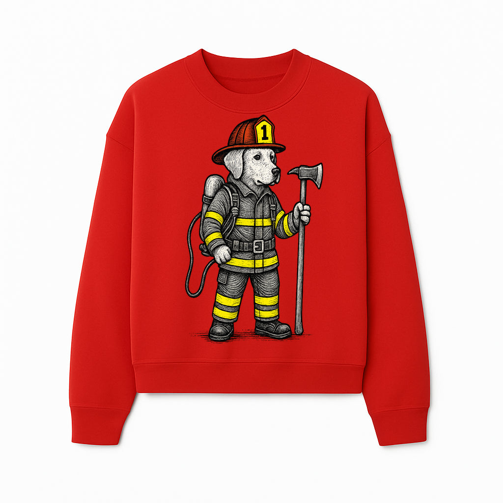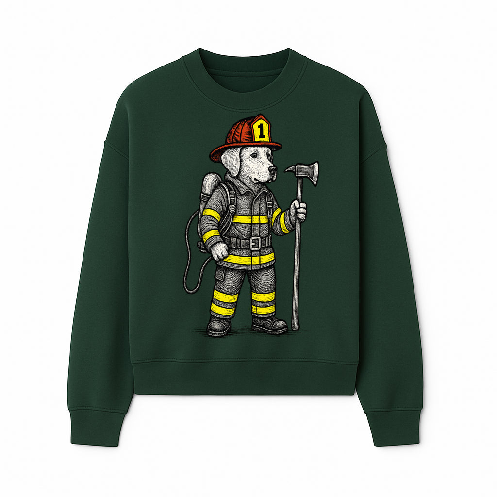 Cute Firefighter Dog Art Print | Funny Pet Decor | Gift for Dog Lovers | Cute Animal Illustration in Firefighter Uniform - Sweatshirt