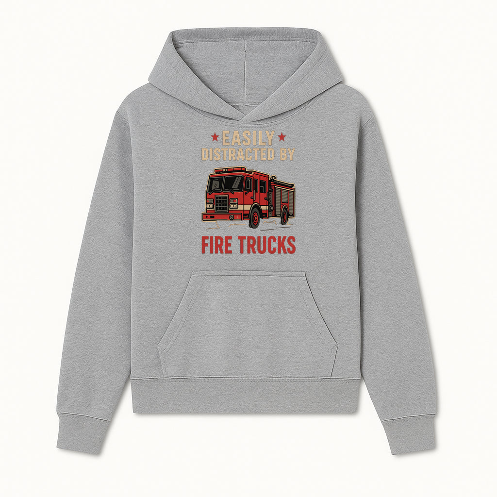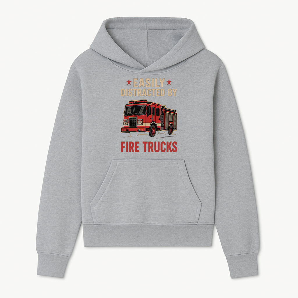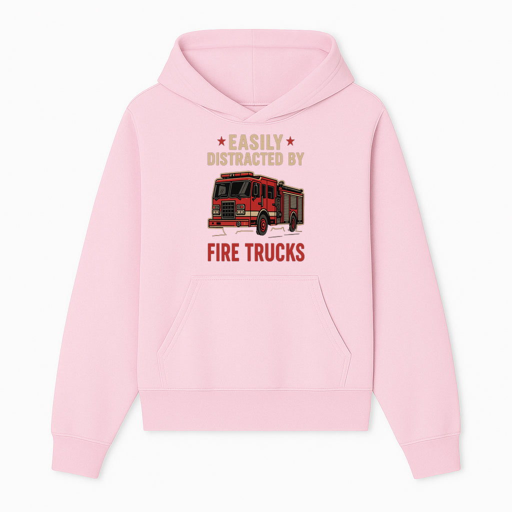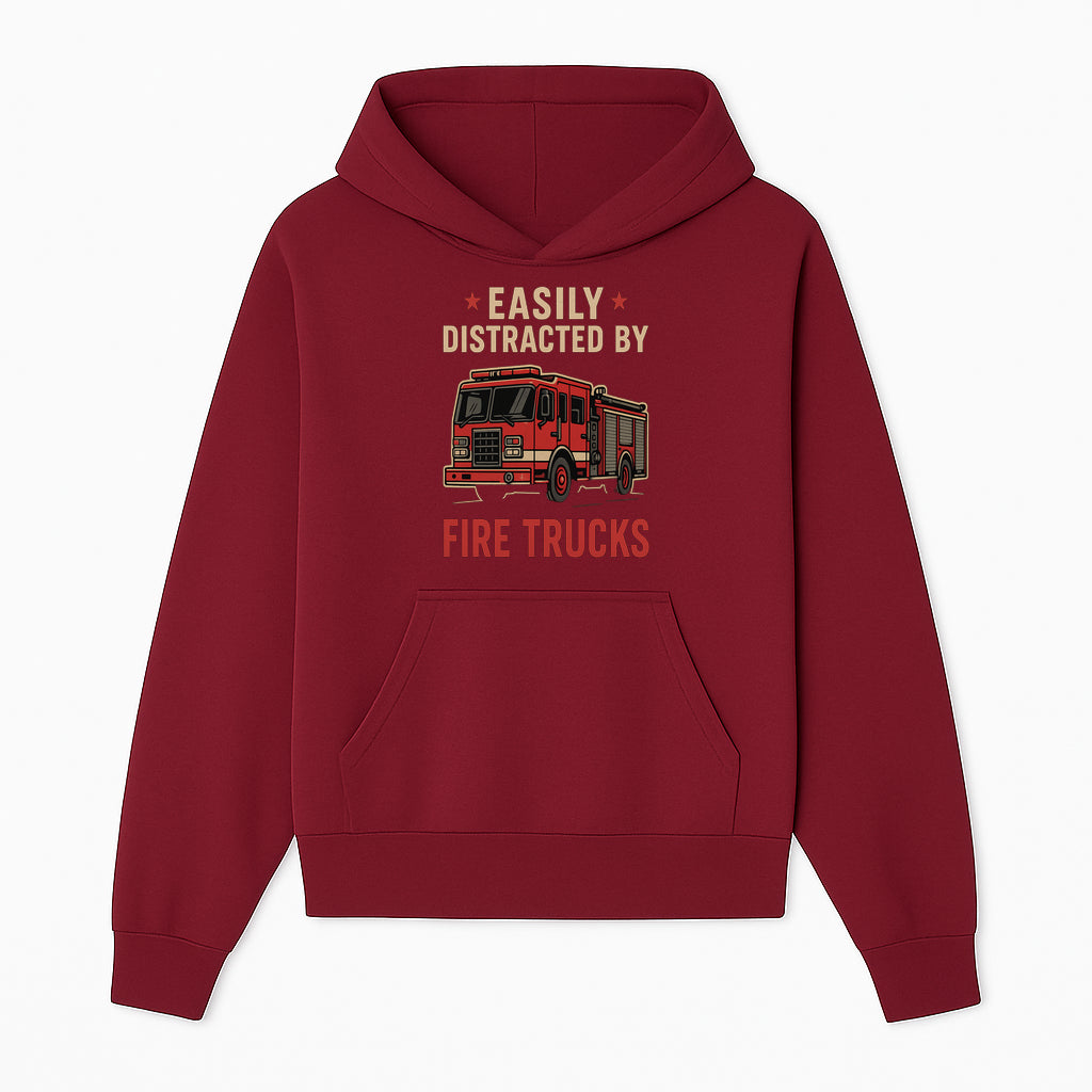Easily Distracted by Fire Trucks Retro Graphic Tee | Firefighter Enthusiast Shirt | Fun Casual Wear - Hoodie