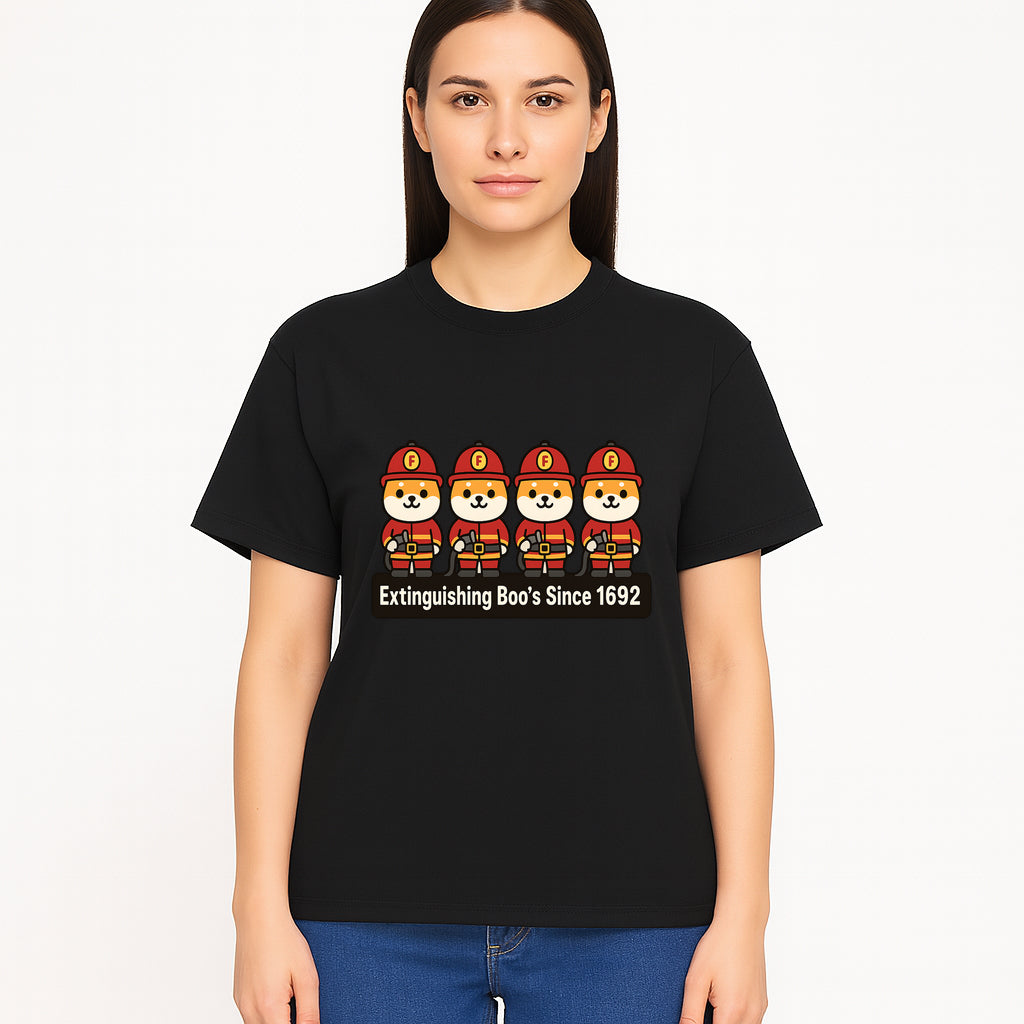 Firefighter Dog Cartoon Sticker - Extinguishing Boo's Since 1692 Cute Pet Lover Gift for Kids and Adults - T-shirt