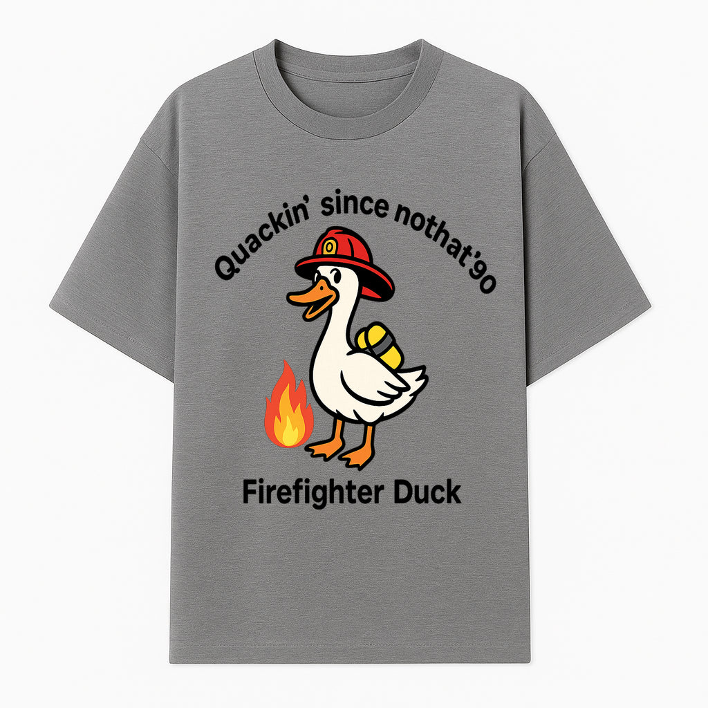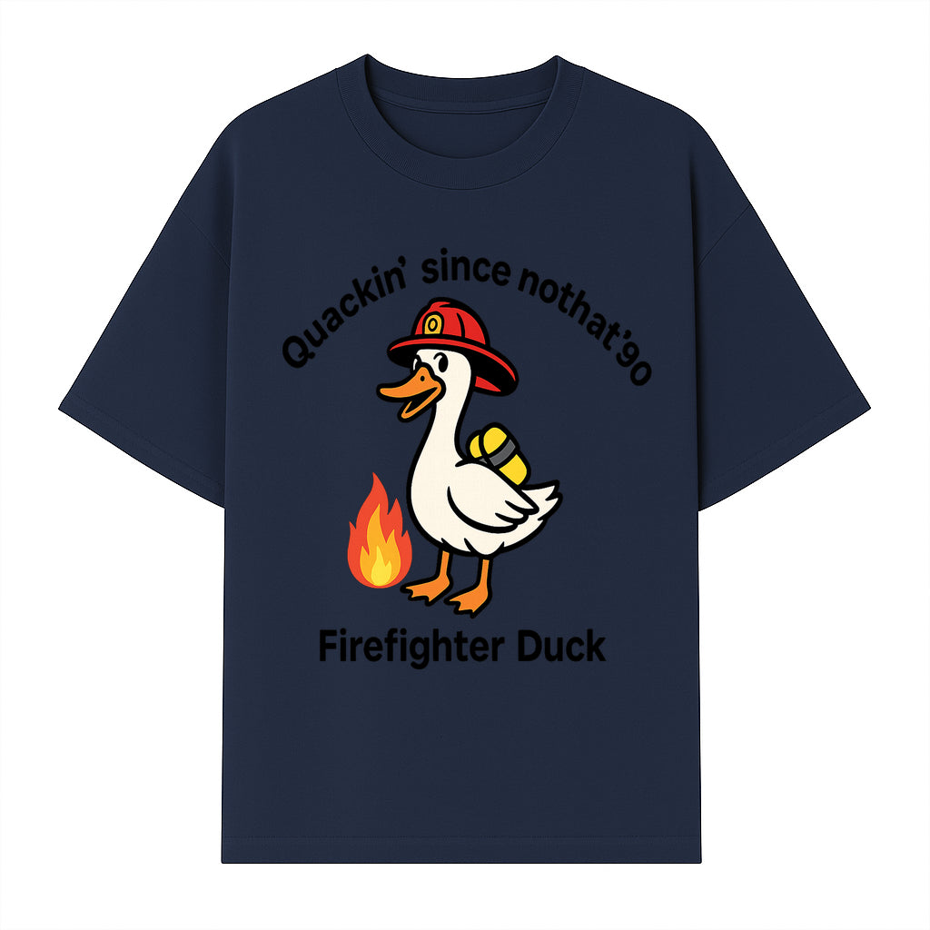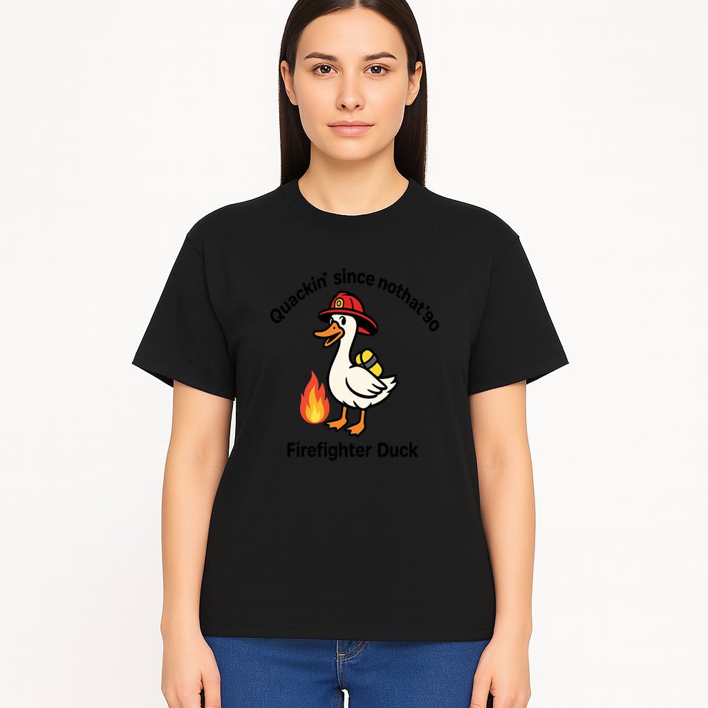 Firefighter Duck Design - Quackin' Since '90 Funny Fireman Graphic for Animal Lovers and Firefighting Enthusiasts - T-shirt