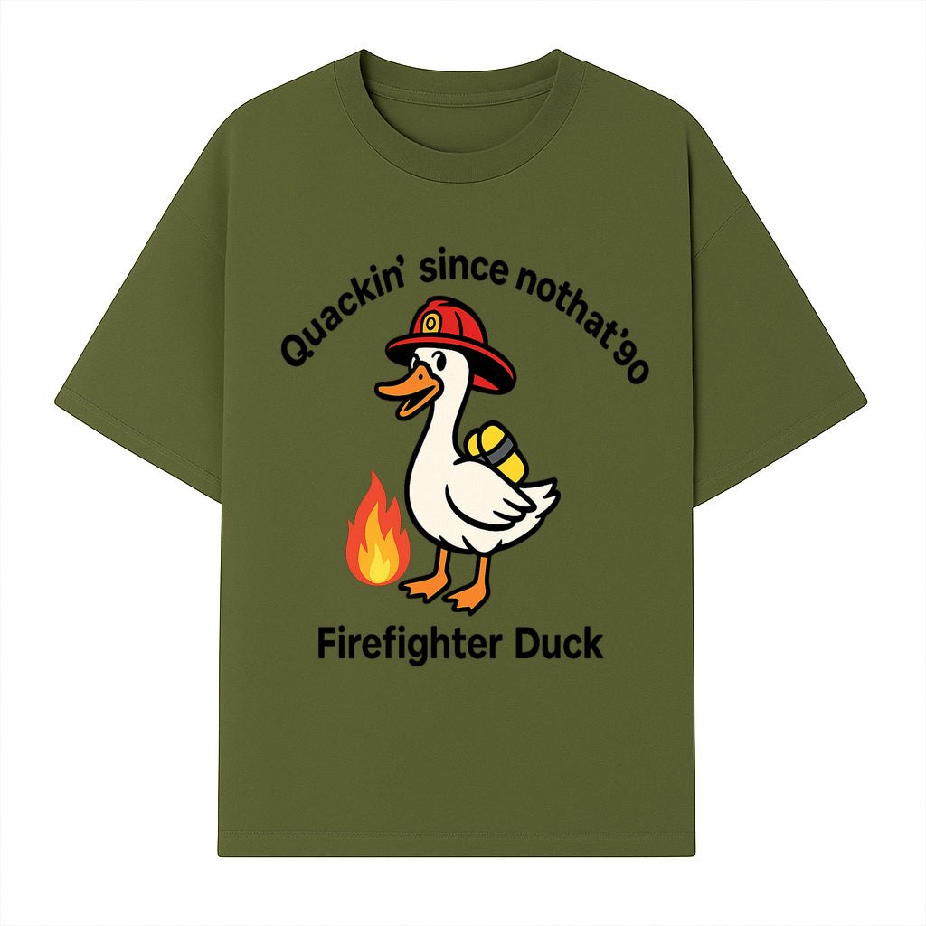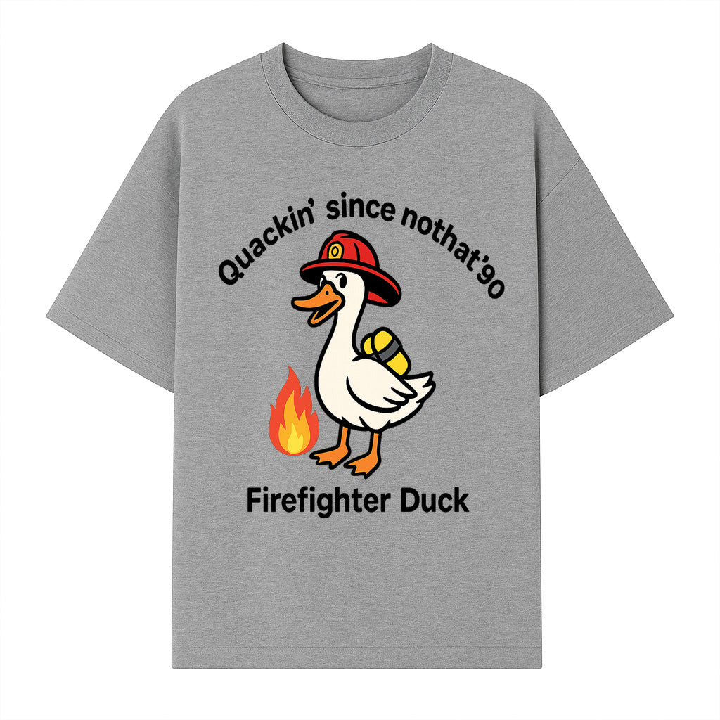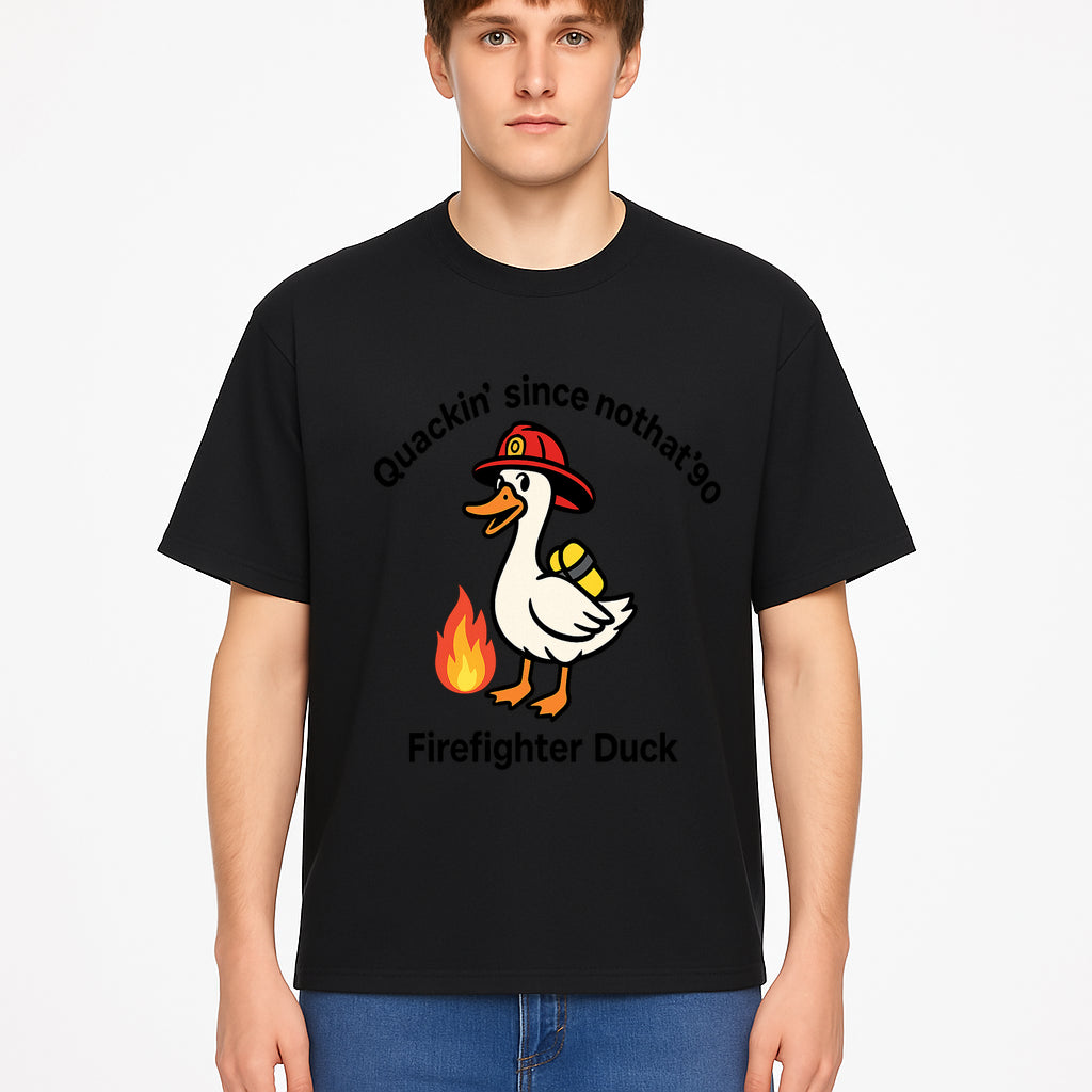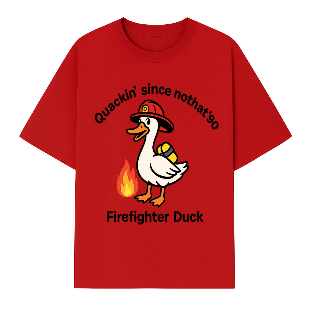 Firefighter Duck Design - Quackin' Since '90 Funny Fireman Graphic for Animal Lovers and Firefighting Enthusiasts - T-shirt