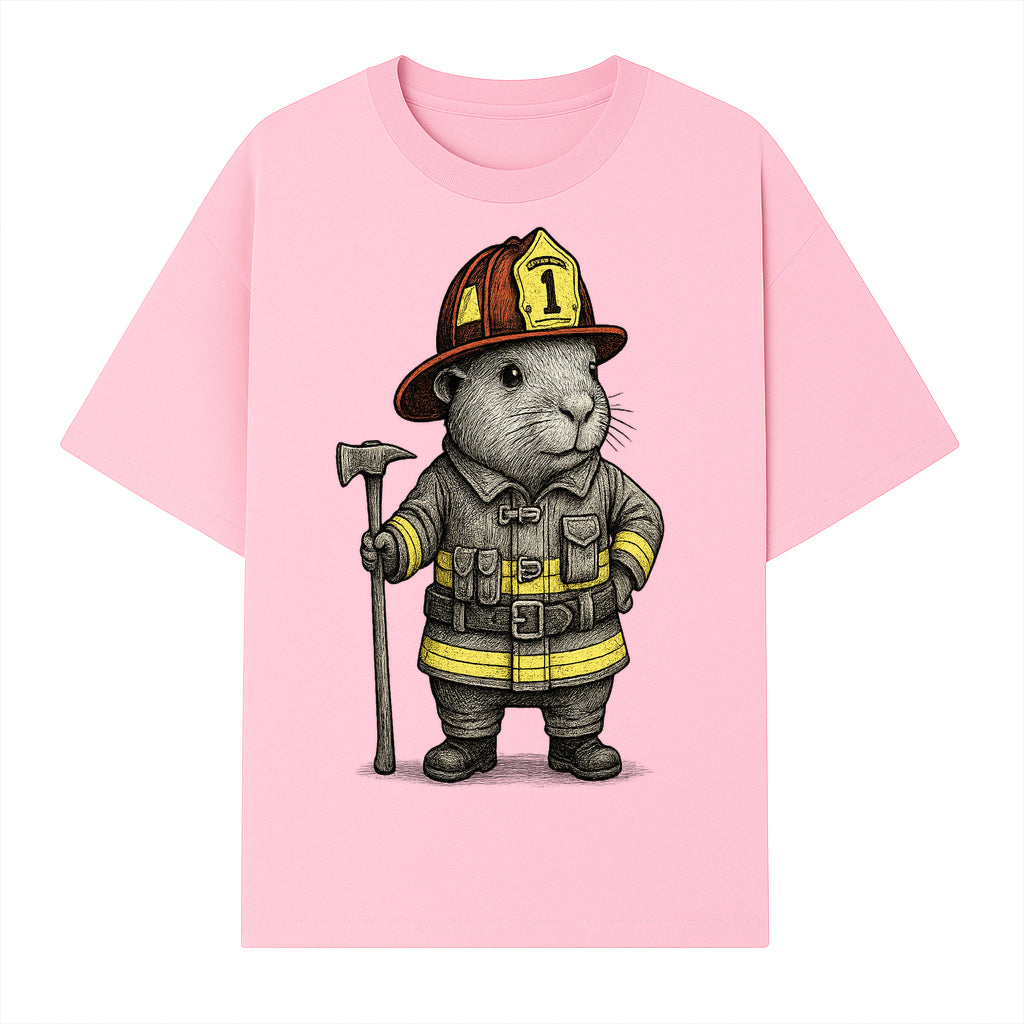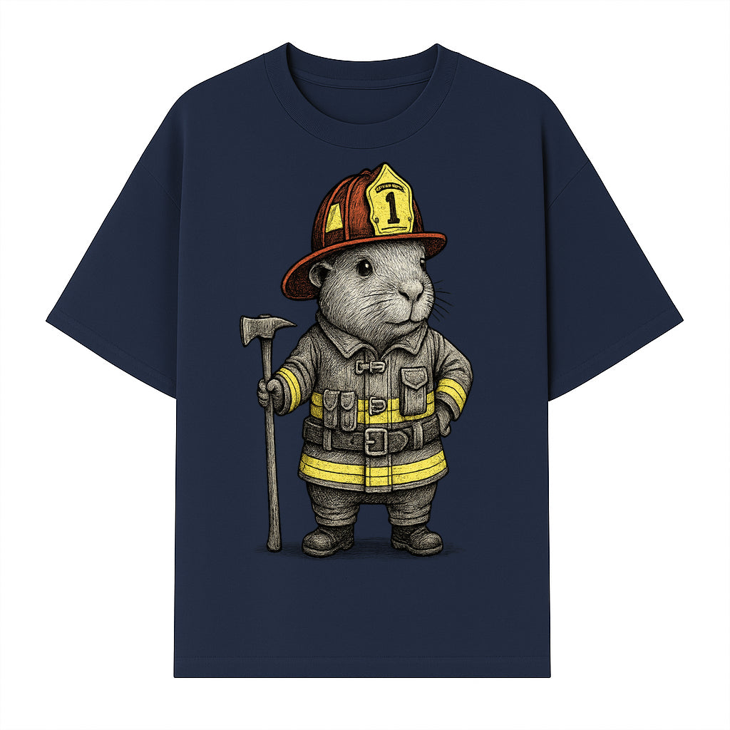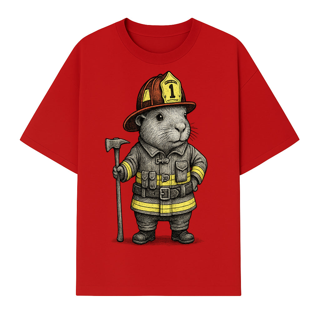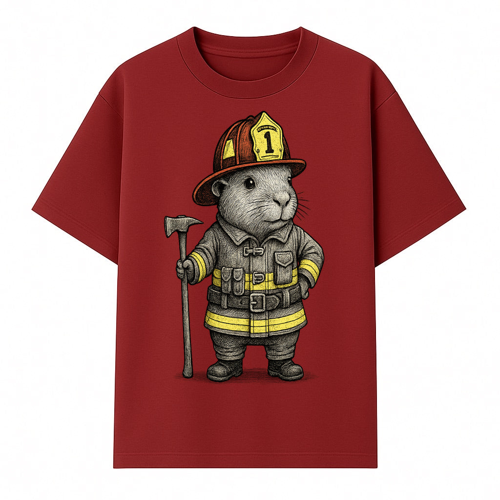 Firefighter Guinea Pig Art Print, Cute Fireman Illustration, Animal Lover Gift, Whimsical Home Decor, Unique Kids Room Wall Art - T-shirt