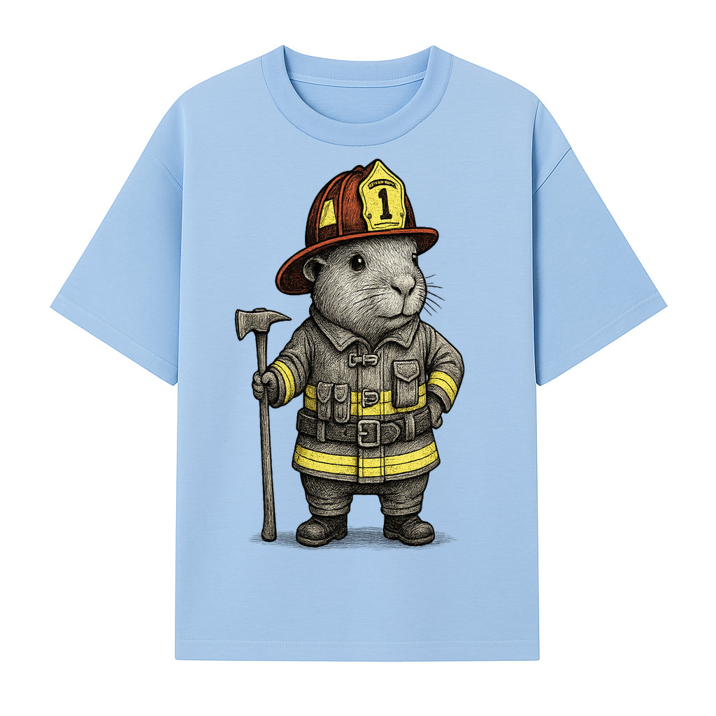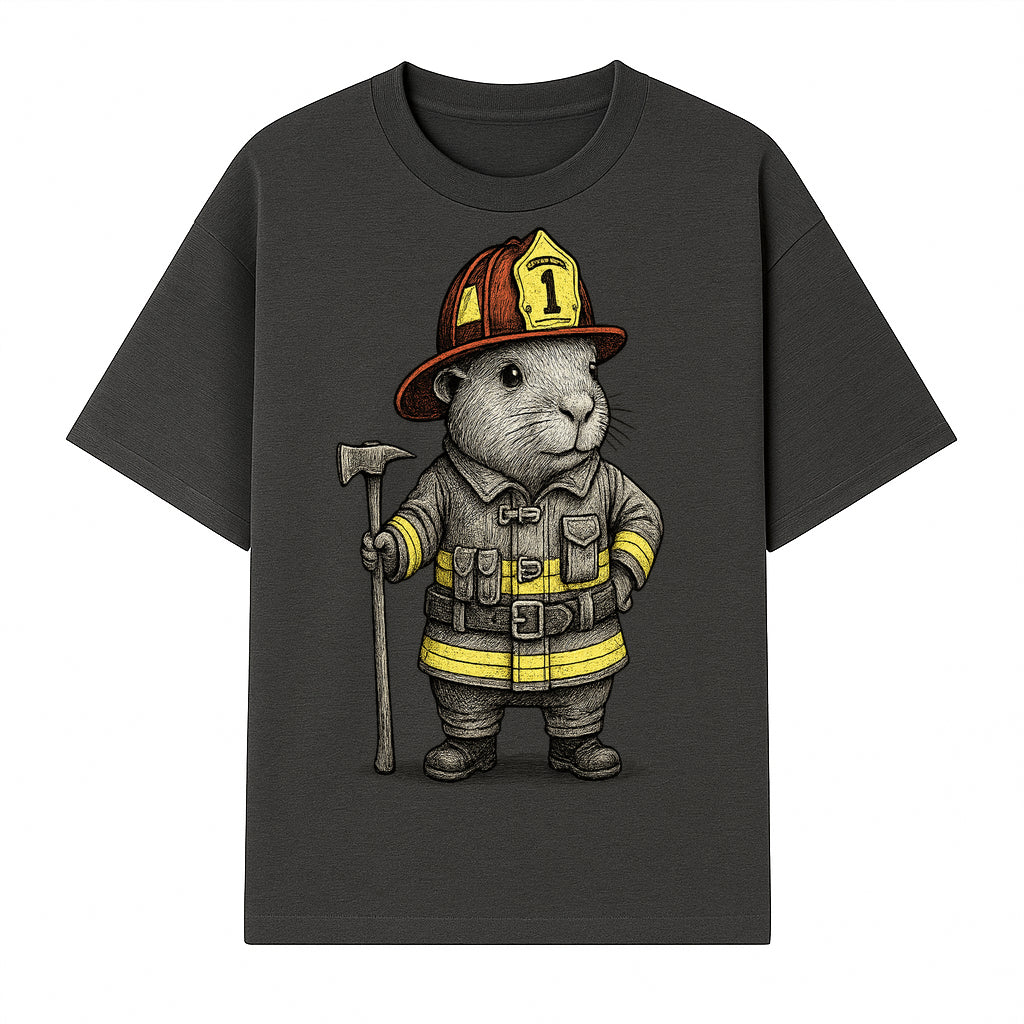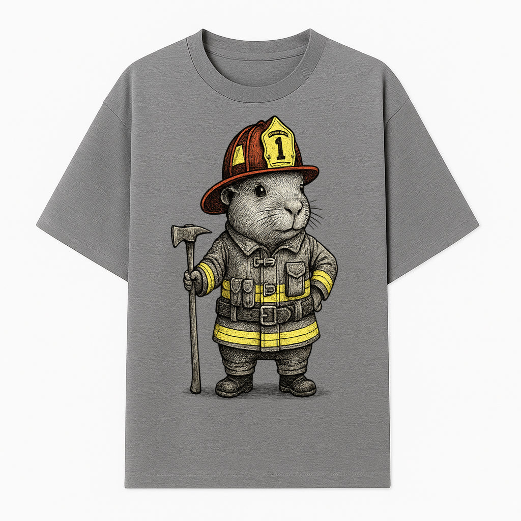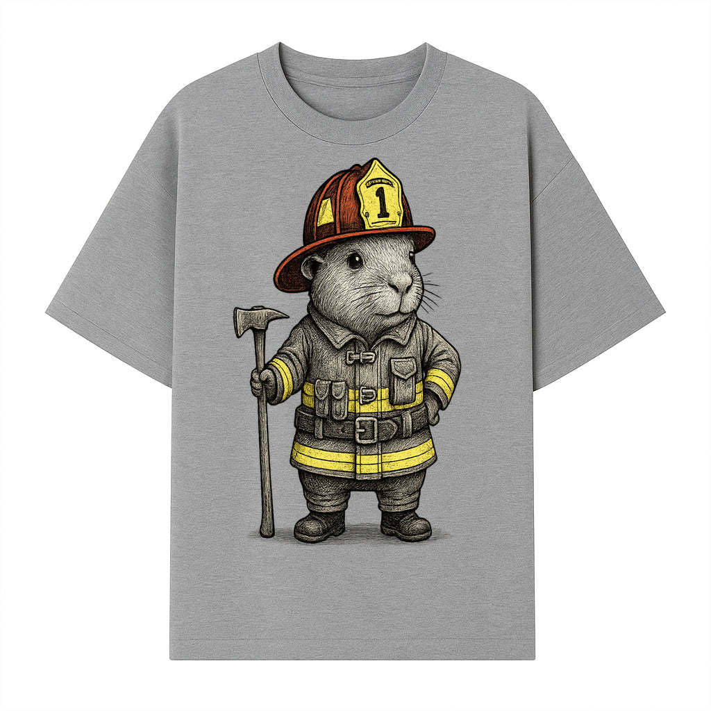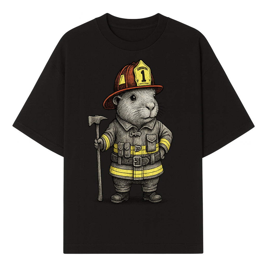 Firefighter Guinea Pig Art Print, Cute Fireman Illustration, Animal Lover Gift, Whimsical Home Decor, Unique Kids Room Wall Art - T-shirt