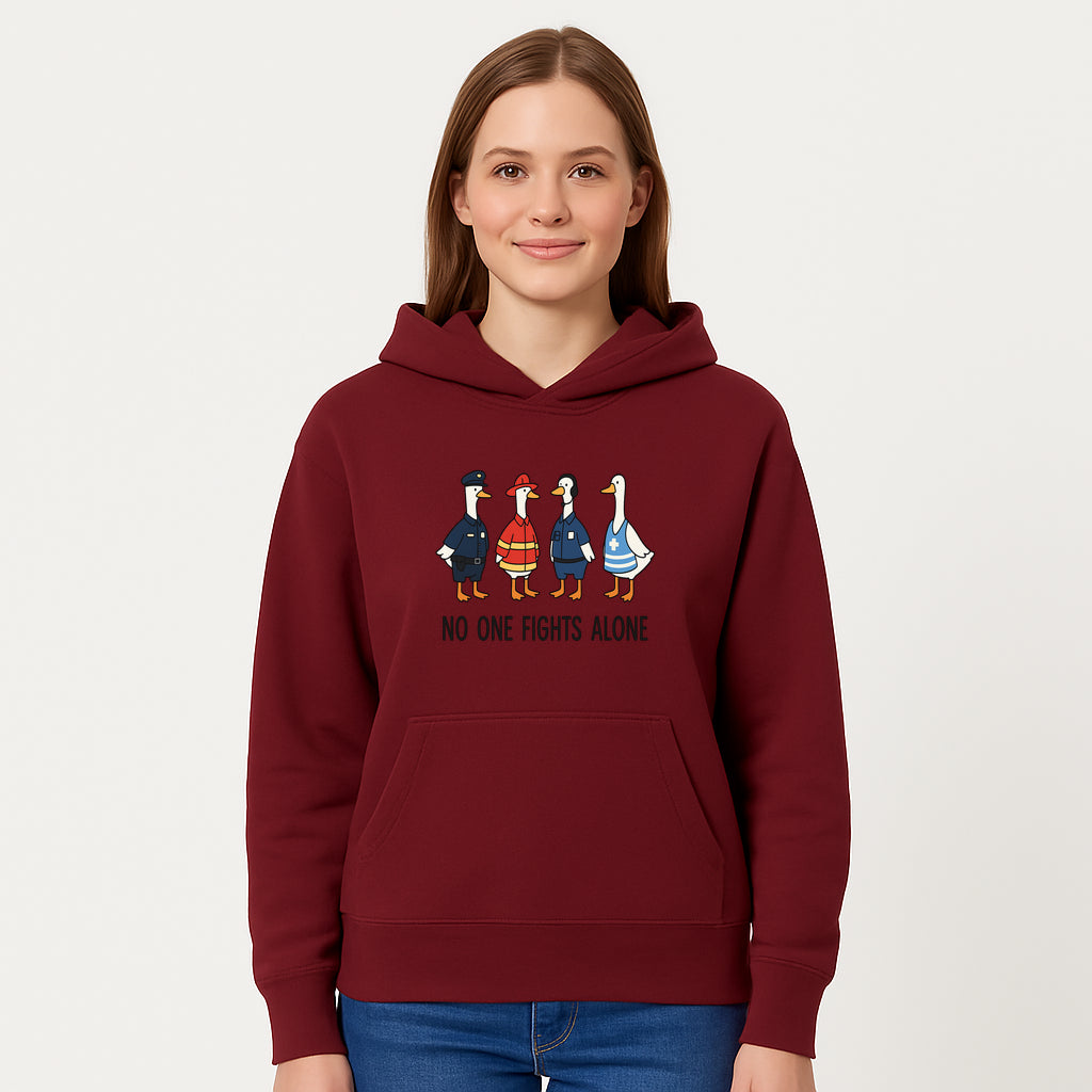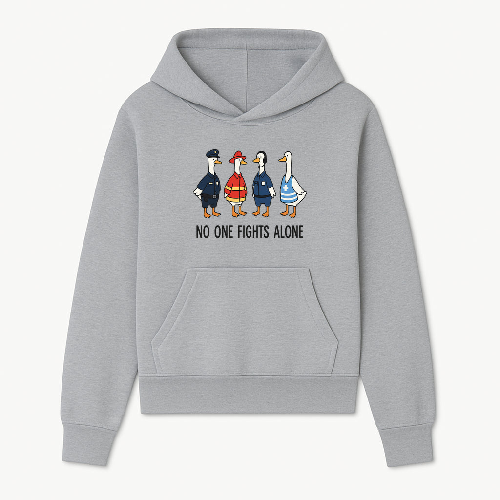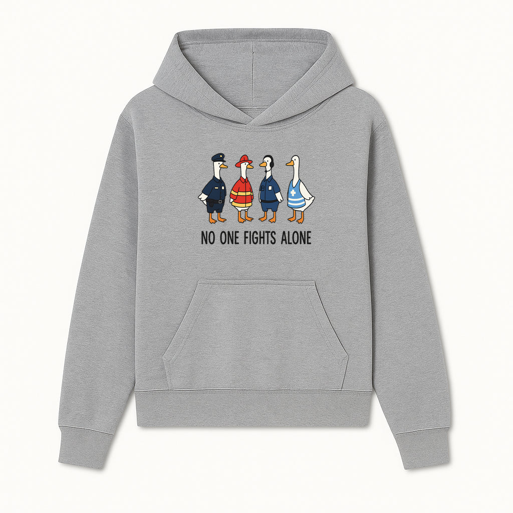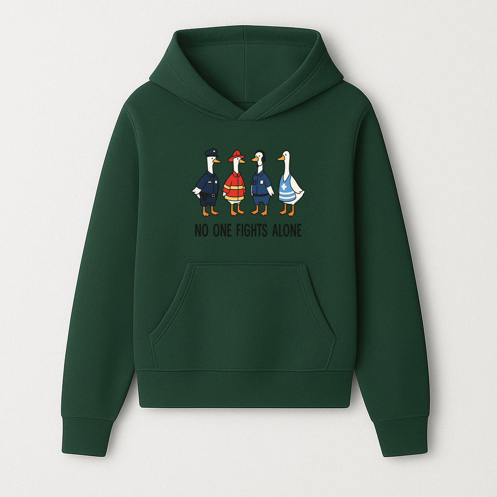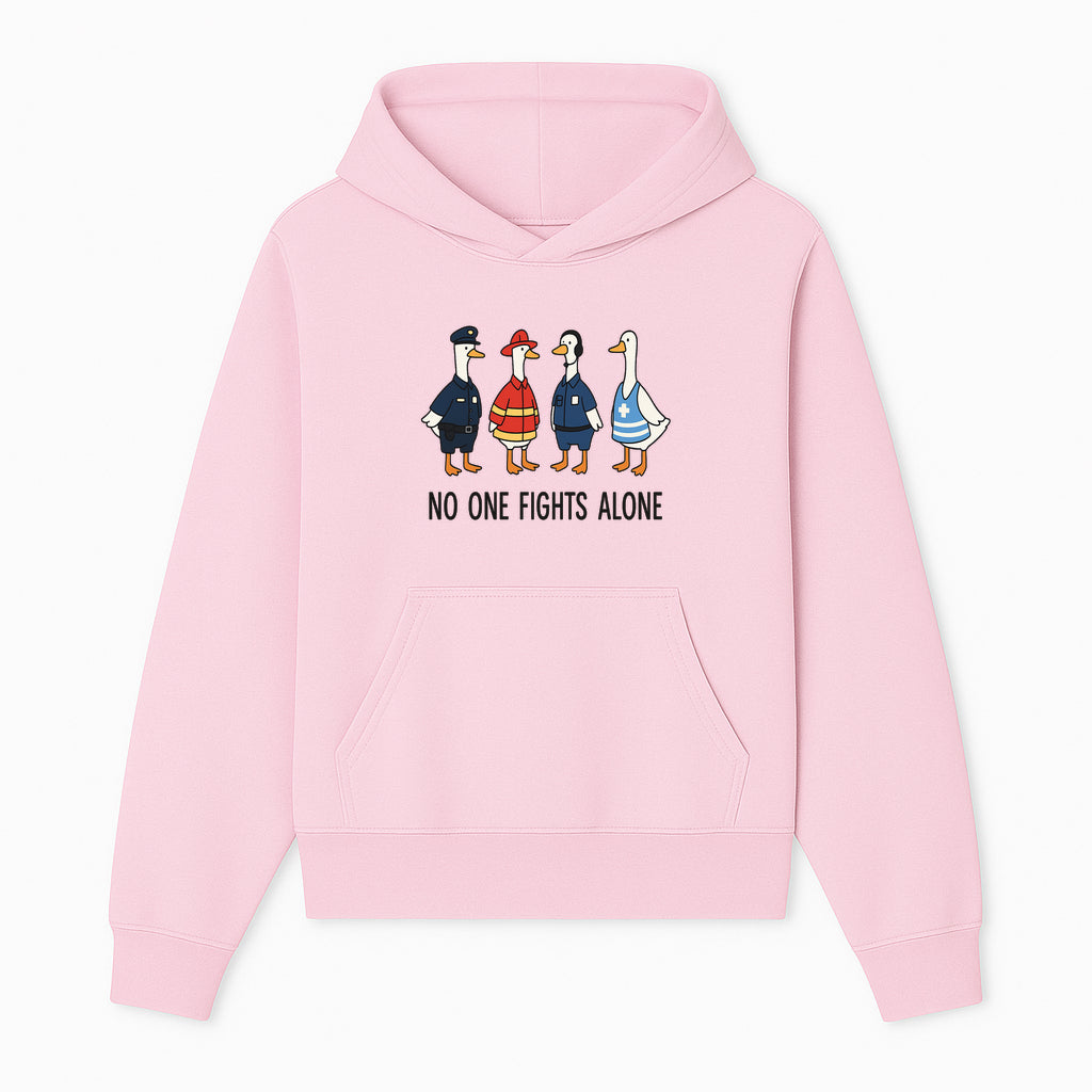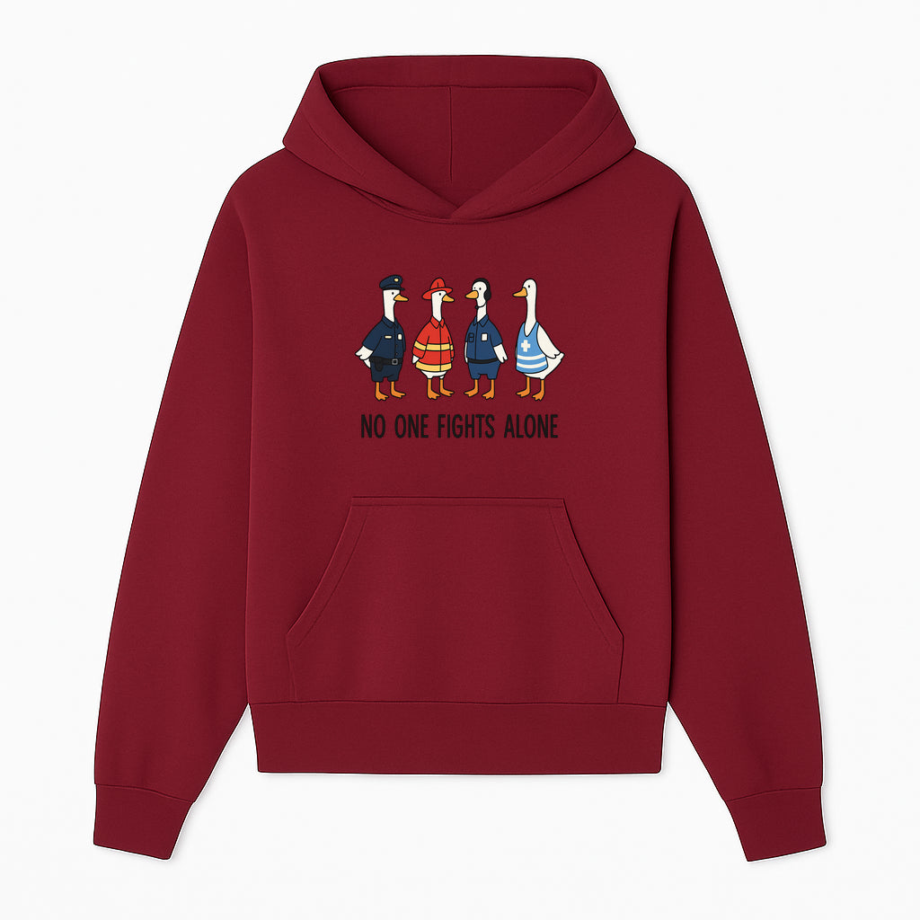 Funny Duck Designs: No One Fights Alone Cop, Firefighter, EMT & Dispatcher Ducks Graphic Tees for Supportive Humor - Hoodie
