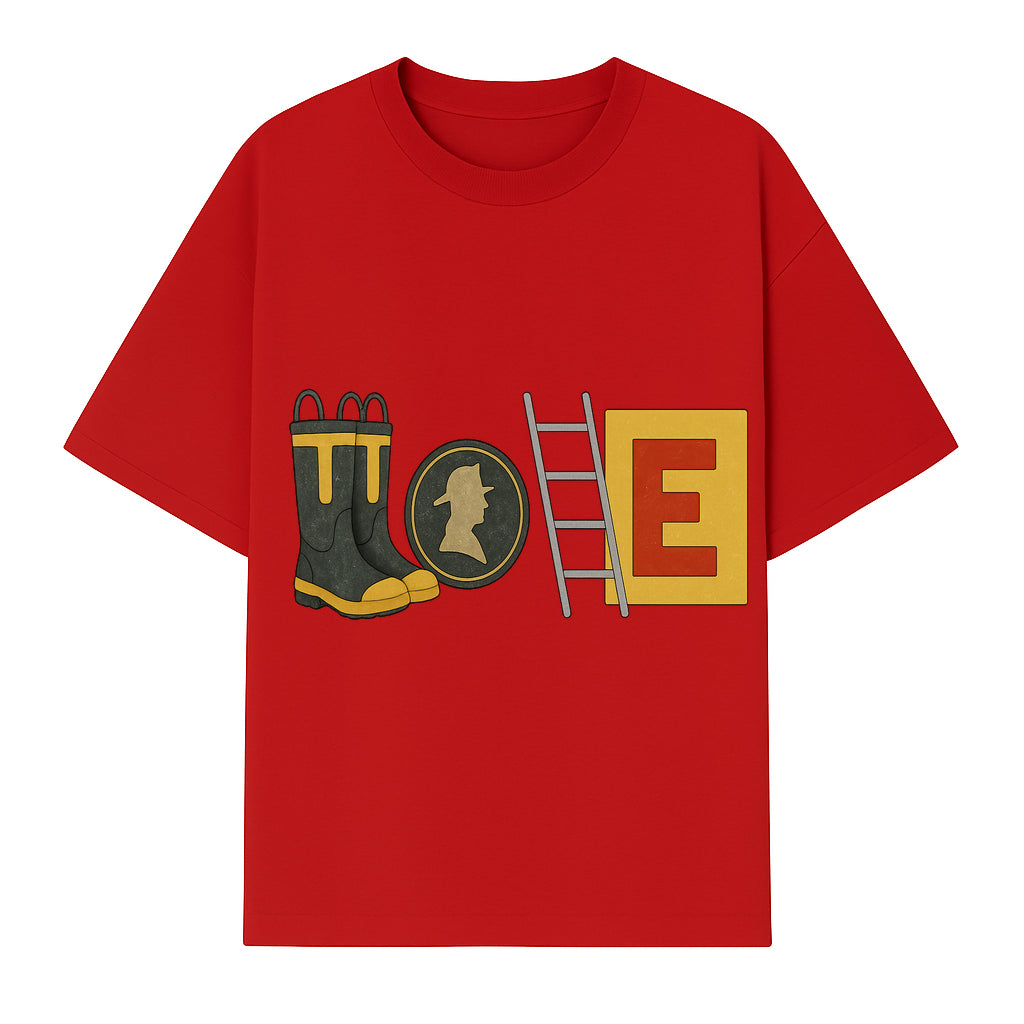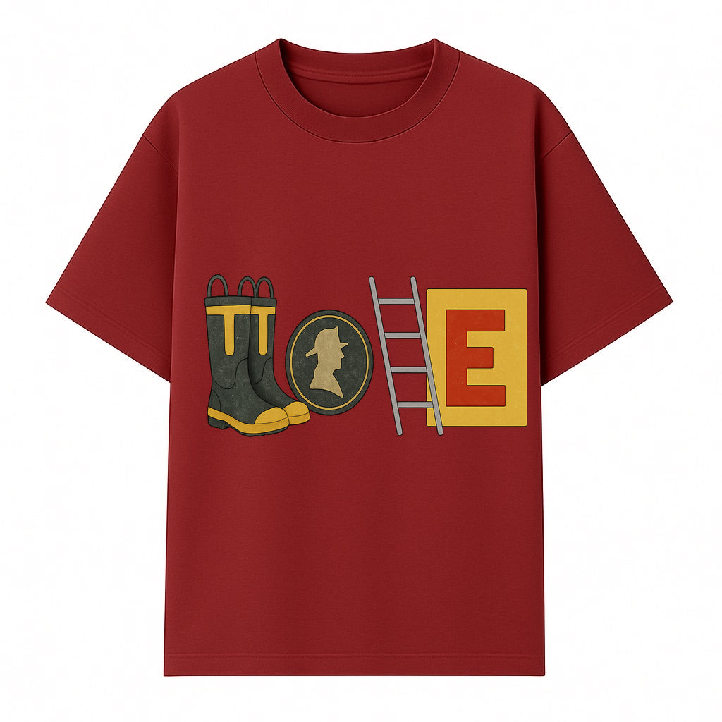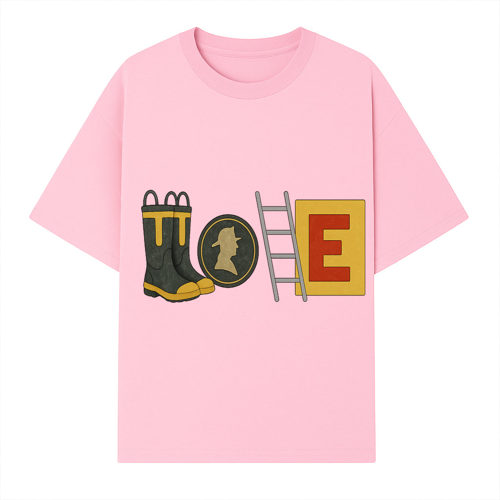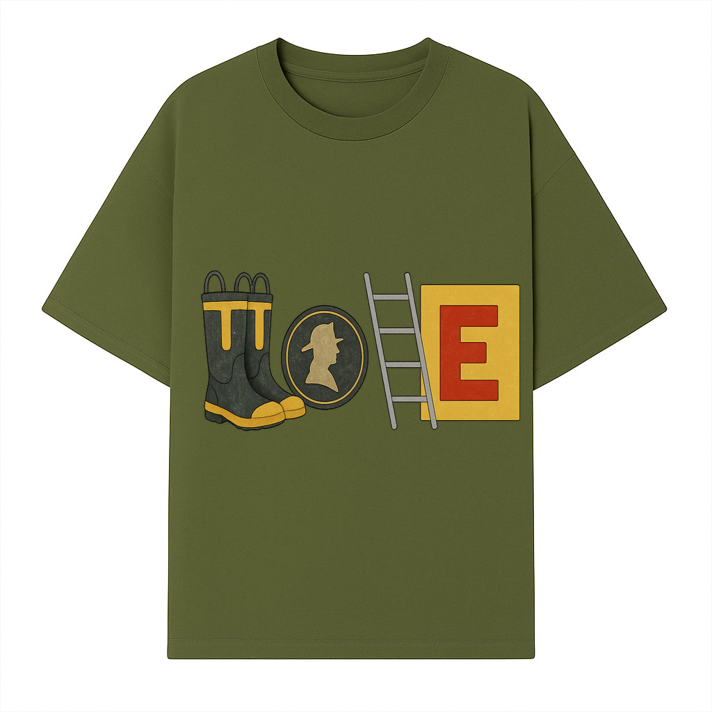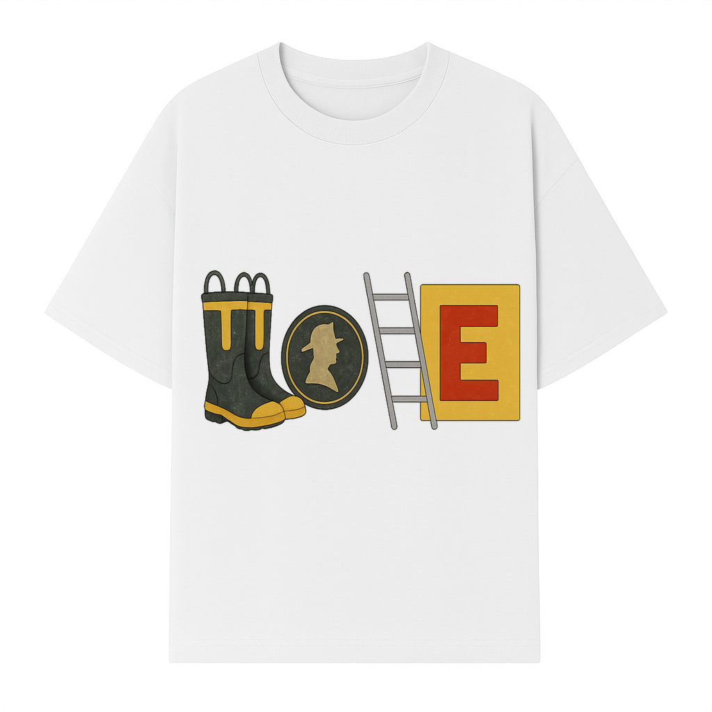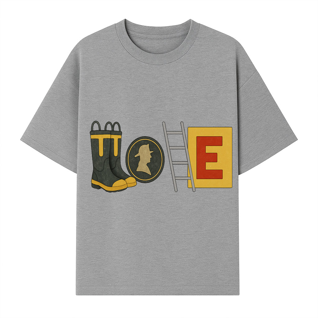 Kids' Detective-Themed Rain Boots with Ladder Icon and E Block - Fun, Stylish, Waterproof Footwear for Adventurous Play - T-shirt