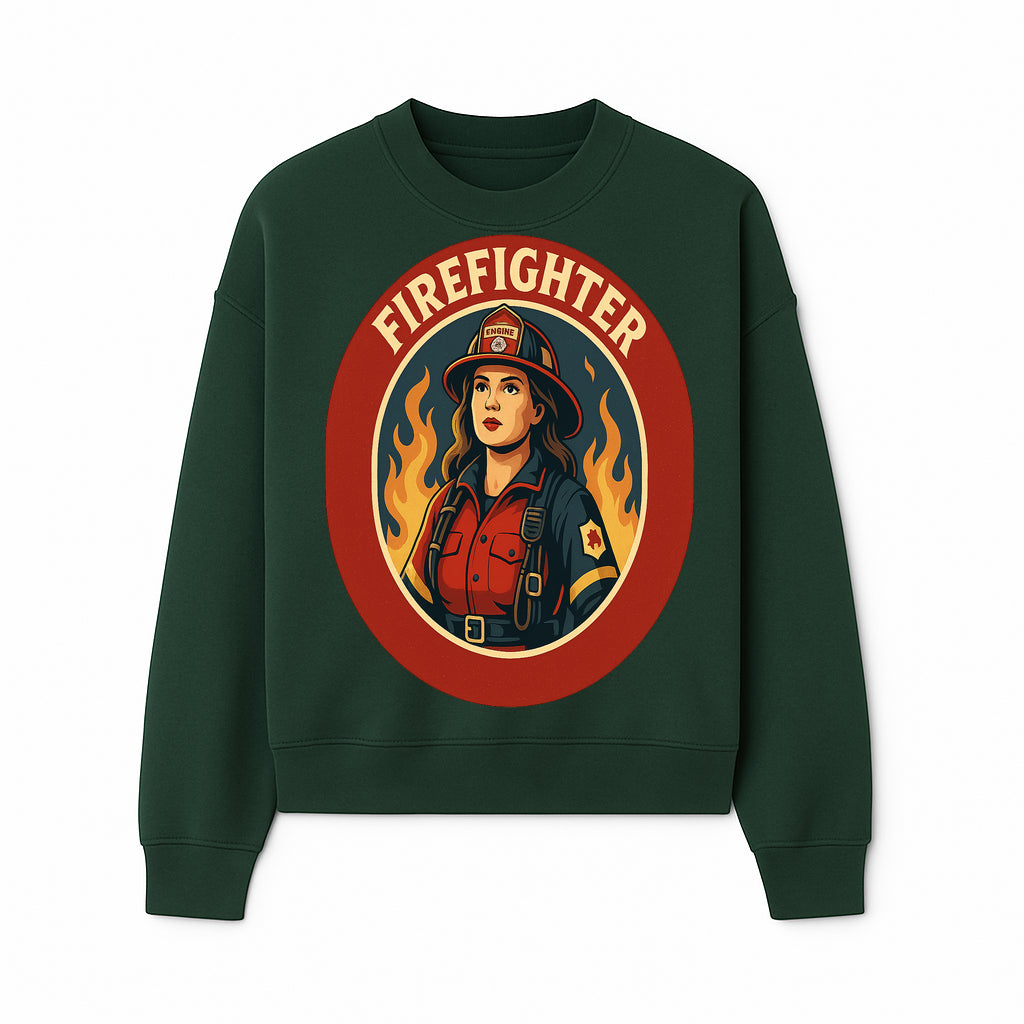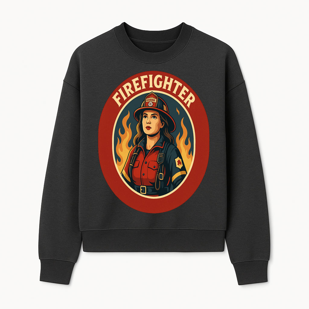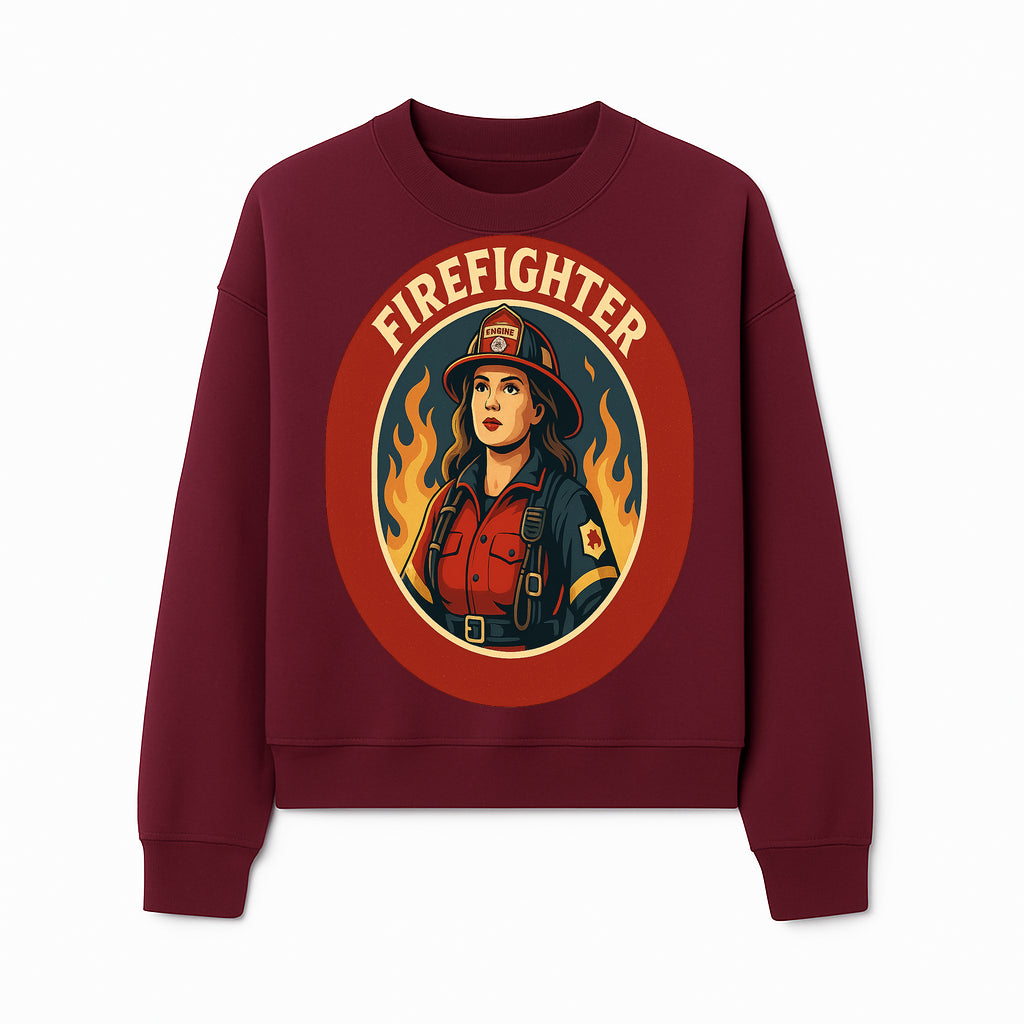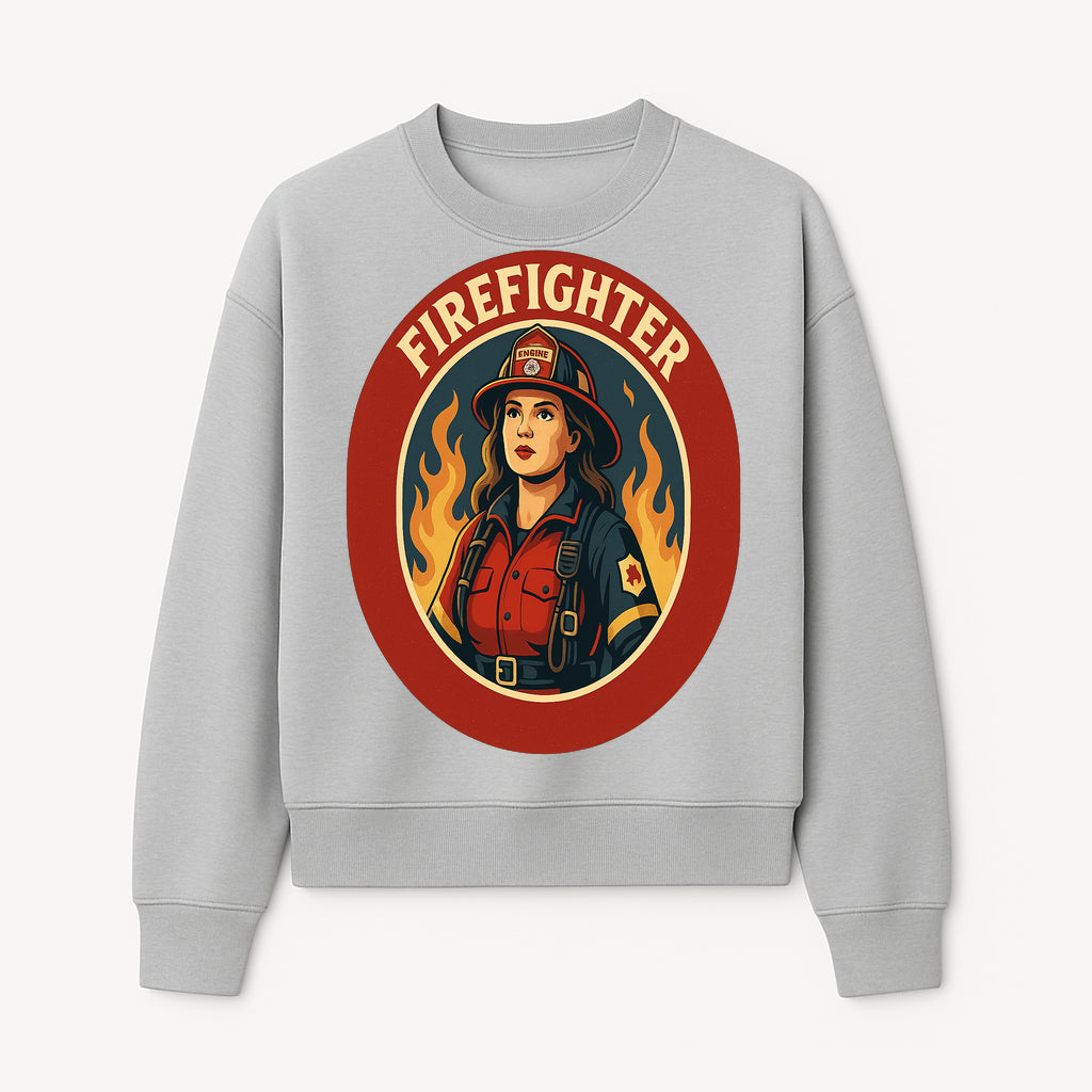 Vintage Firefighter Poster Art | Firewoman Illustration | Firefighter Gift | Bold Flame Design | Heroic Firefighter Wall Art - Sweatshirt