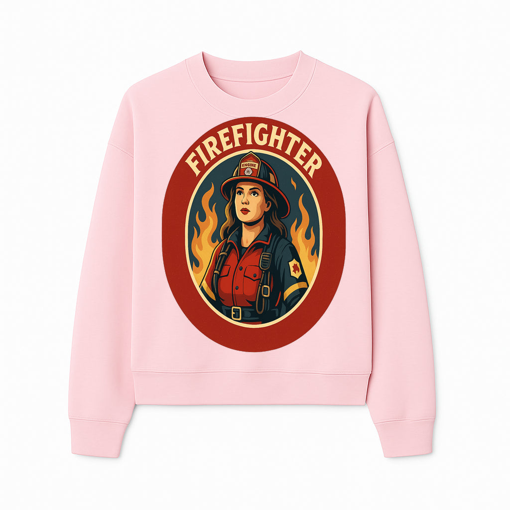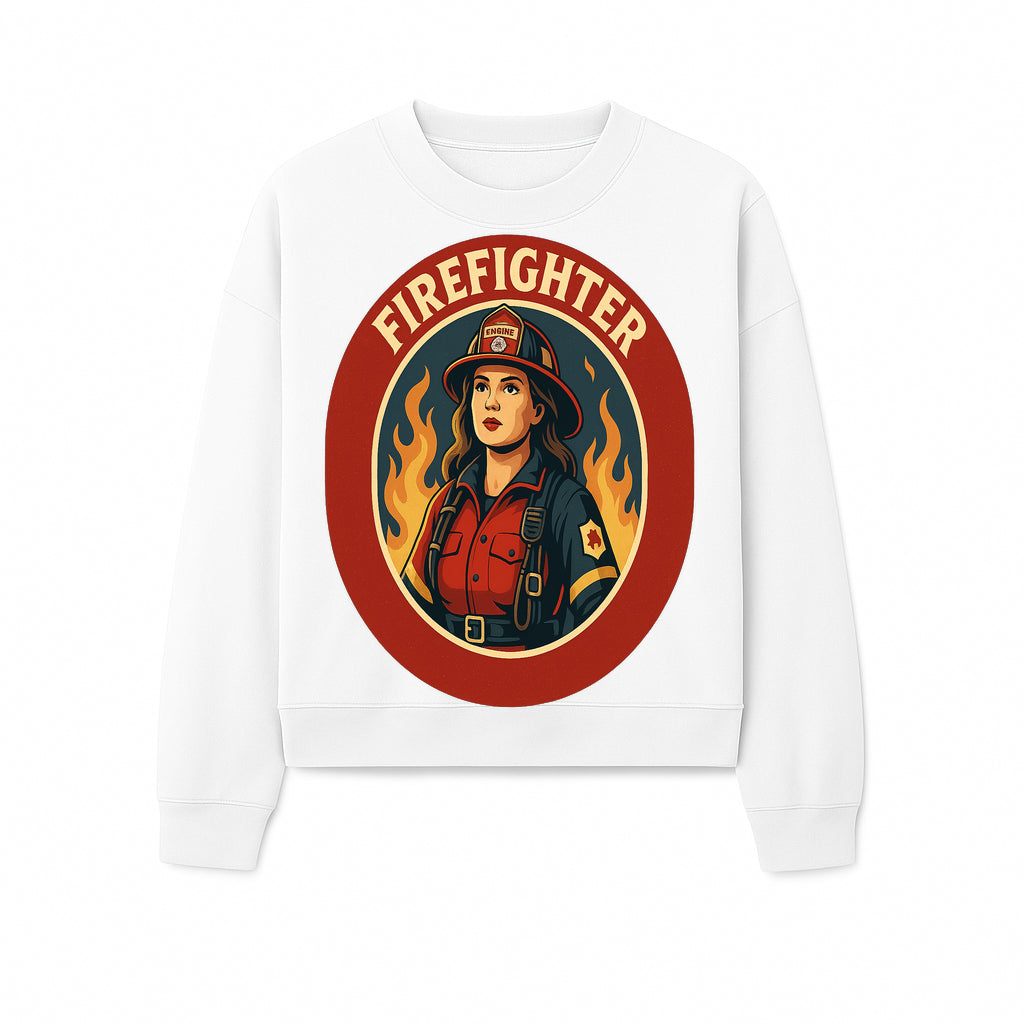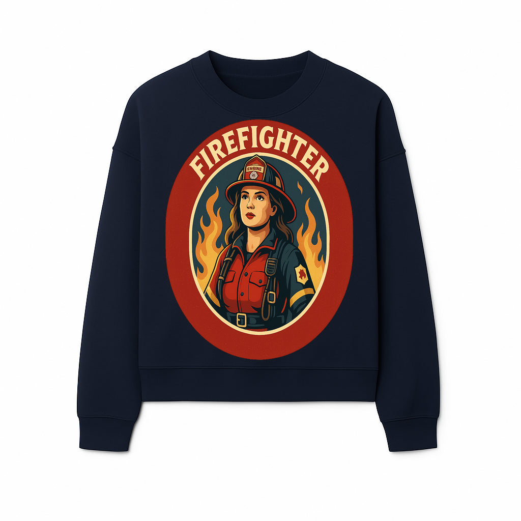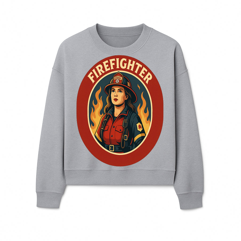 Vintage Firefighter Poster Art | Firewoman Illustration | Firefighter Gift | Bold Flame Design | Heroic Firefighter Wall Art - Sweatshirt