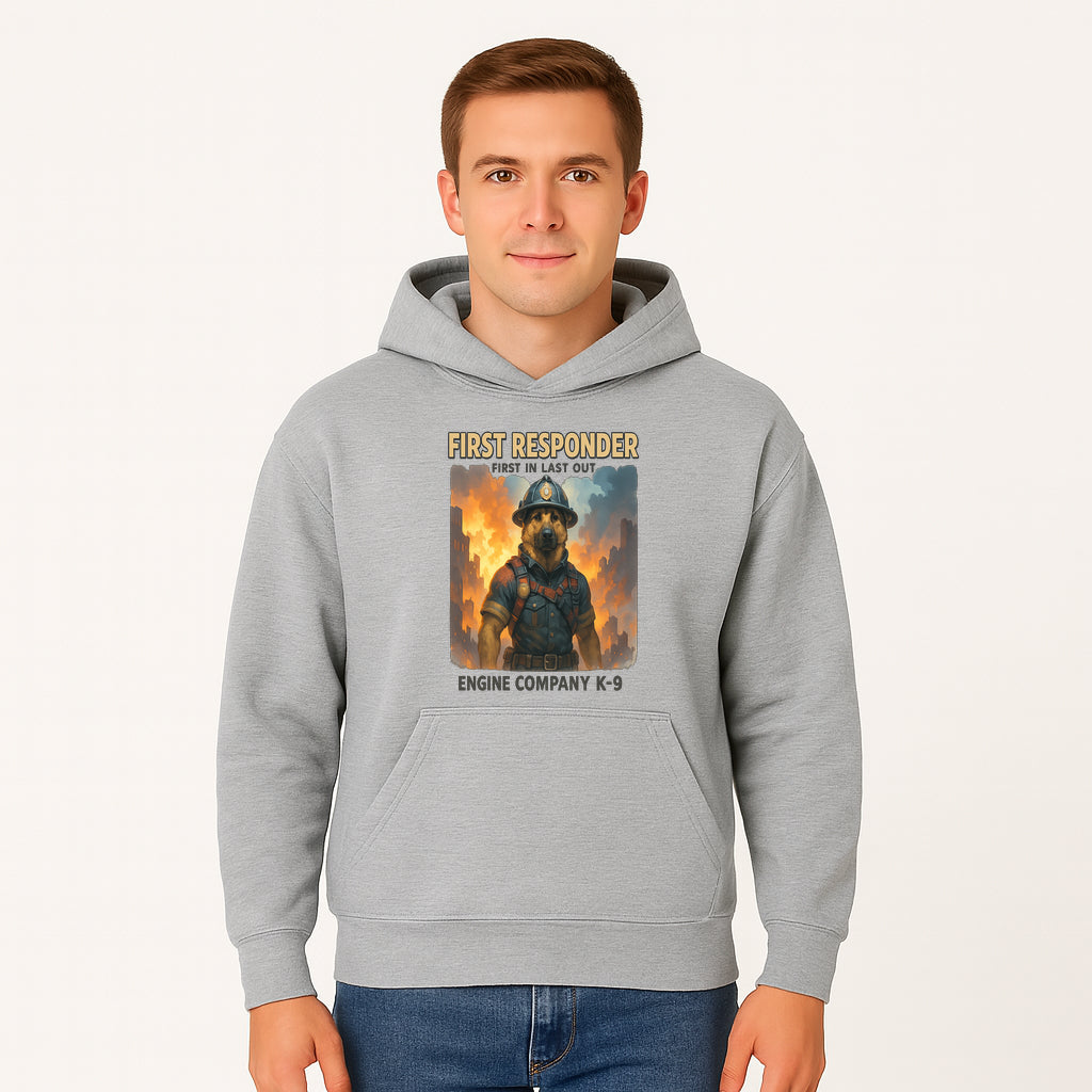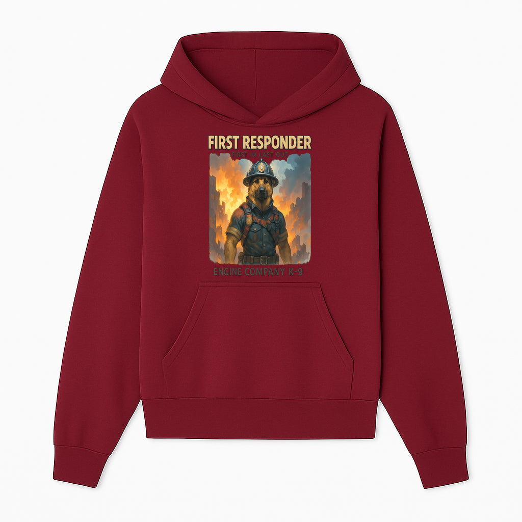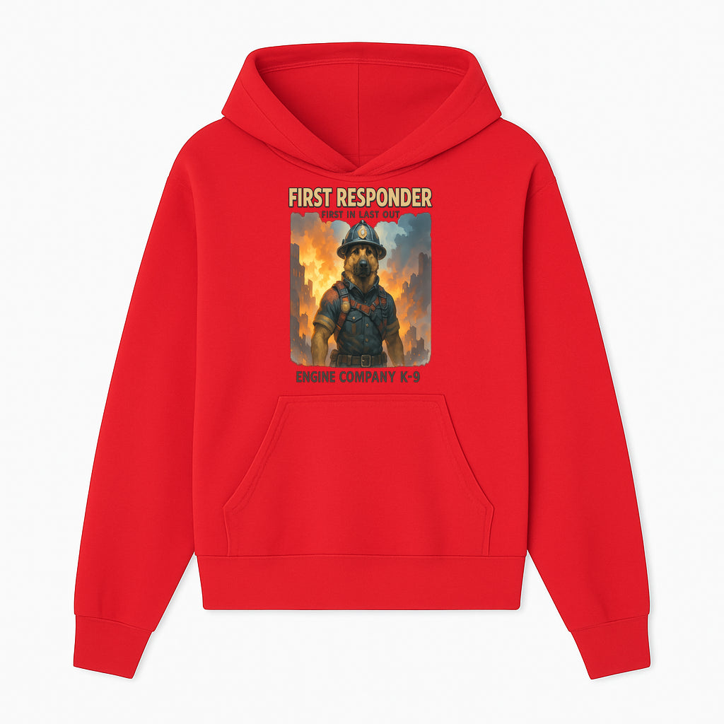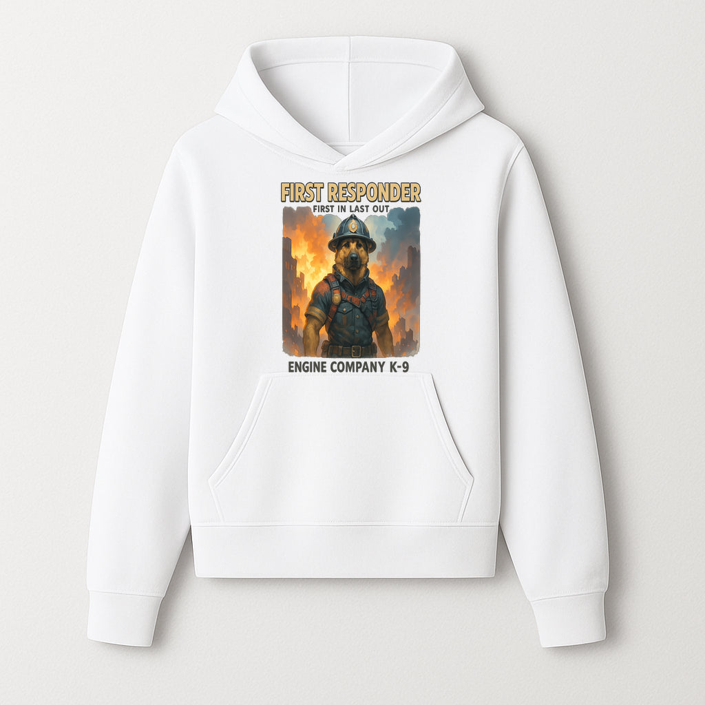 Dog Firefighter First Responder K-9 Engine Company Art Print, Unique Fireman Decor for Dog Lovers and First Responder Fans - Hoodie