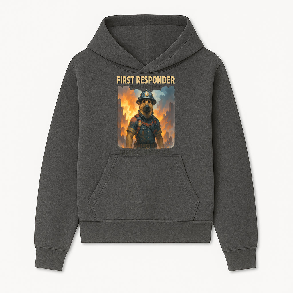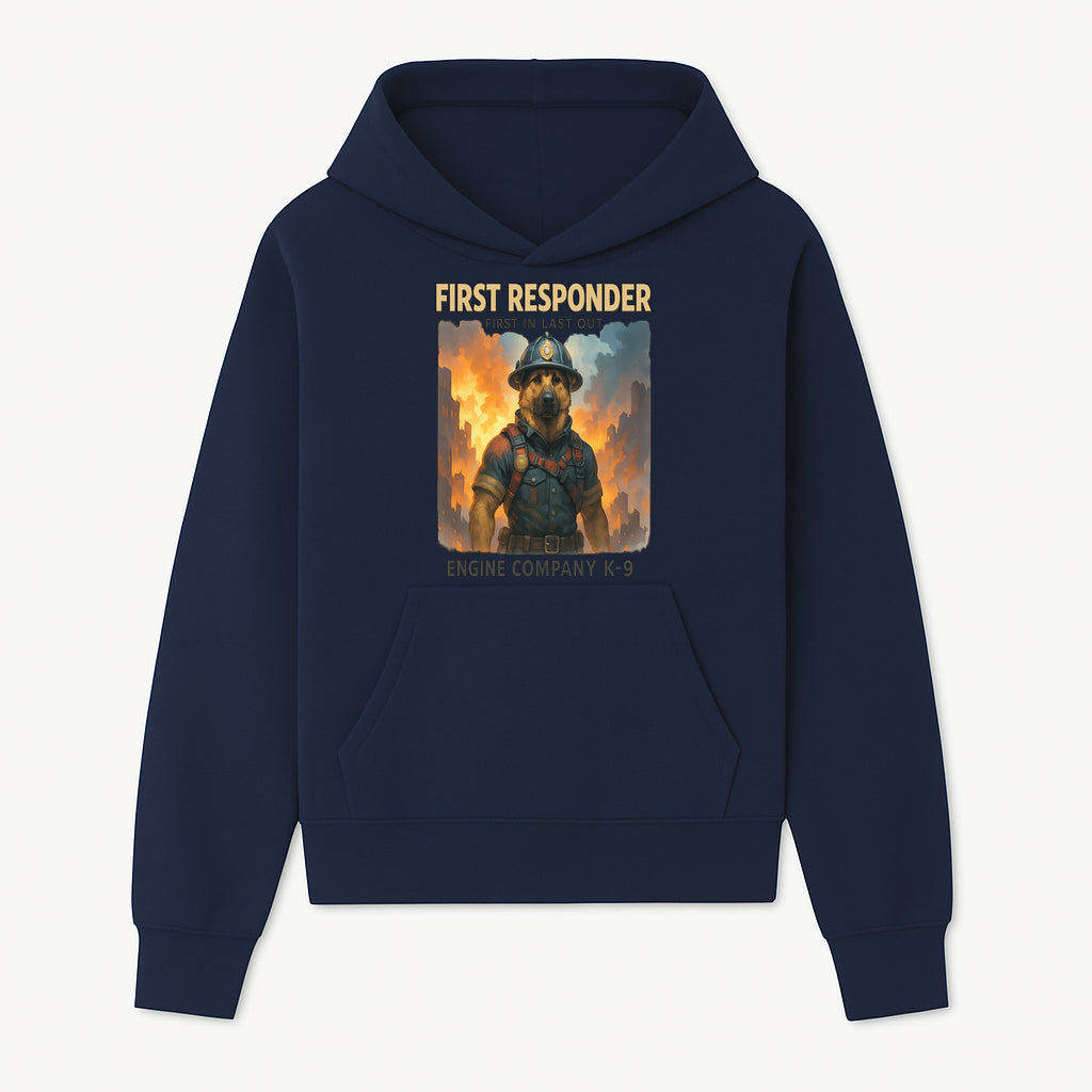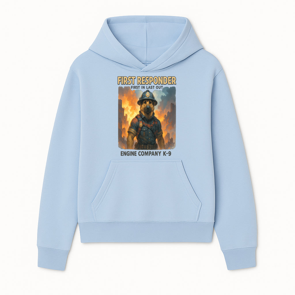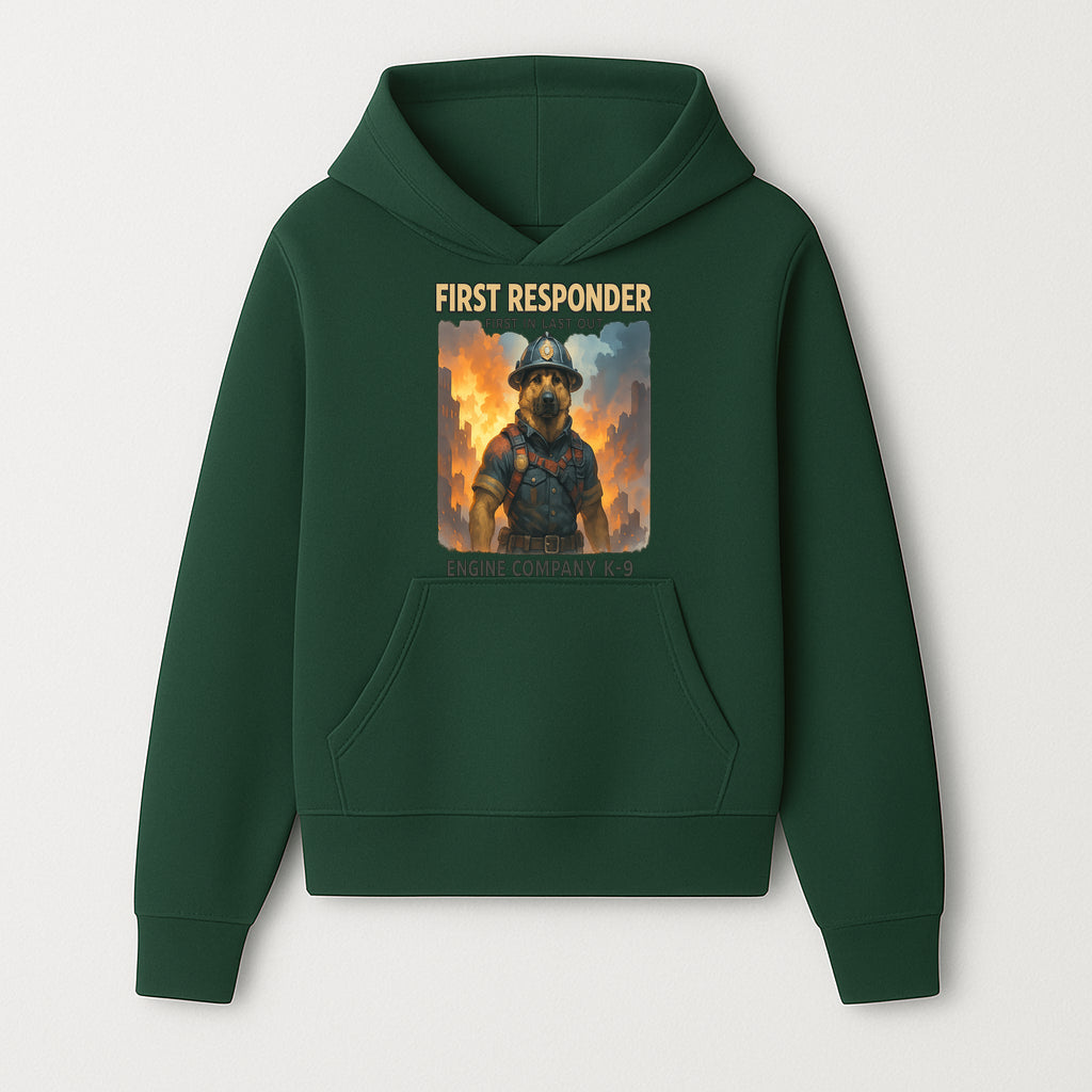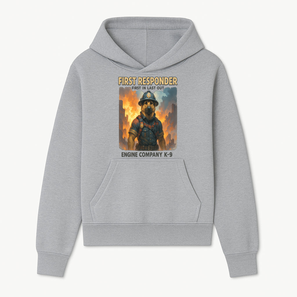 Dog Firefighter First Responder K-9 Engine Company Art Print, Unique Fireman Decor for Dog Lovers and First Responder Fans - Hoodie