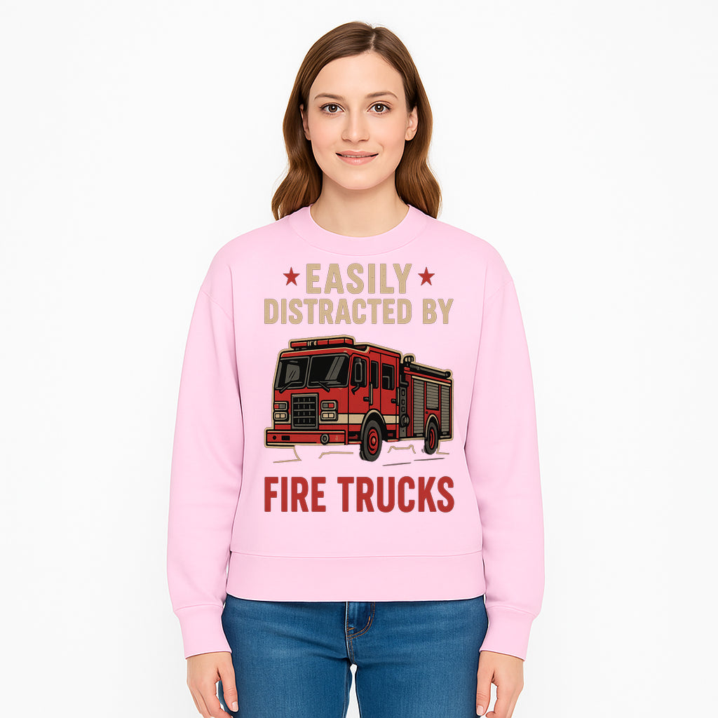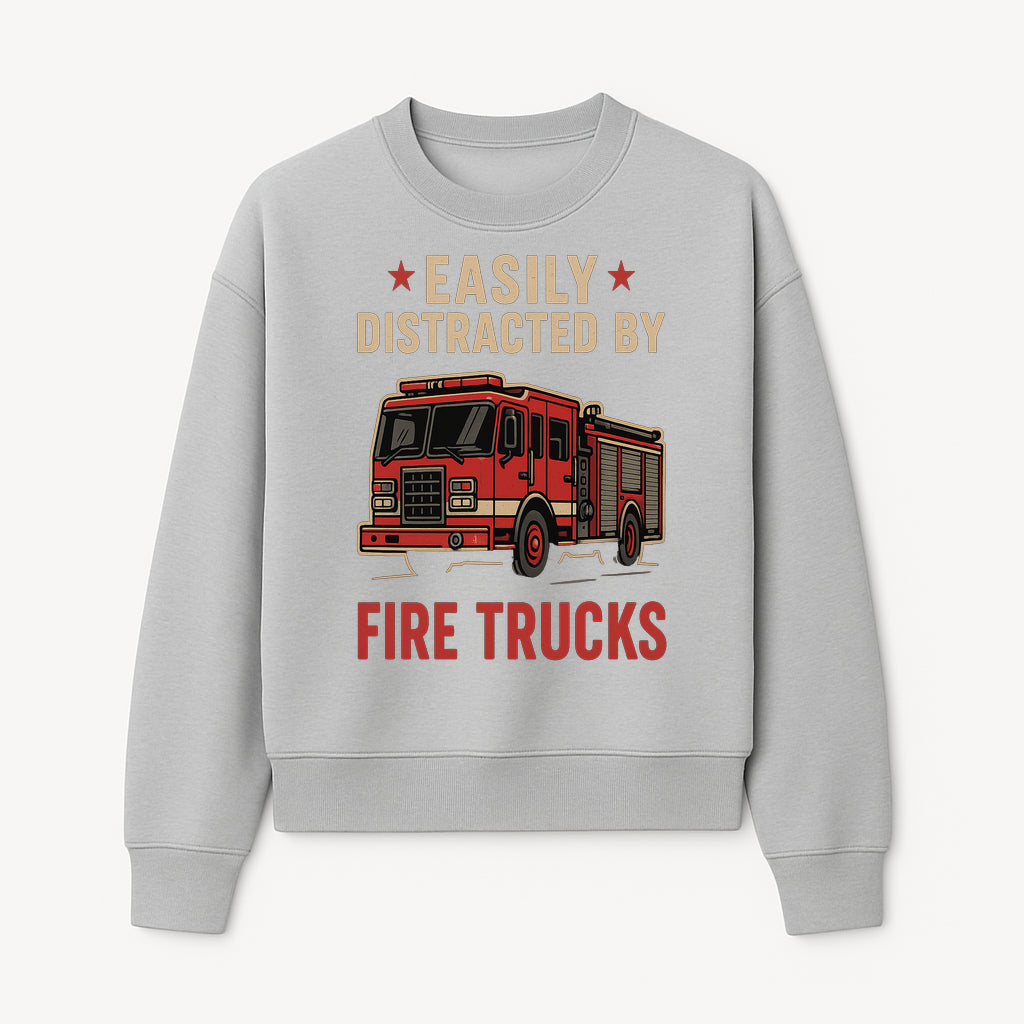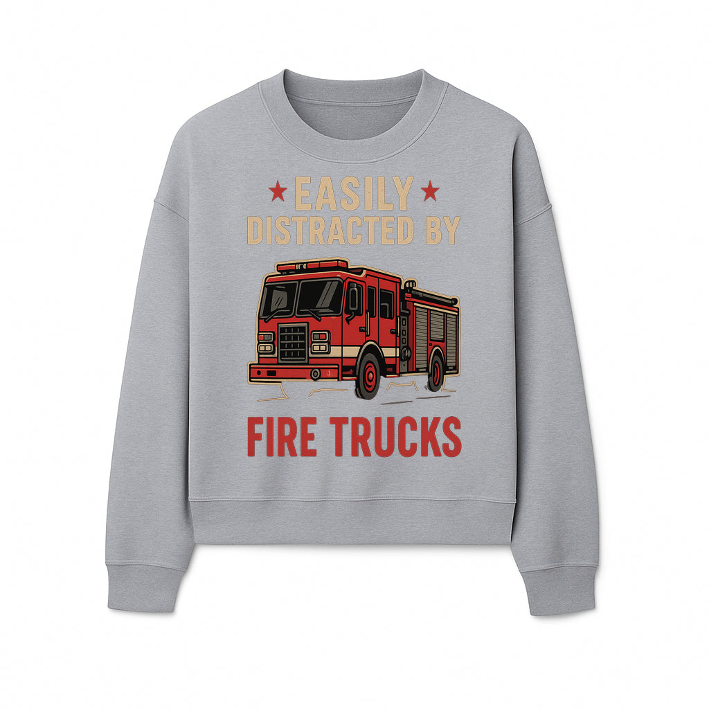 Easily Distracted by Fire Trucks Retro Graphic Tee | Firefighter Enthusiast Shirt | Fun Casual Wear - Sweatshirt