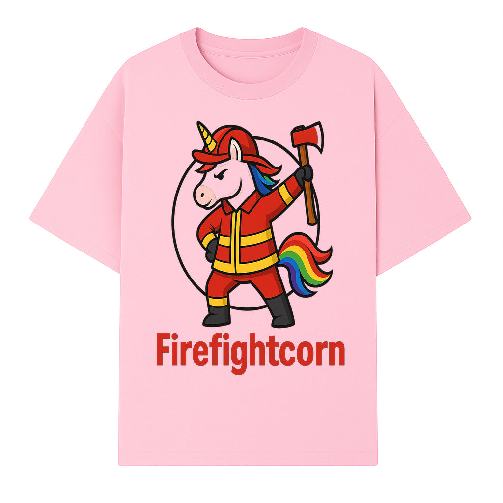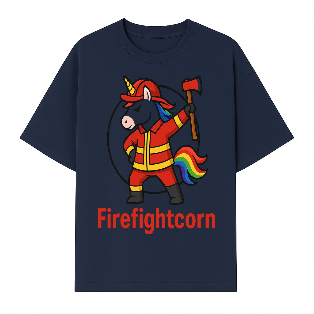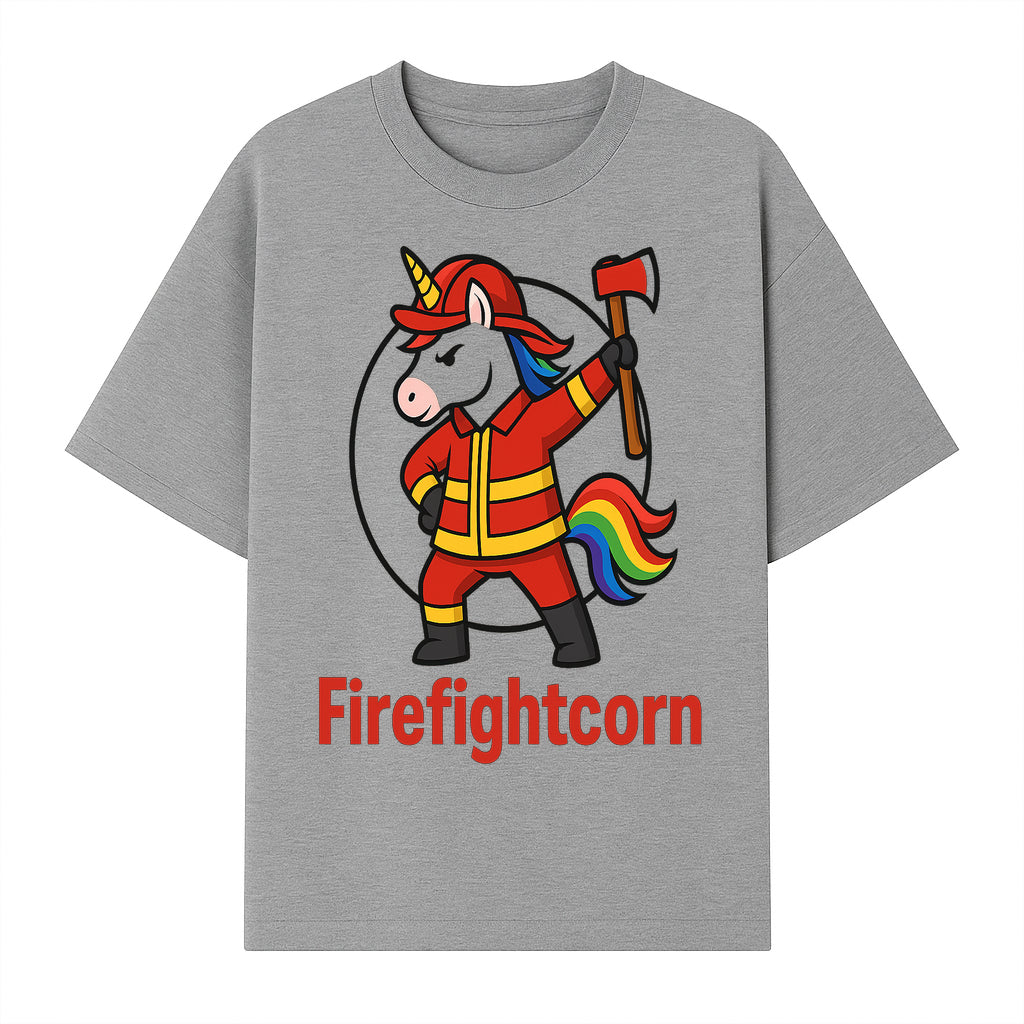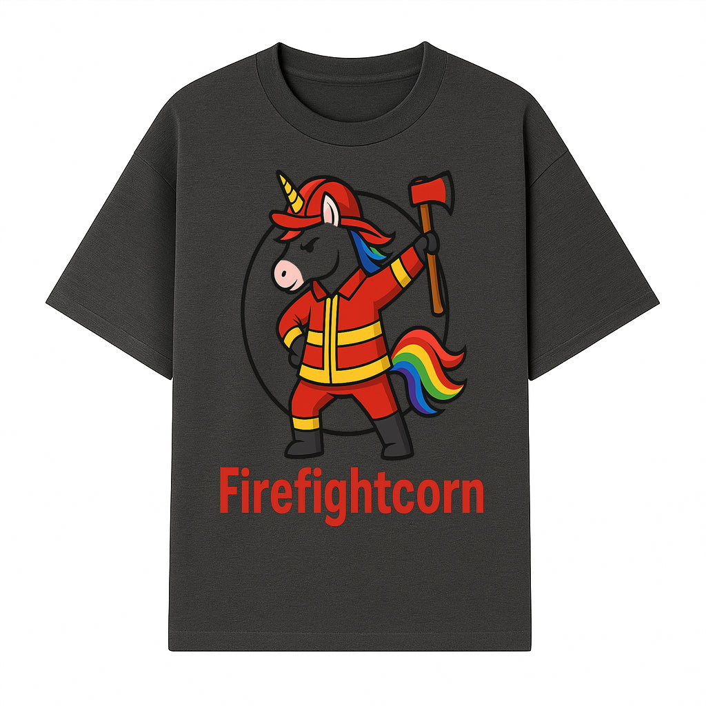 Firefightcorn Unicorn Hero T-Shirt | Cute Firefighter Graphic Tee | Rainbow Mane Casual Wear for Kids & Adults - T-shirt
