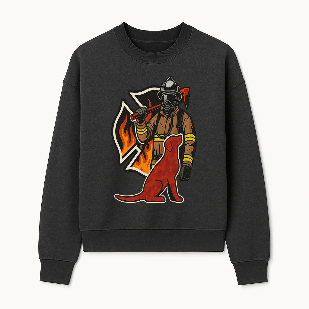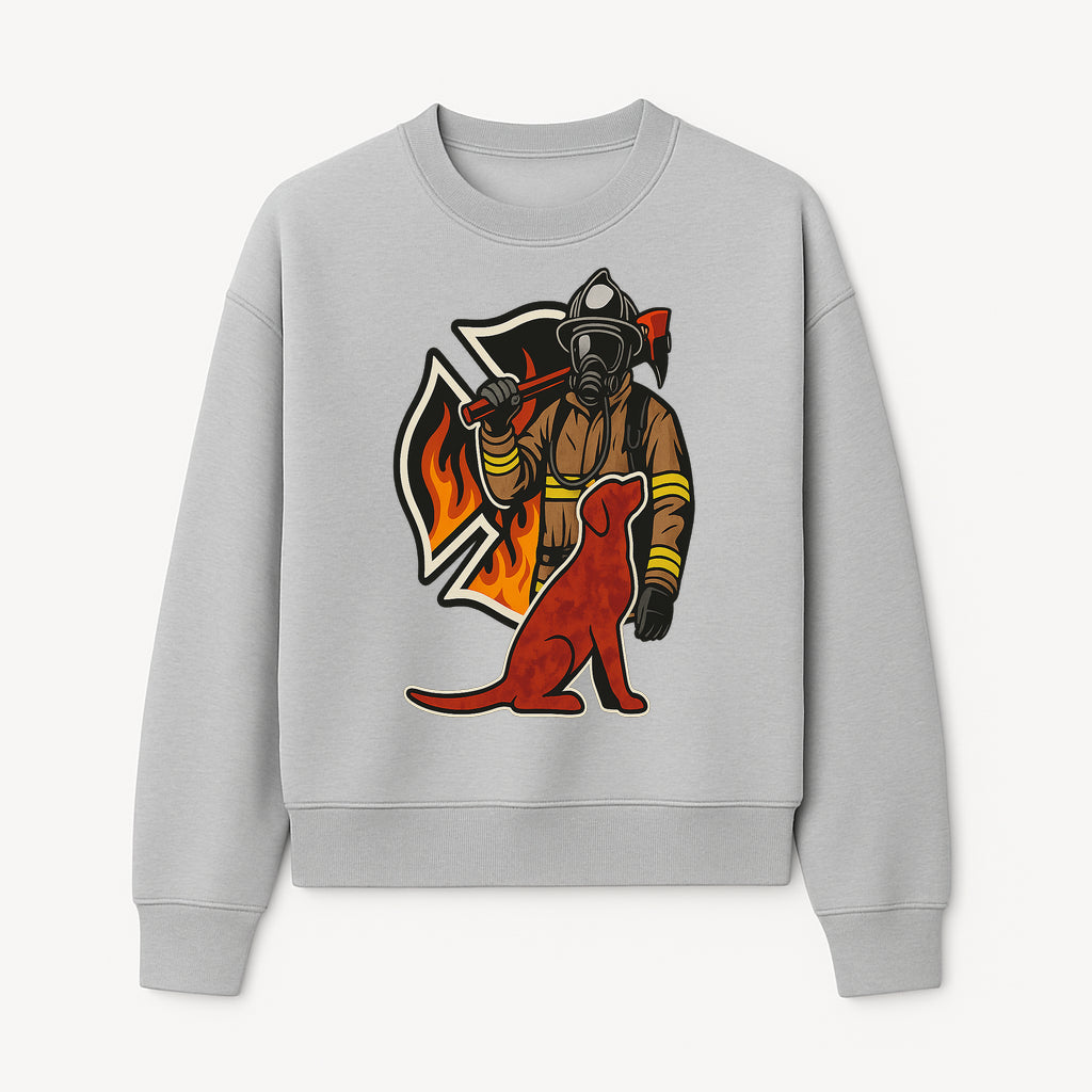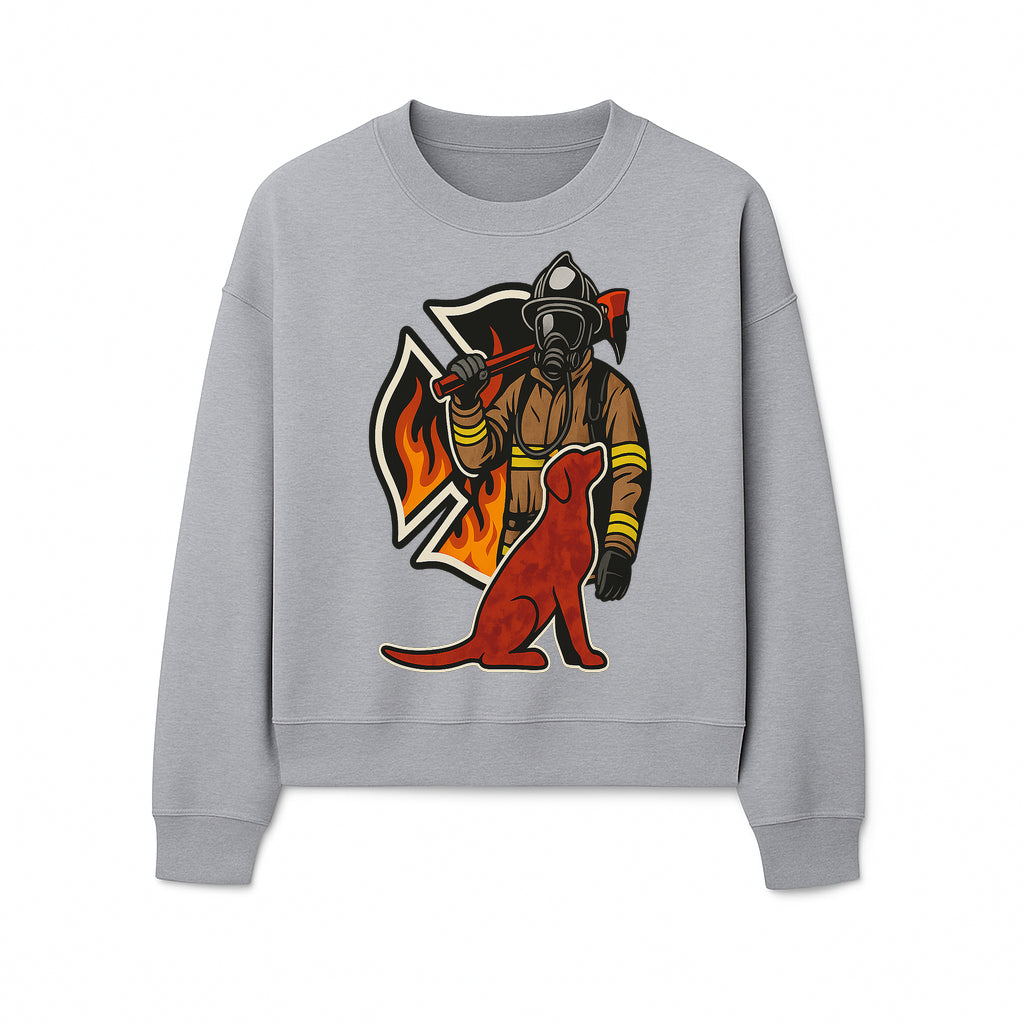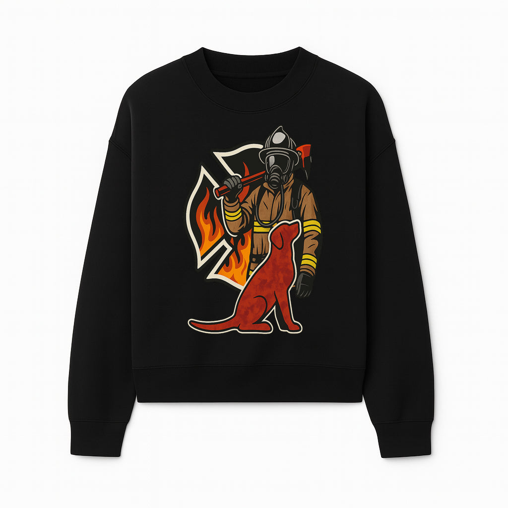 Firefighter and Dog Graphic Art | Fire Rescue Hero Design | Fireman with Mascot | Firefighting Gifts | Wall Art Decor - Sweatshirt