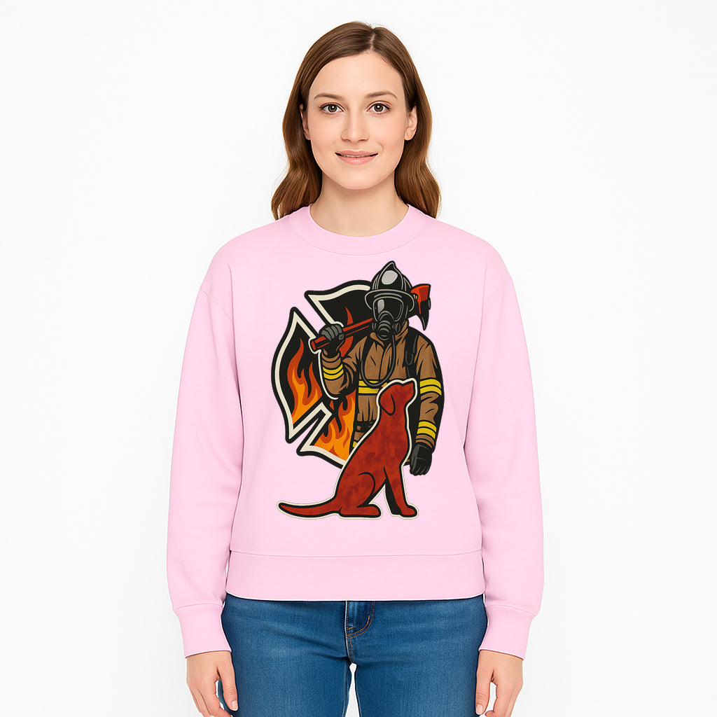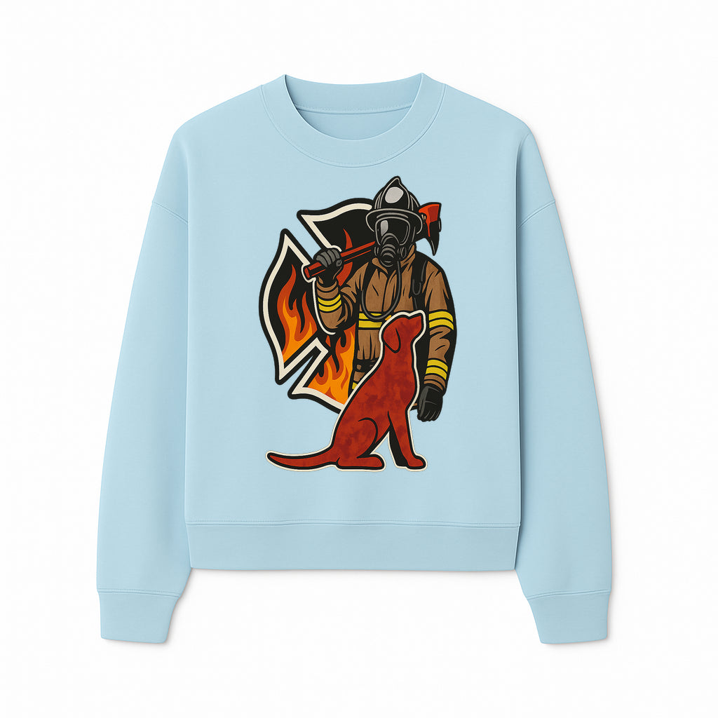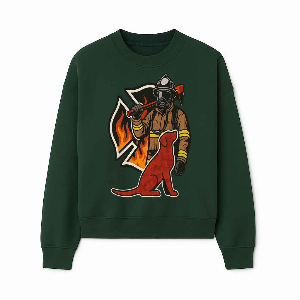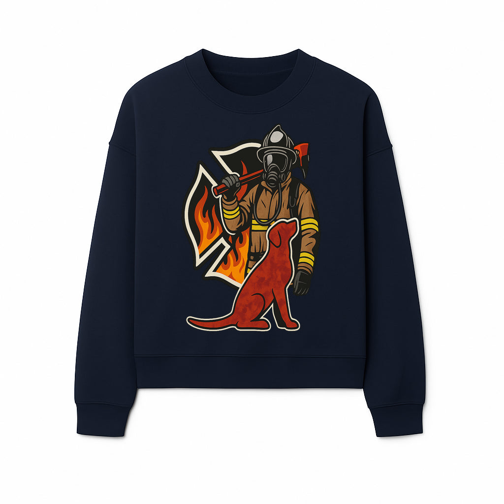 Firefighter and Dog Graphic Art | Fire Rescue Hero Design | Fireman with Mascot | Firefighting Gifts | Wall Art Decor - Sweatshirt