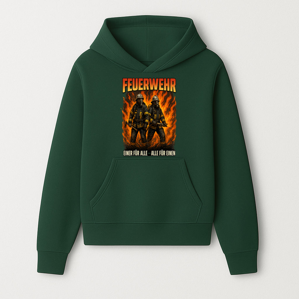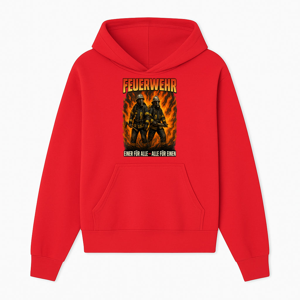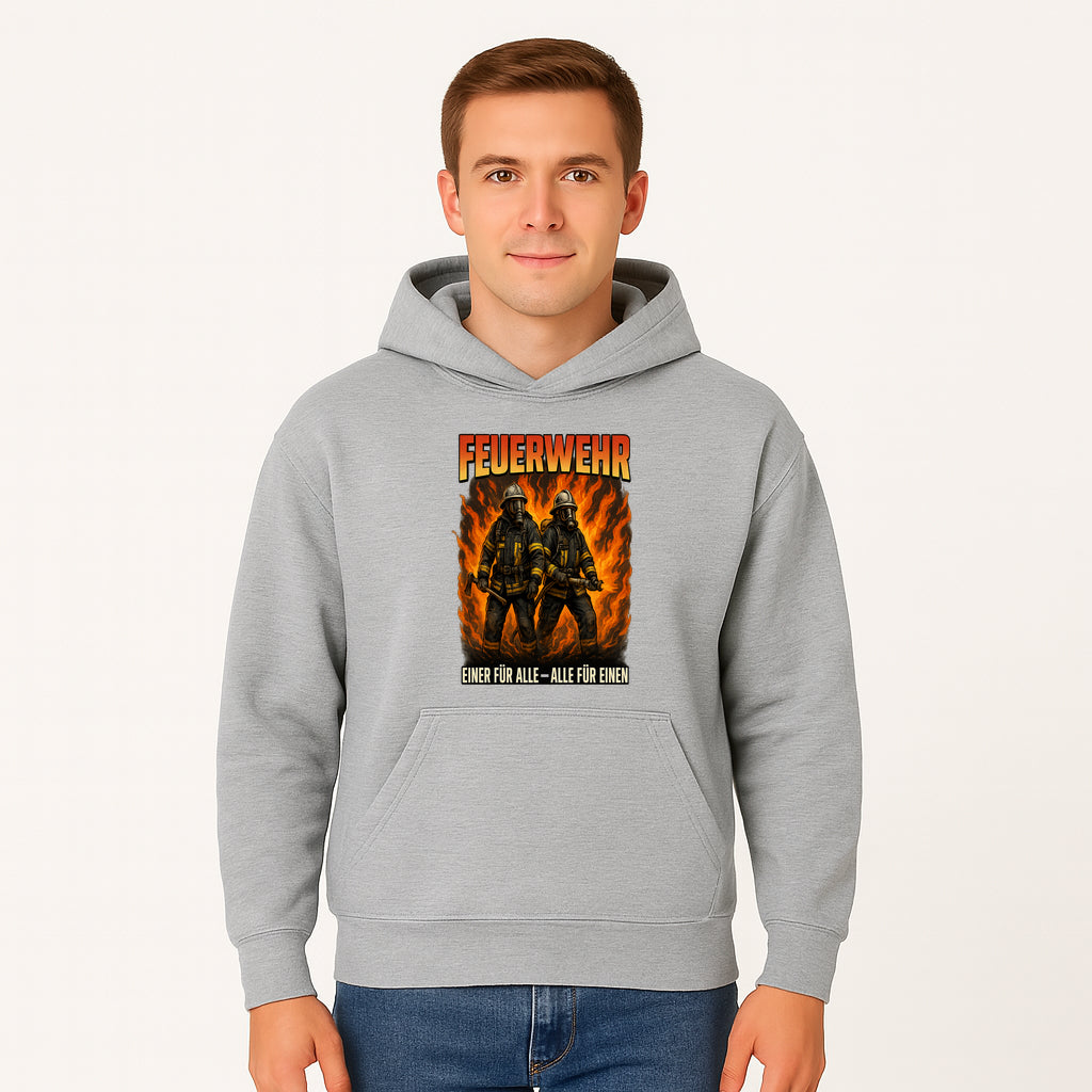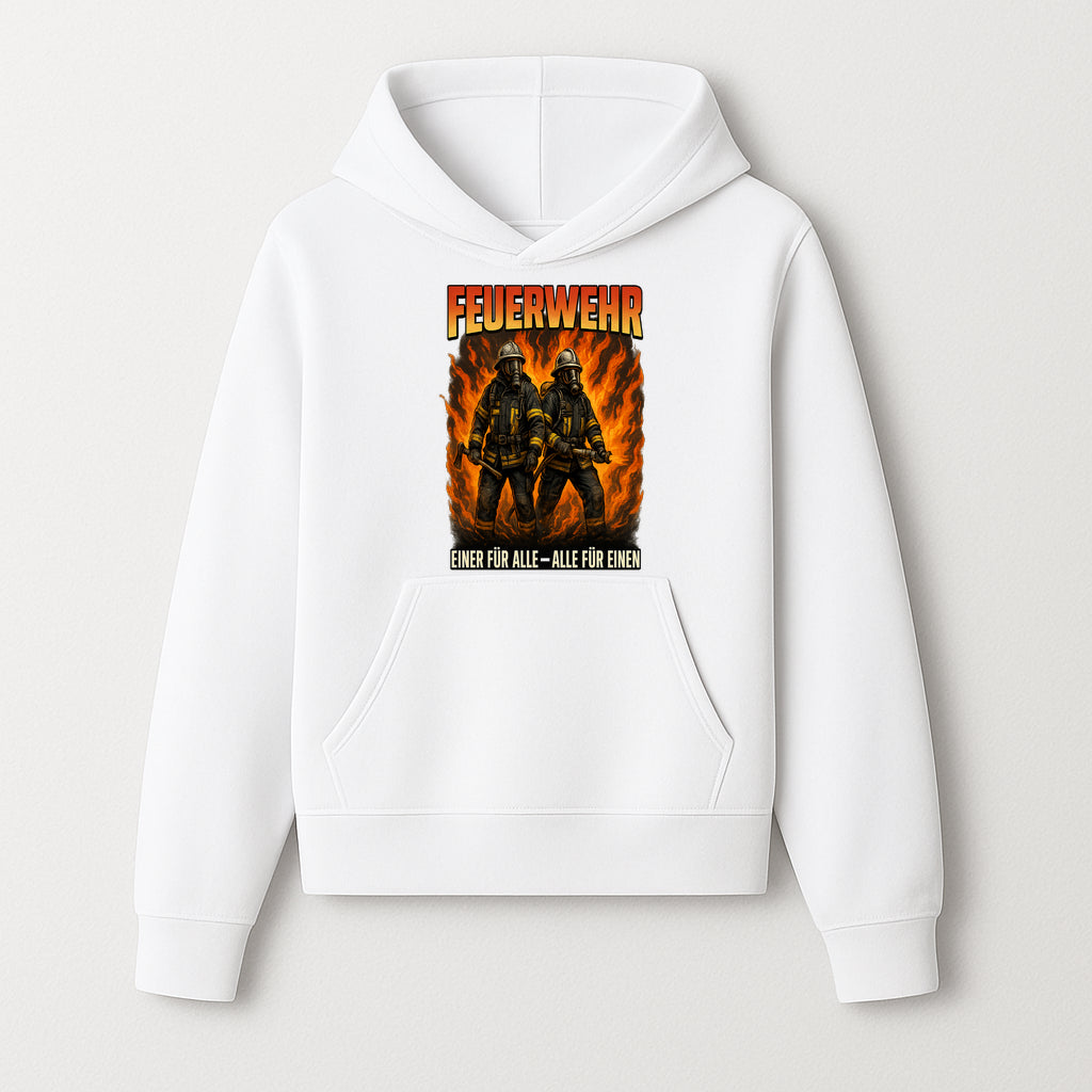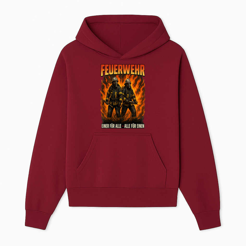 Firefighter Art Print - Feuerwehr Graphic, Heroic Firemen Design, One for All, All for One, Wall Decor, Firefighter Gift Idea - Hoodie