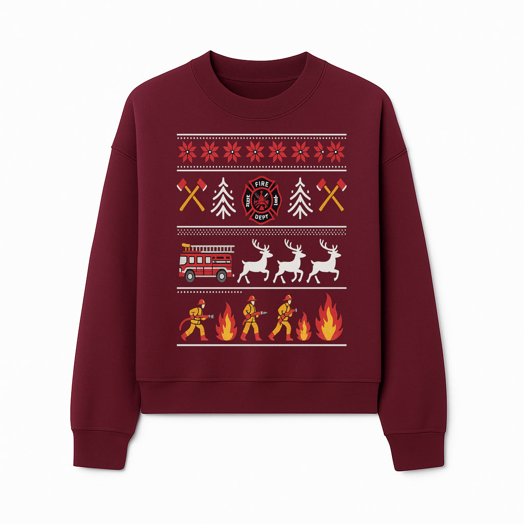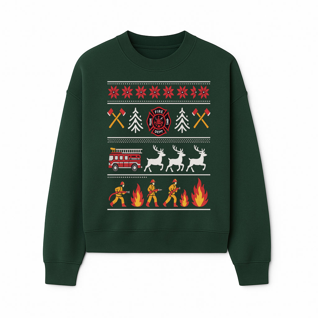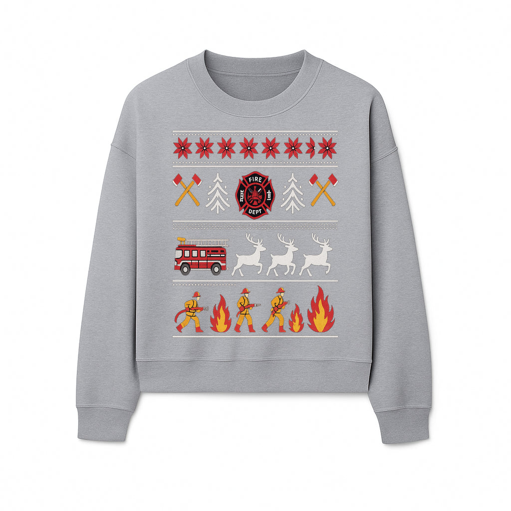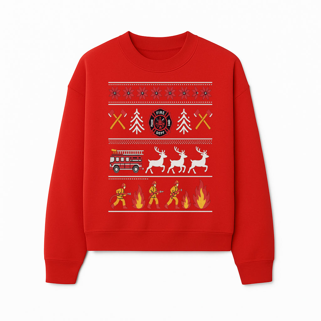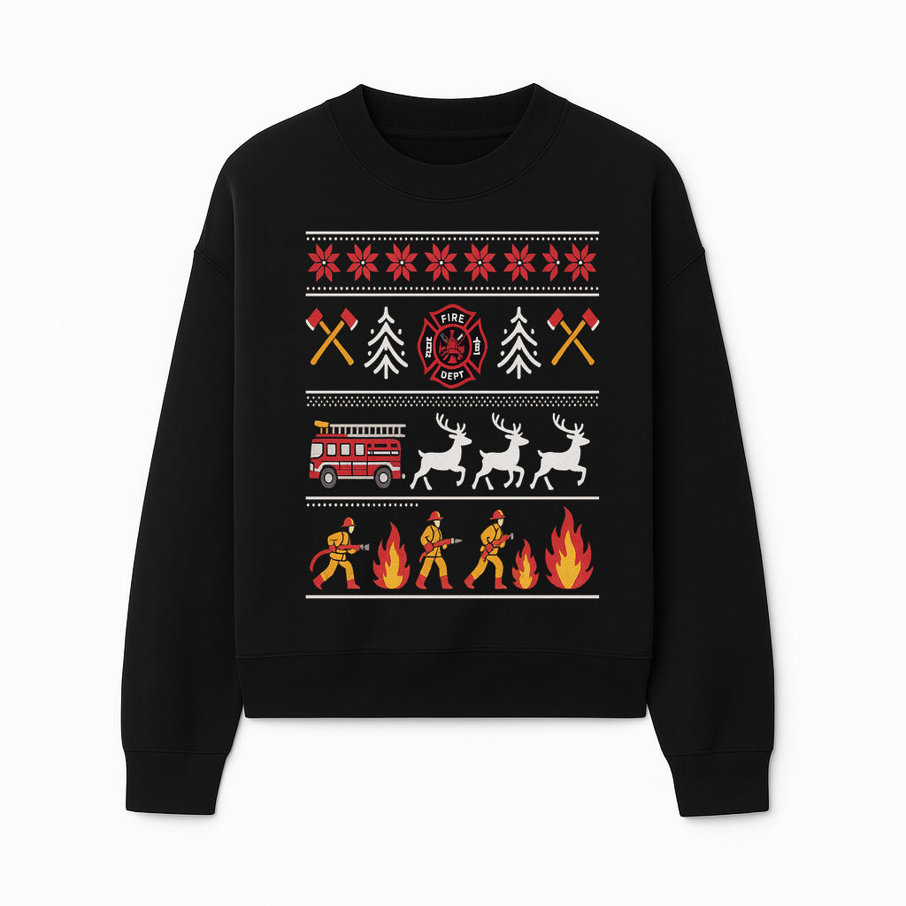 Firefighter Christmas Decor - Fire Department Theme with Fire Truck, Reindeer, Firemen, and Holiday Patterns for Festive Home Decor - Sweatshirt