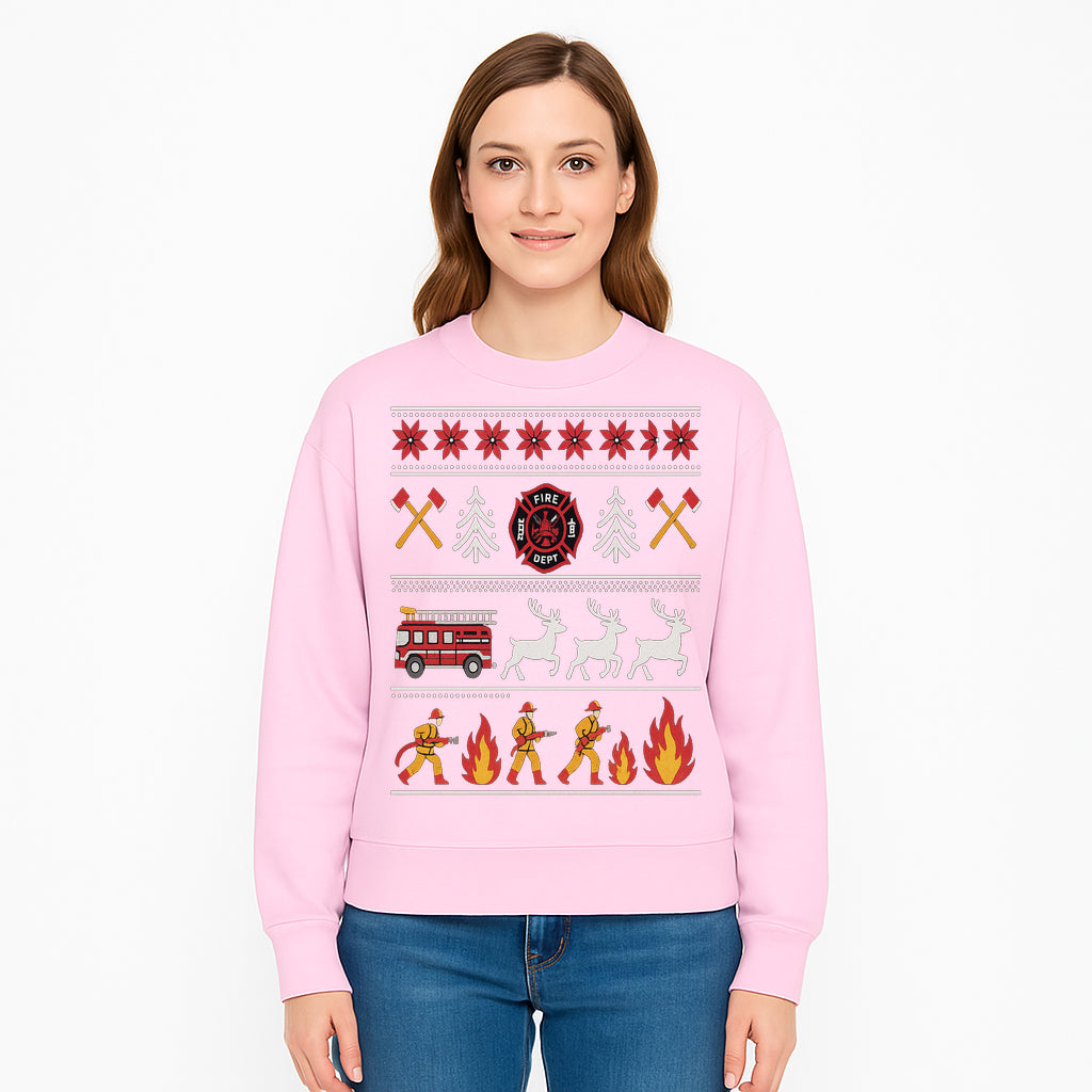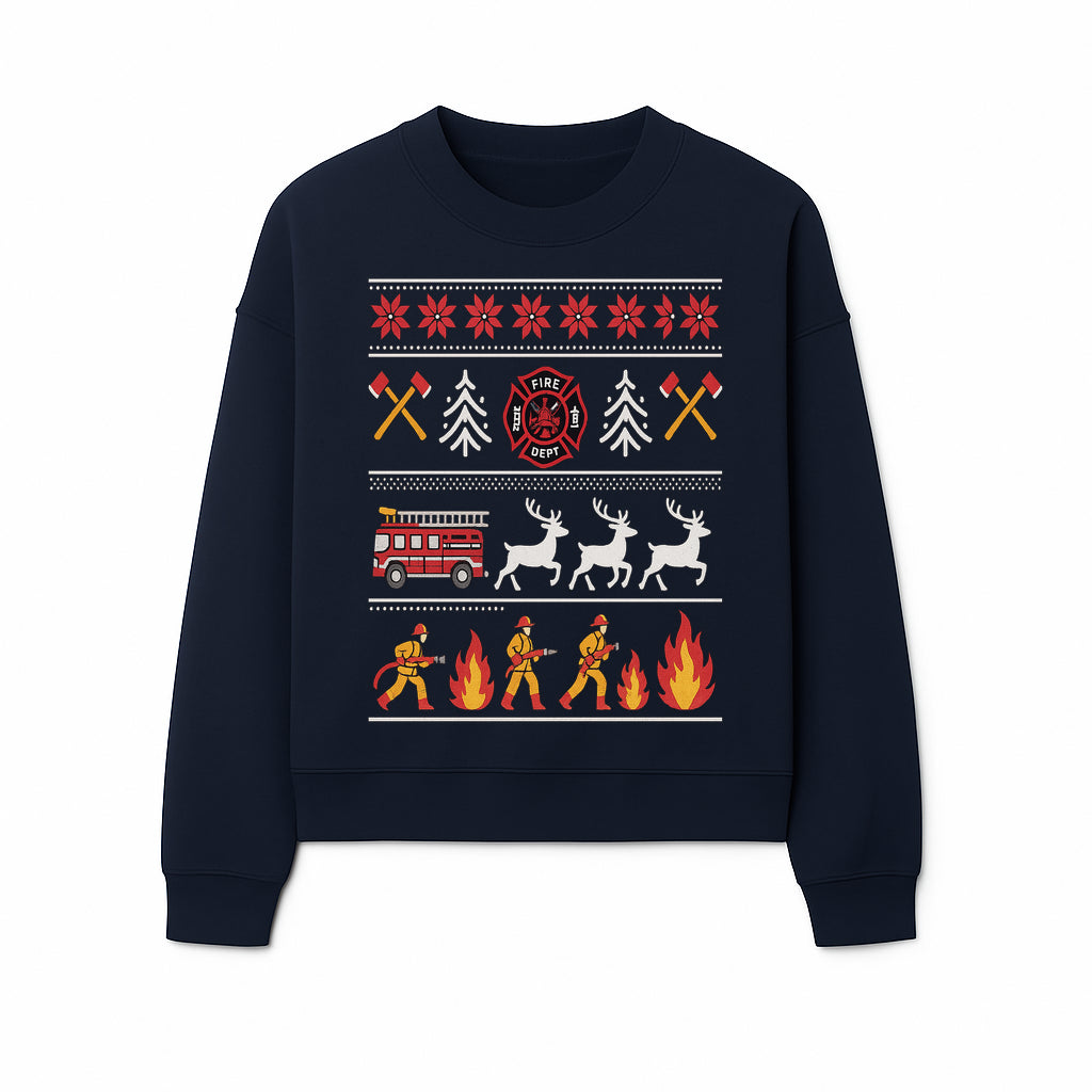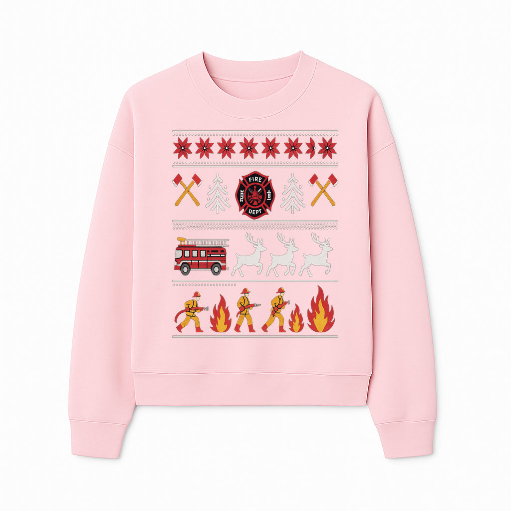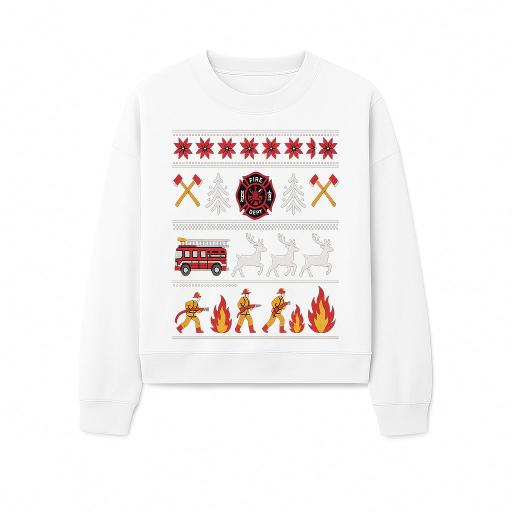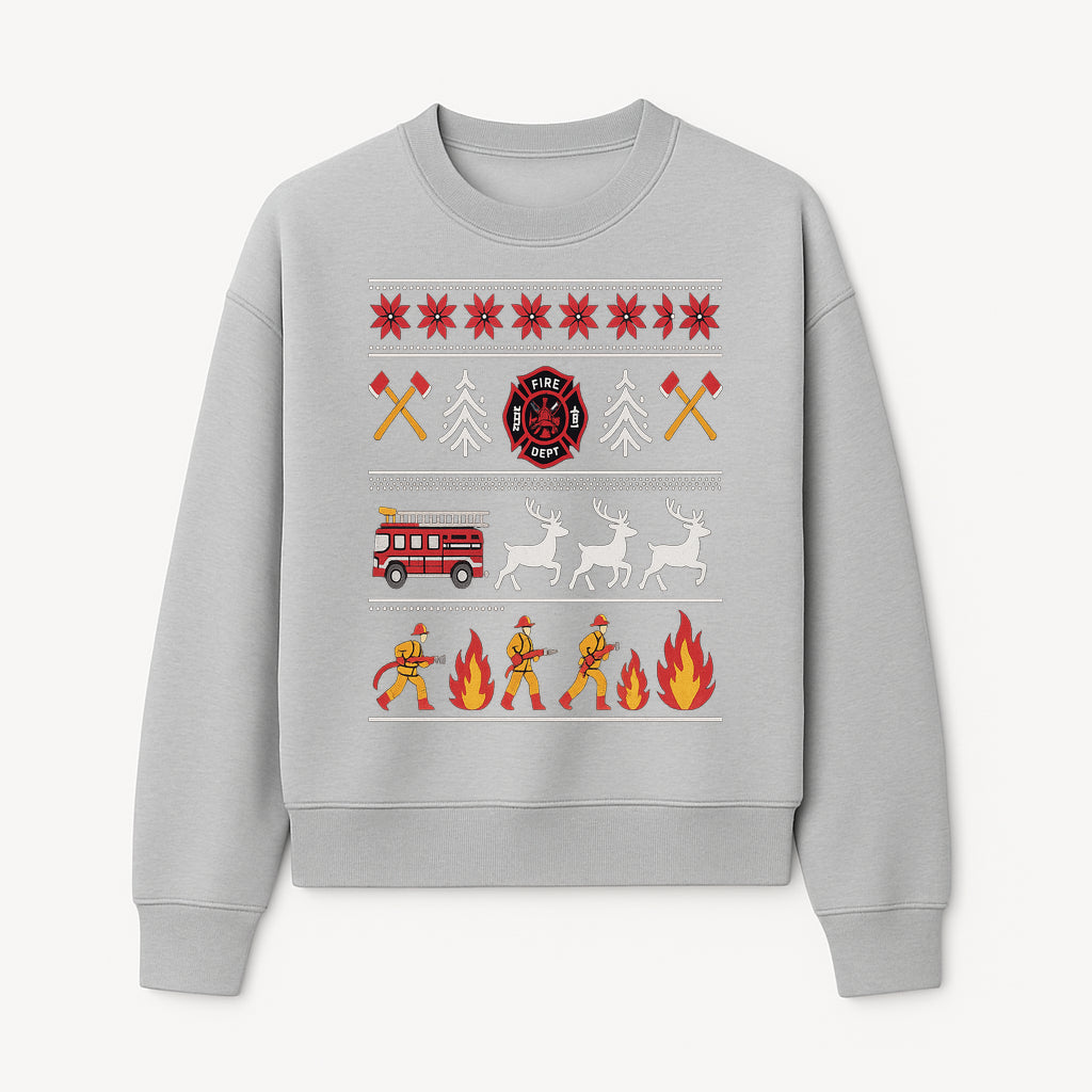 Firefighter Christmas Decor - Fire Department Theme with Fire Truck, Reindeer, Firemen, and Holiday Patterns for Festive Home Decor - Sweatshirt