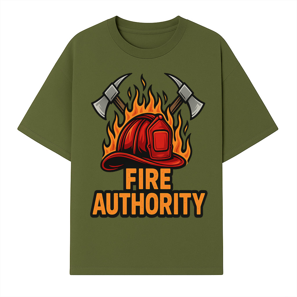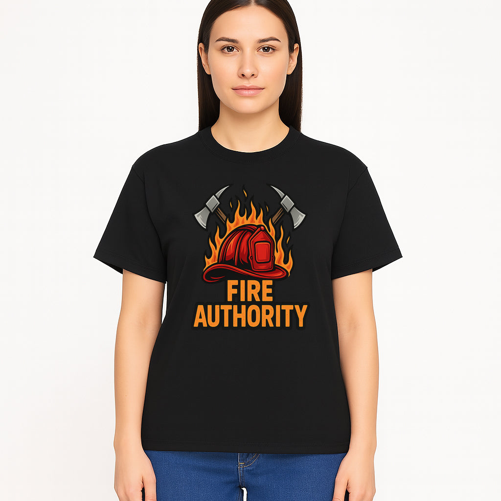 Firefighter Helmet and Axes Graphic Tee - Fire Authority, Flames Design, Firefighter Gift, Emergency Services Apparel - T-shirt