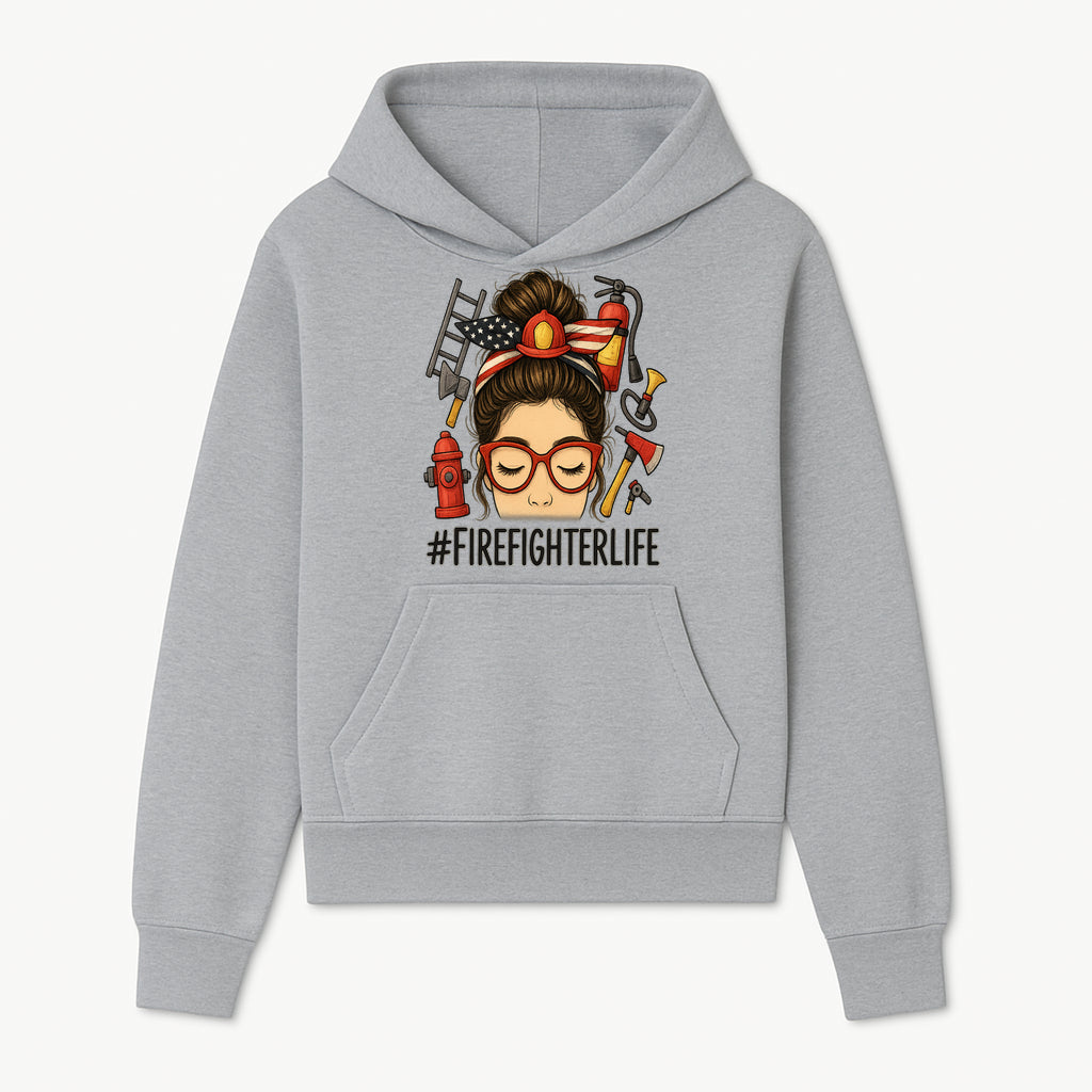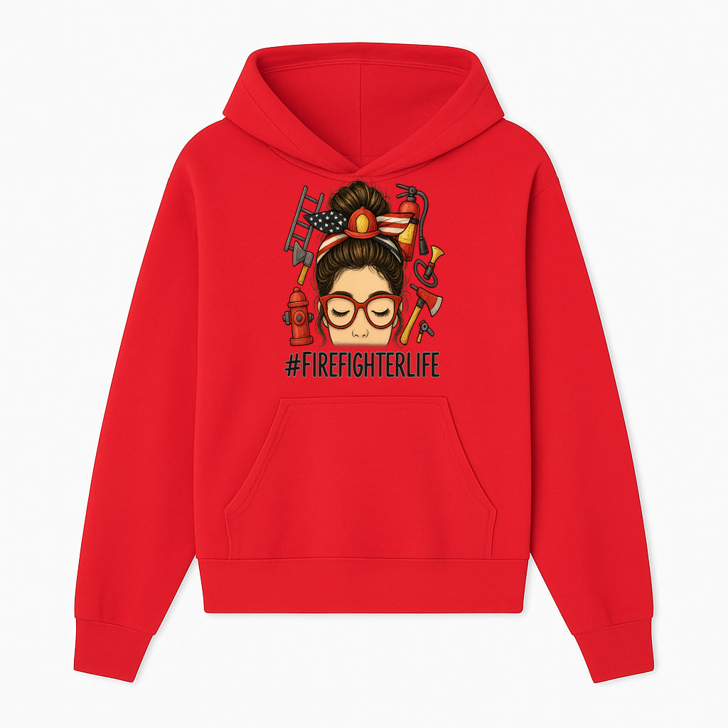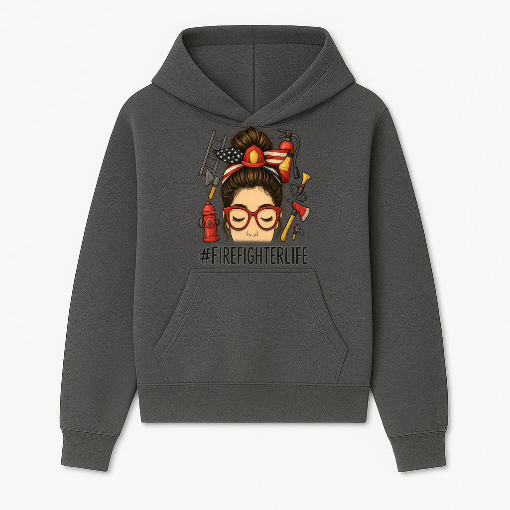Firefighter Life Graphic Tee - Girl with Firefighter Gear and Accessories - Inspirational Gift for Firefighters - Unique Firefighting Apparel - Hoodie