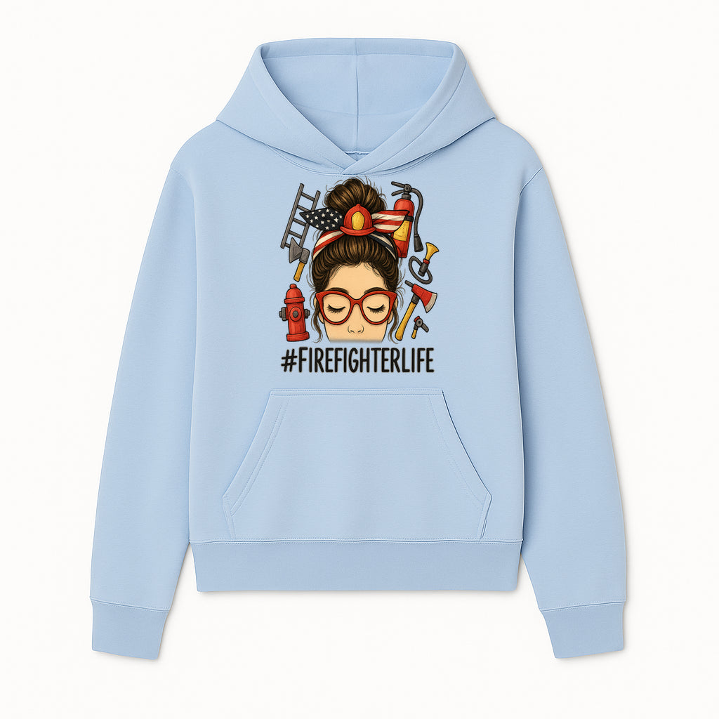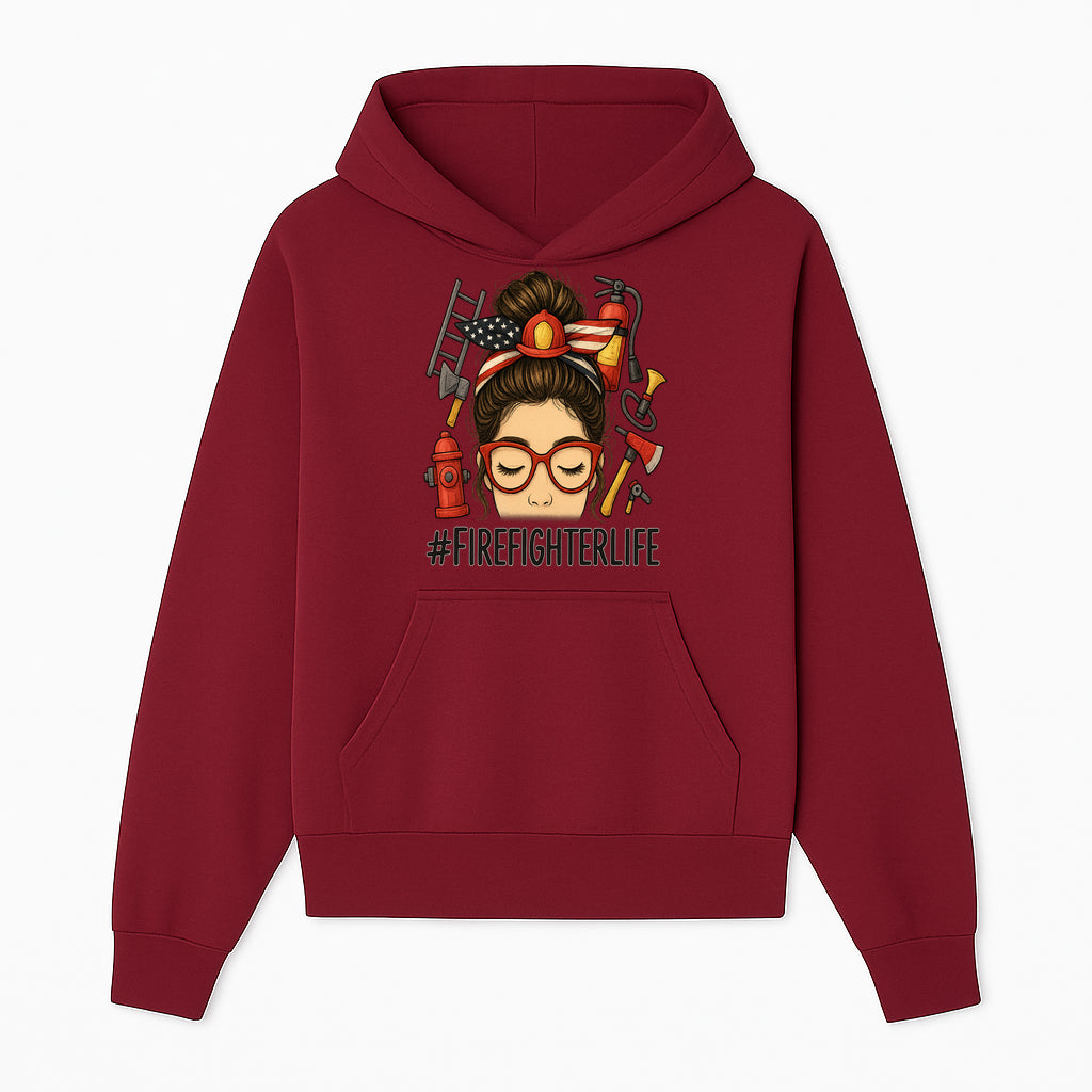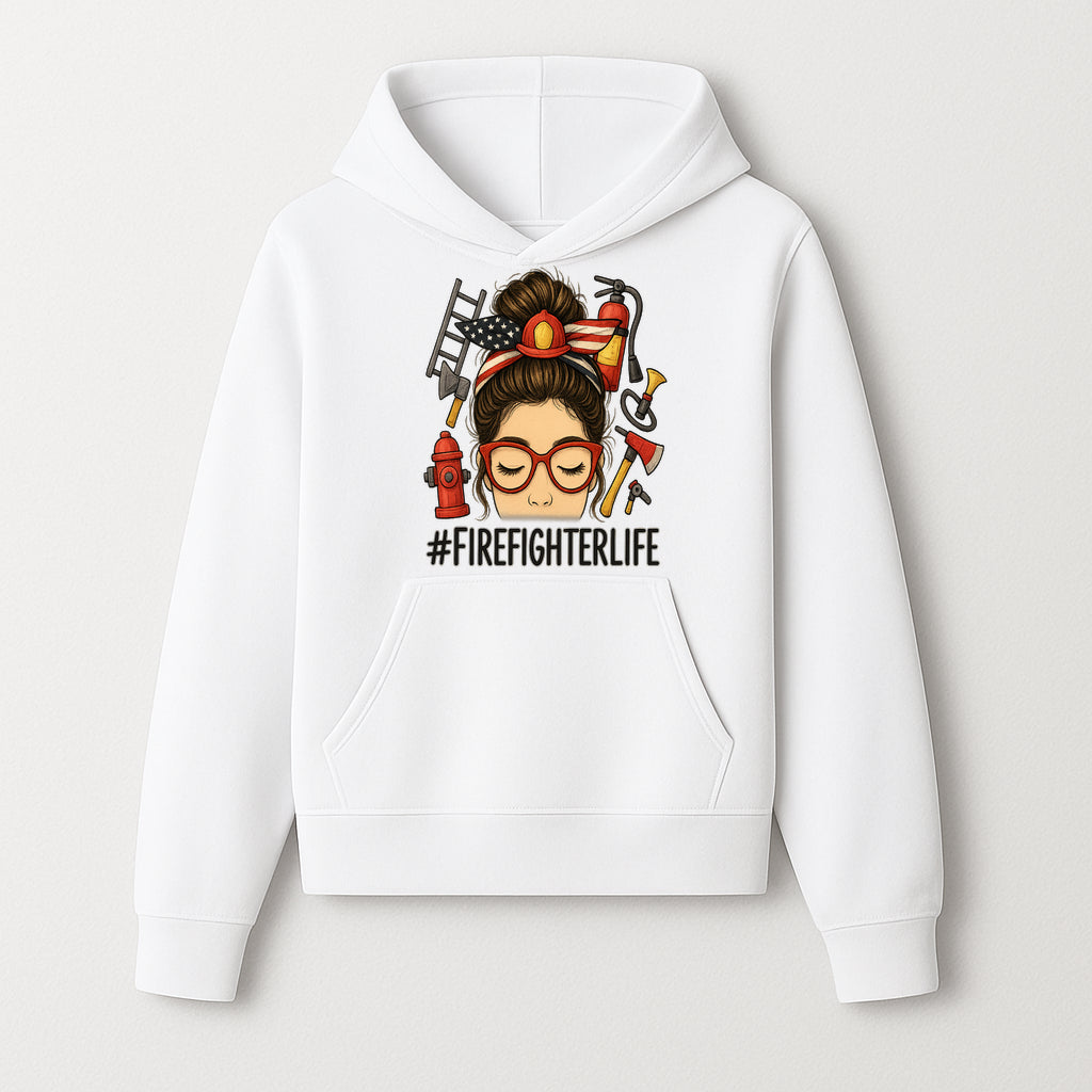 Firefighter Life Graphic Tee - Girl with Firefighter Gear and Accessories - Inspirational Gift for Firefighters - Unique Firefighting Apparel - Hoodie