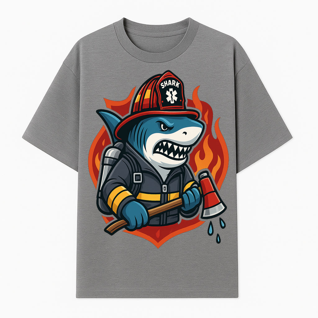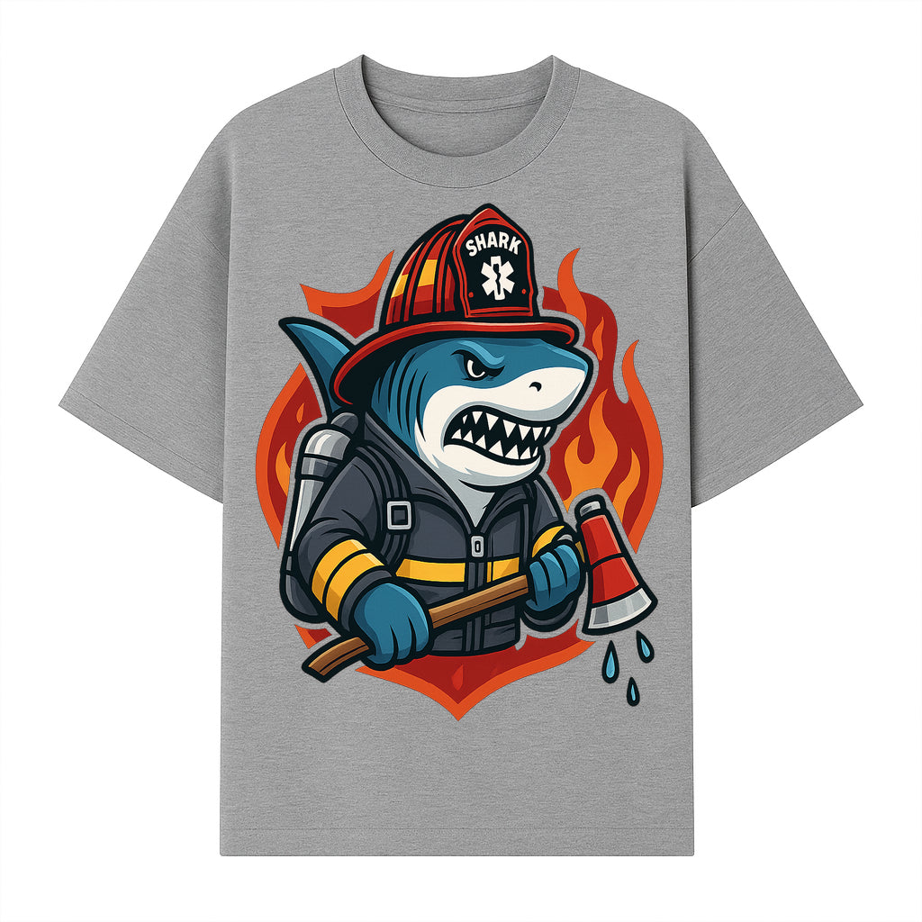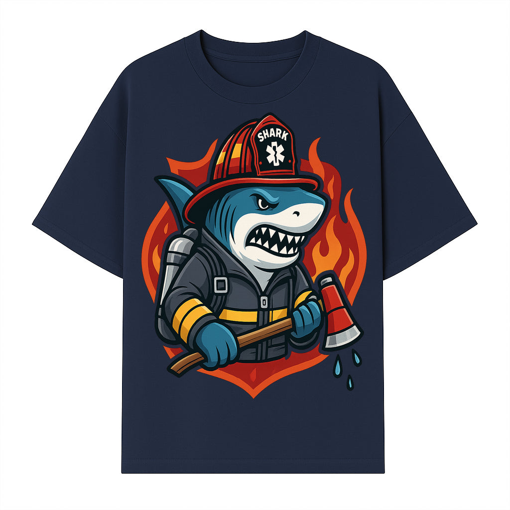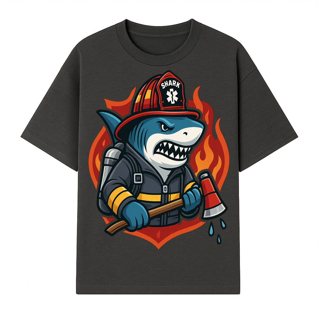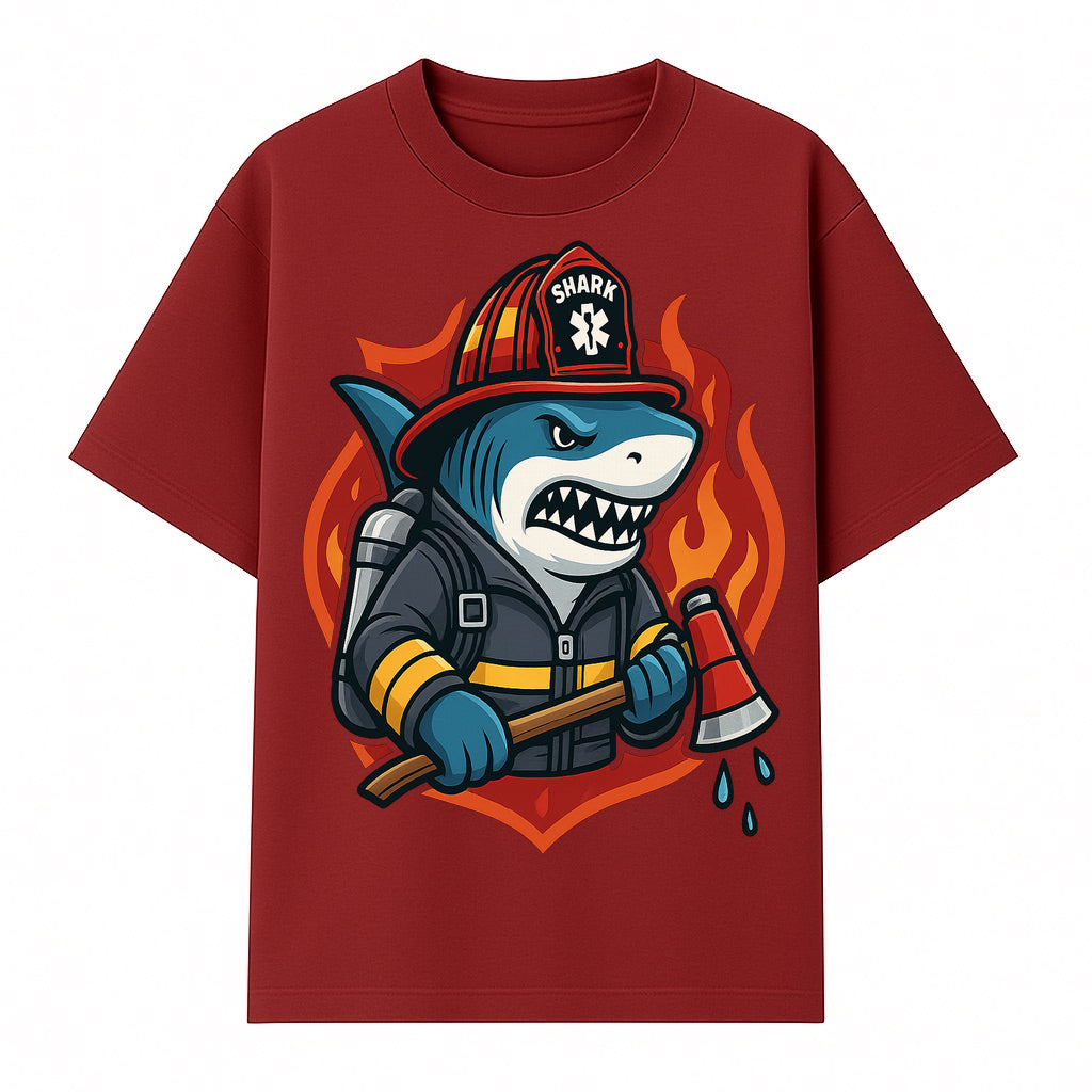 Firefighter Shark Graphic Tee - Cool Shark Fireman Design for Kids & Adults - Fun Firefighter Humor Shirt for Animal Lovers - T-shirt