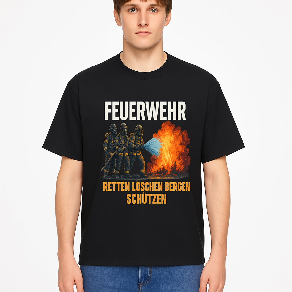 Firefighter Theme Wall Art - Retten, L schen, Bergen, Sch tzen Print for Firehouse Decor, Firefighter Gift, Rescue Heroes Artwork - T-shirt