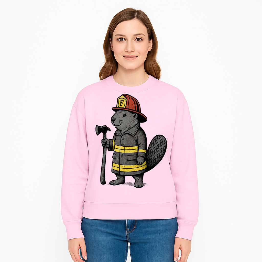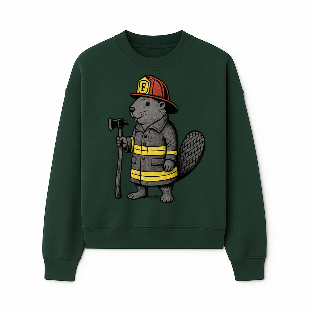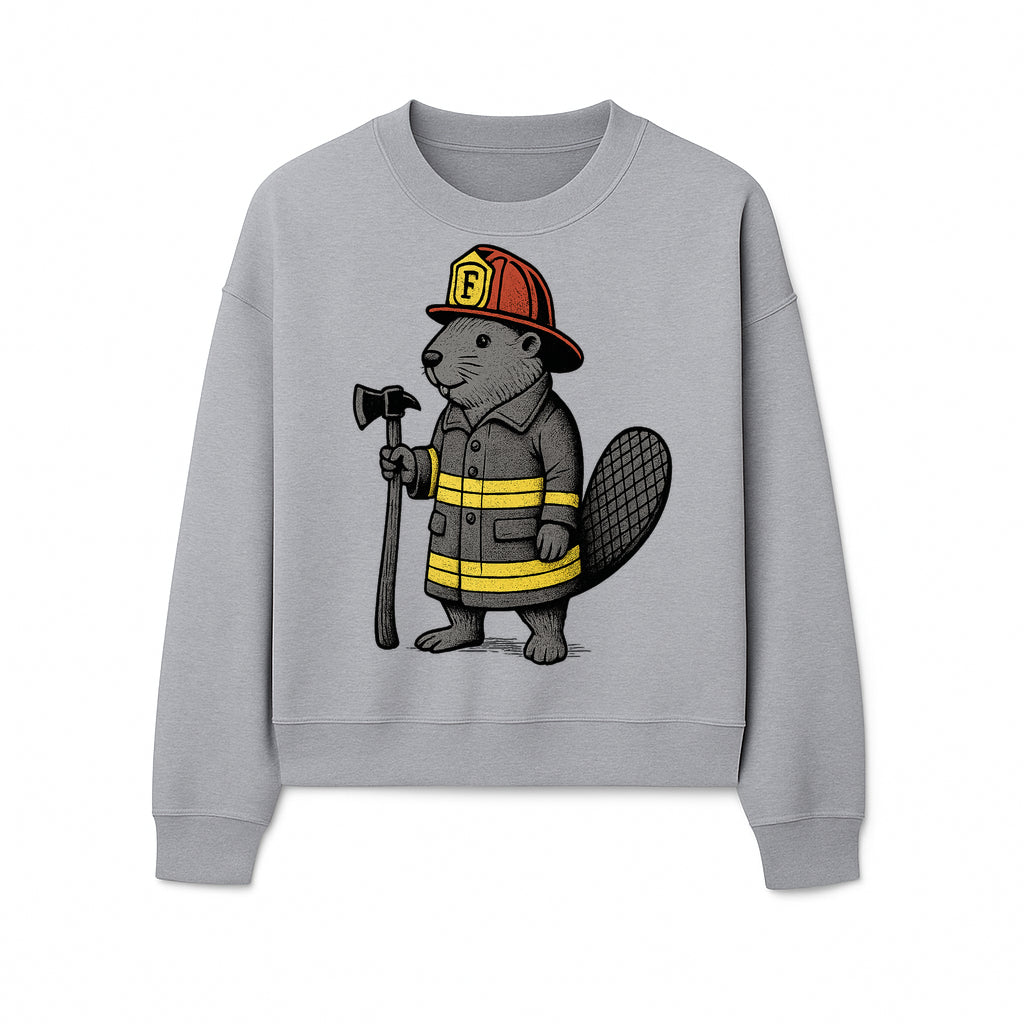 Funny Beaver Firefighter Graphic Tee | Cute Animal Fireman T-Shirt | Kids & Adults | Perfect Gift for Firefighters & Animal Lovers - Sweatshirt