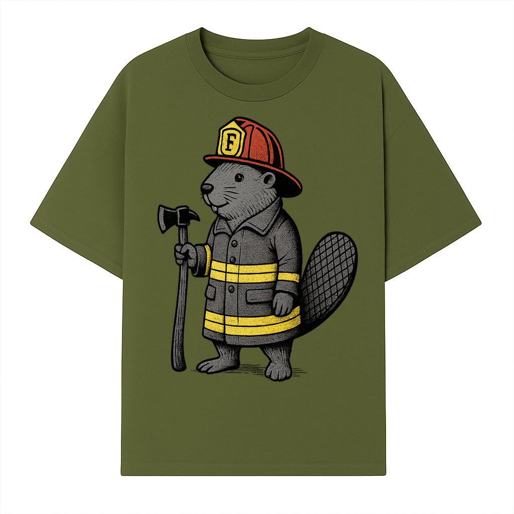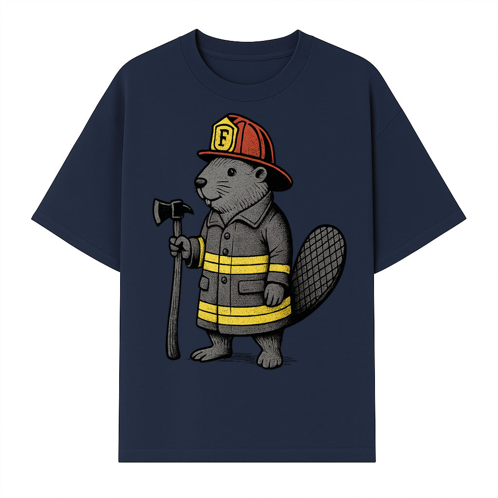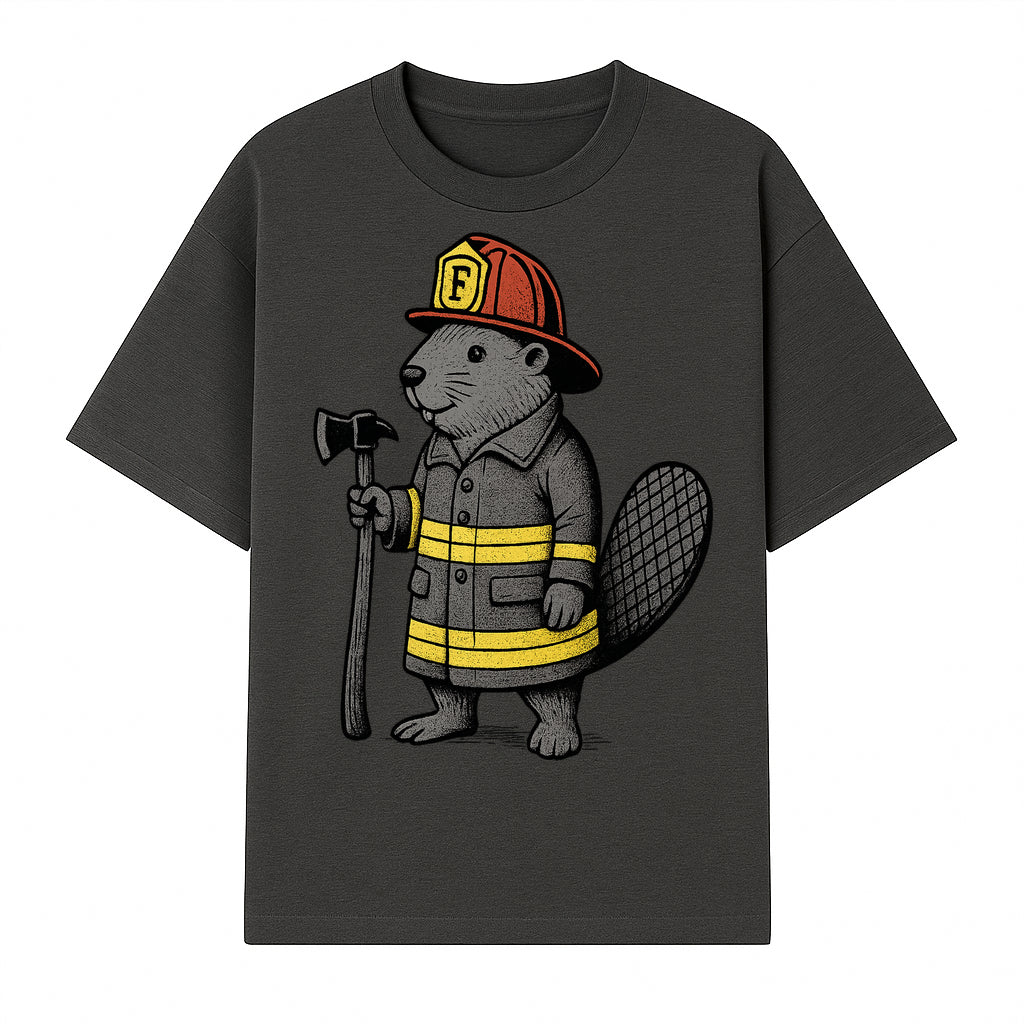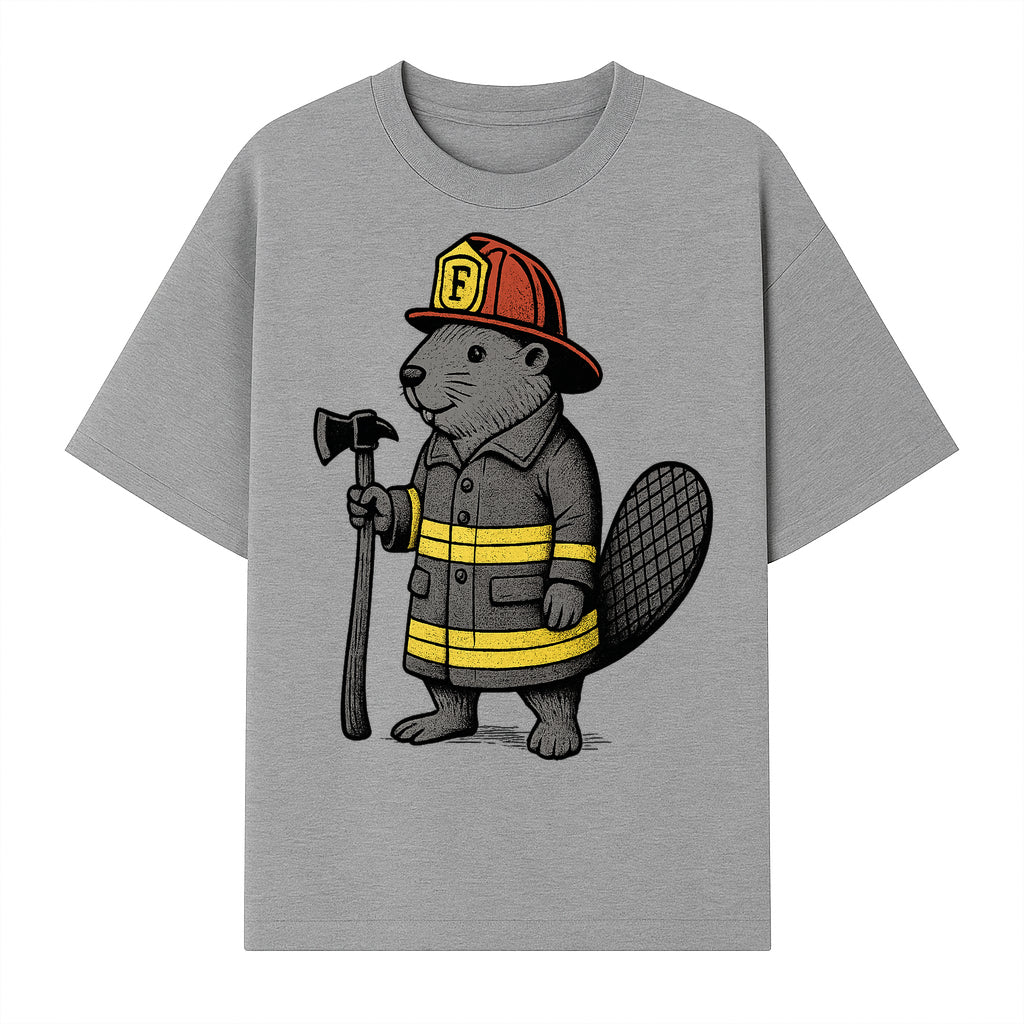 Funny Beaver Firefighter Graphic Tee | Cute Animal Fireman T-Shirt | Kids & Adults | Perfect Gift for Firefighters & Animal Lovers - T-shirt