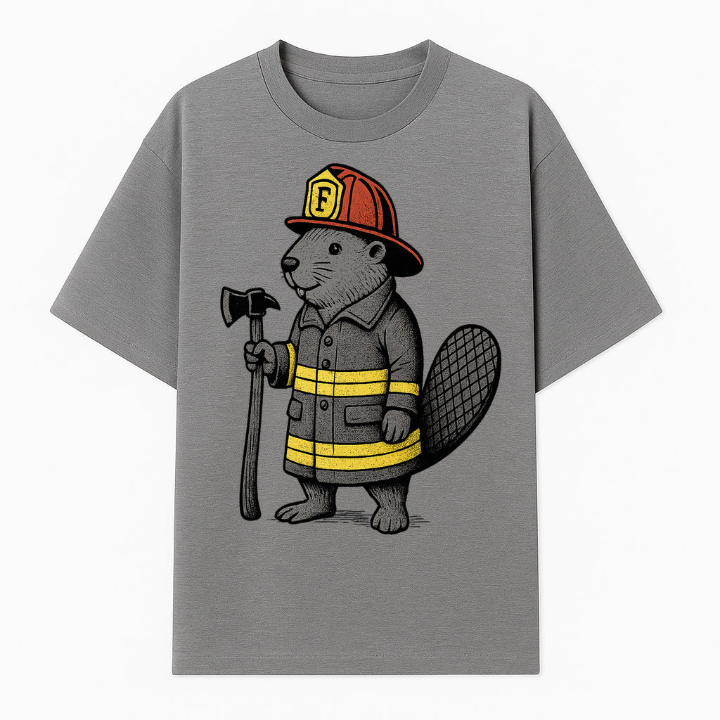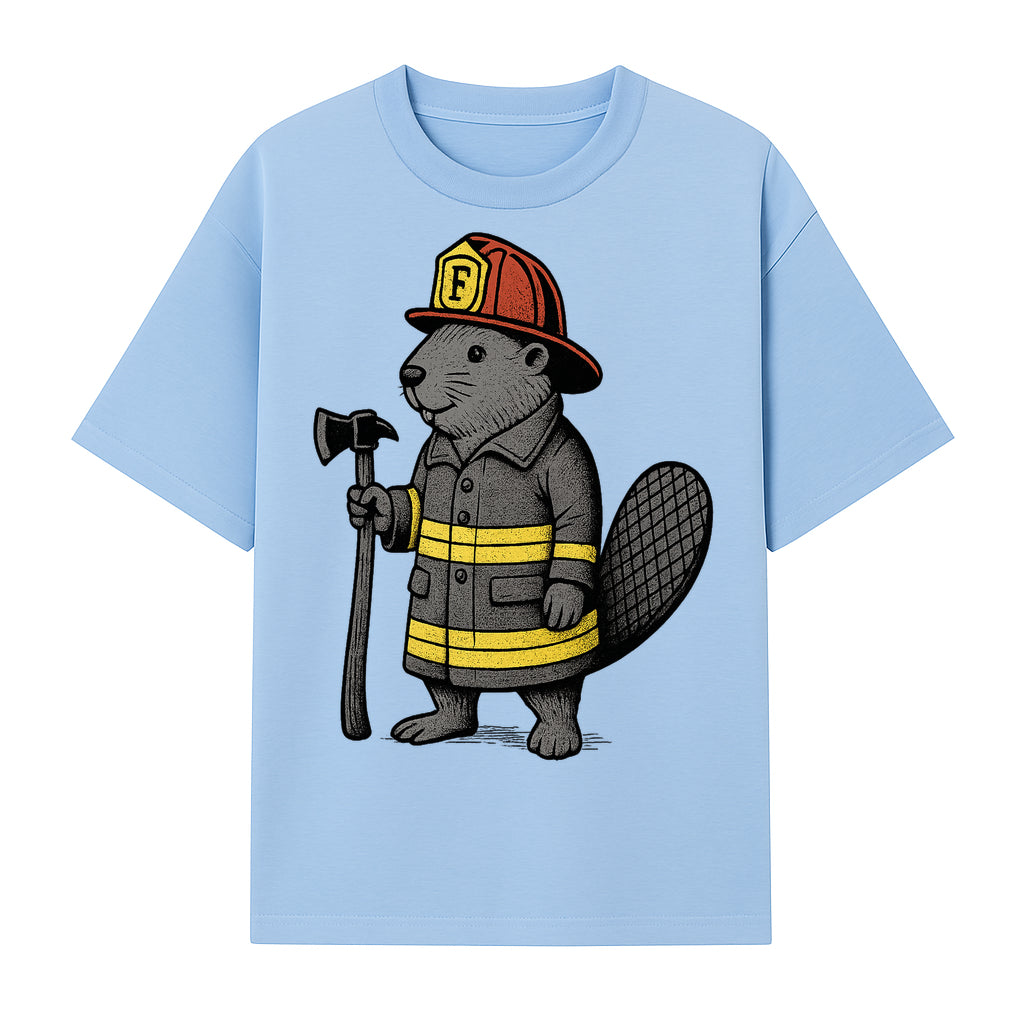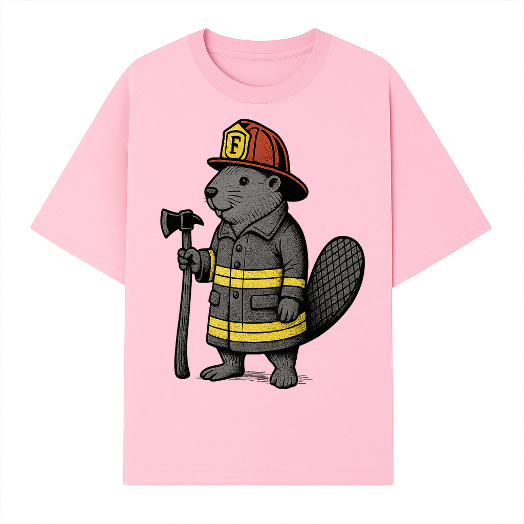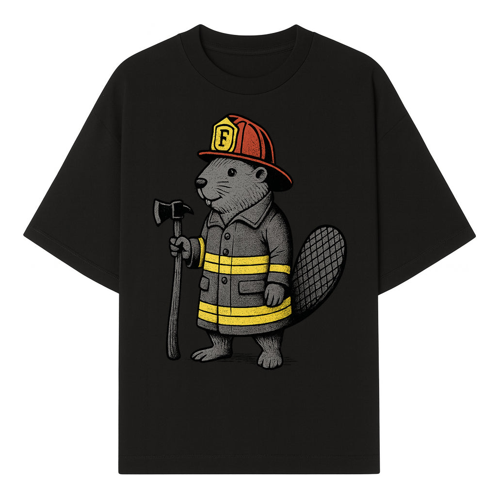 Funny Beaver Firefighter Graphic Tee | Cute Animal Fireman T-Shirt | Kids & Adults | Perfect Gift for Firefighters & Animal Lovers - T-shirt