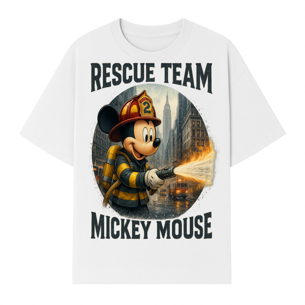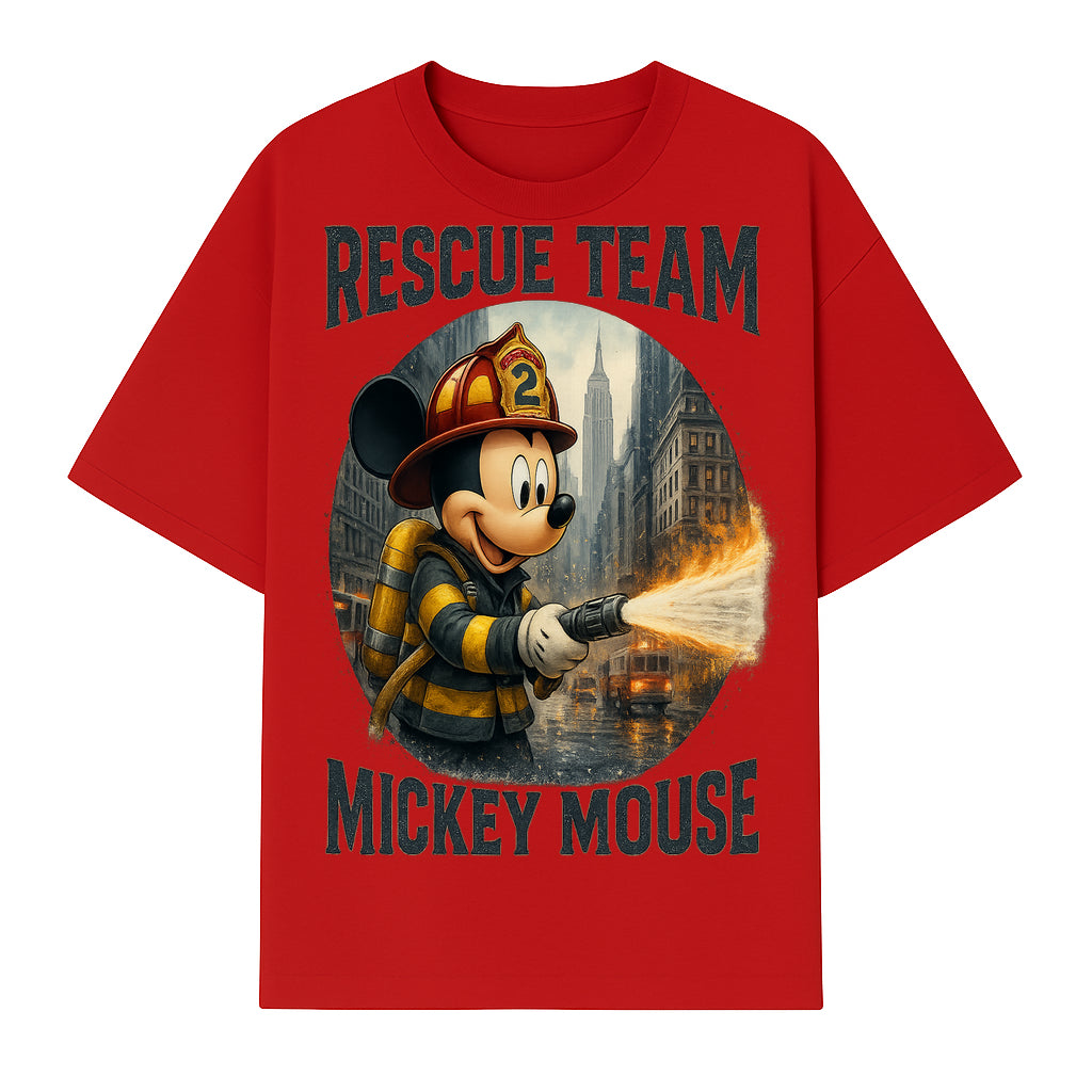 Mickey Mouse Rescue Team Firefighter Graphic Tee, Kids Fireman Shirt, Cartoon Firefighter Costume, Gift for Disney Fans - T-shirt
