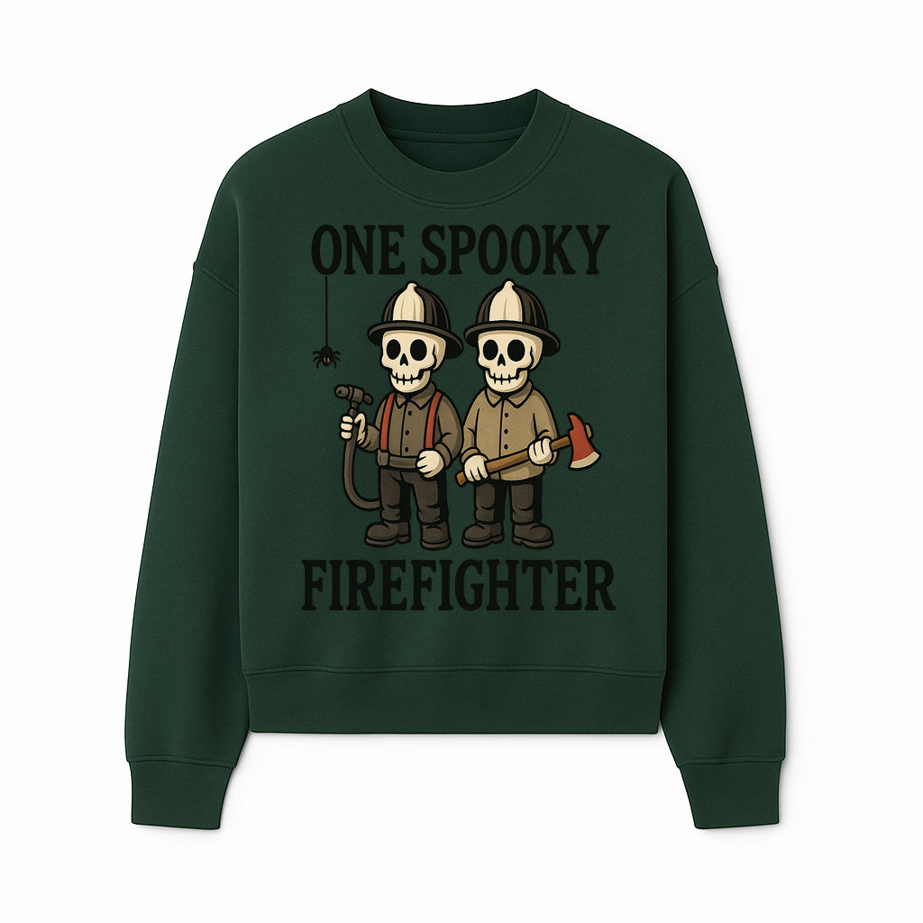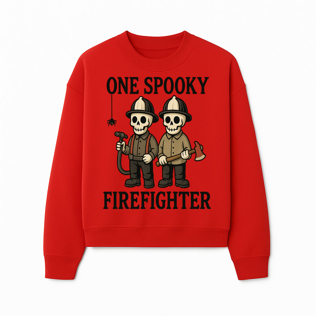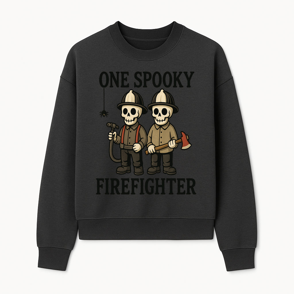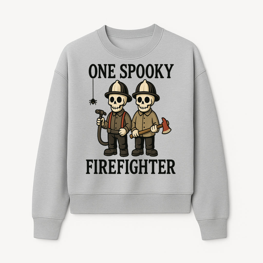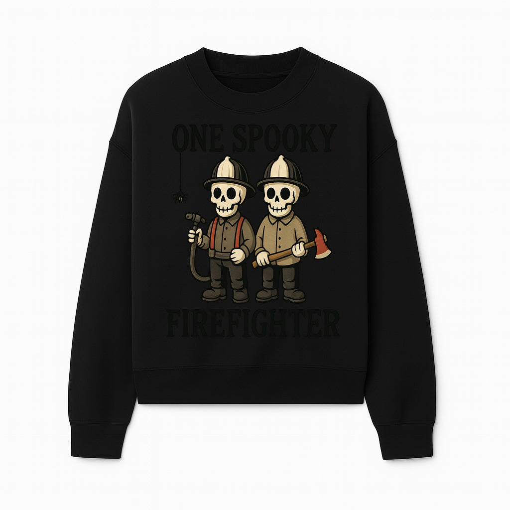 One Spooky Firefighter Skeletons Halloween Decor T-Shirt, Cute Fireman Skull Graphic Tee for Halloween Party or Gift - Sweatshirt
