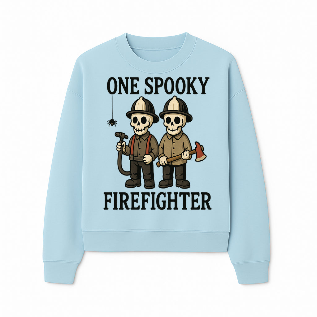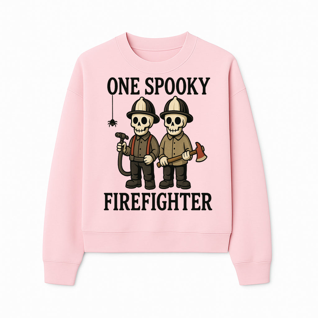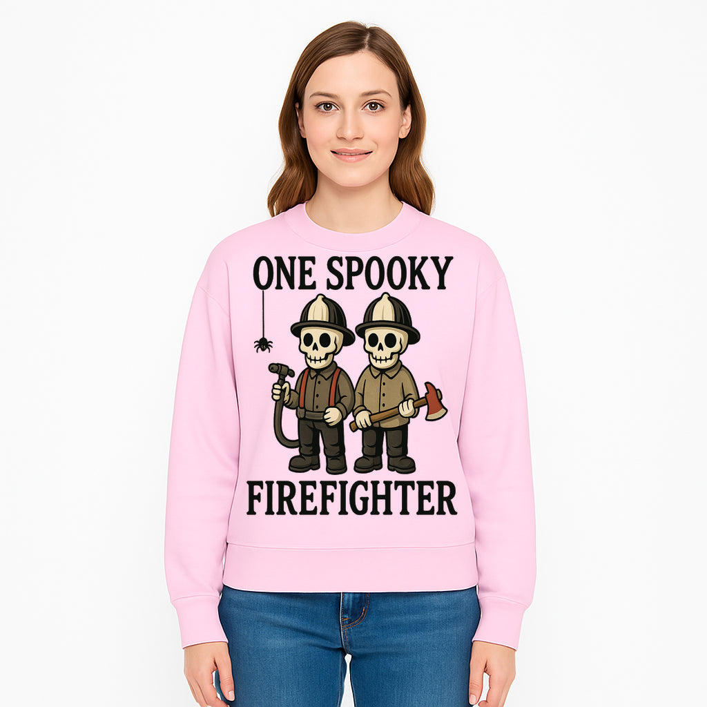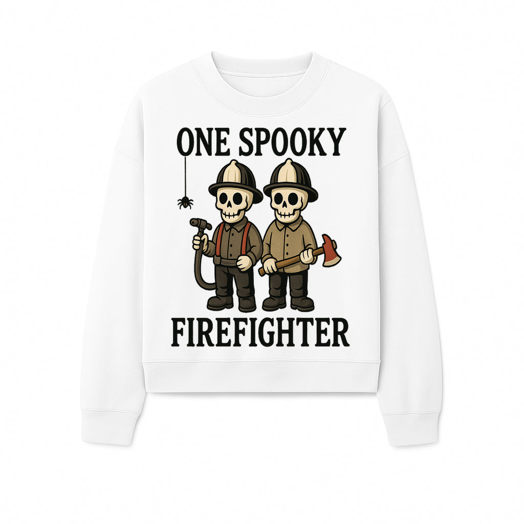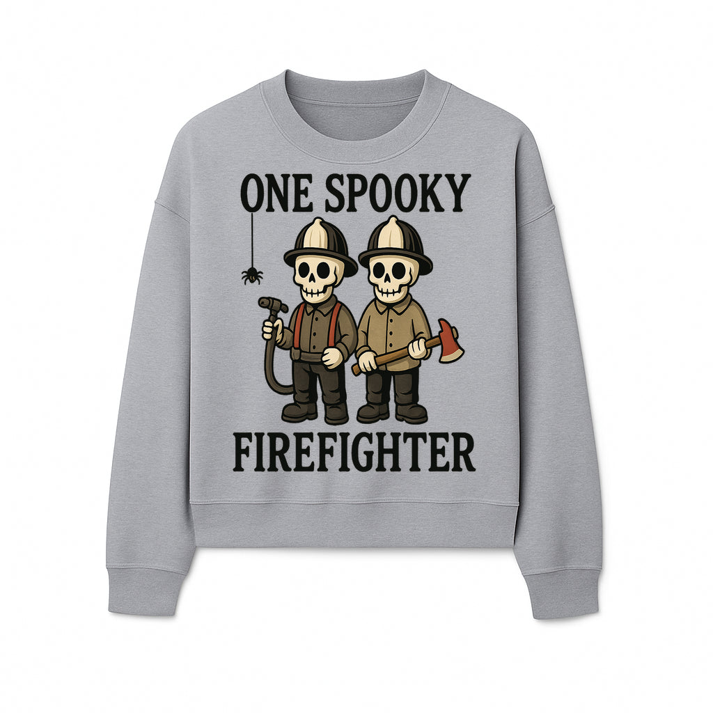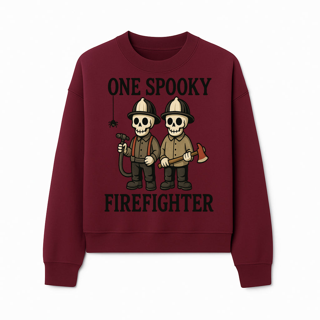 One Spooky Firefighter Skeletons Halloween Decor T-Shirt, Cute Fireman Skull Graphic Tee for Halloween Party or Gift - Sweatshirt